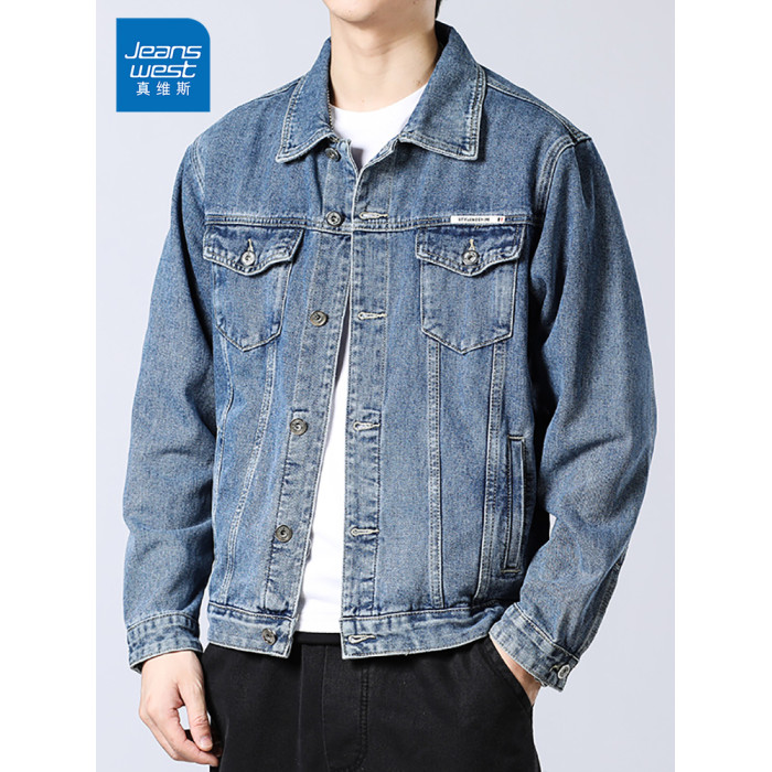 NG真維斯美式復古牛仔外套男士秋季款潮牌寬鬆青少年高街外搭夾克