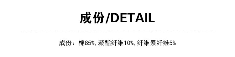 | 材質成分 | 棉85% 聚酯纖維10% 再生纖維素纖維5% |