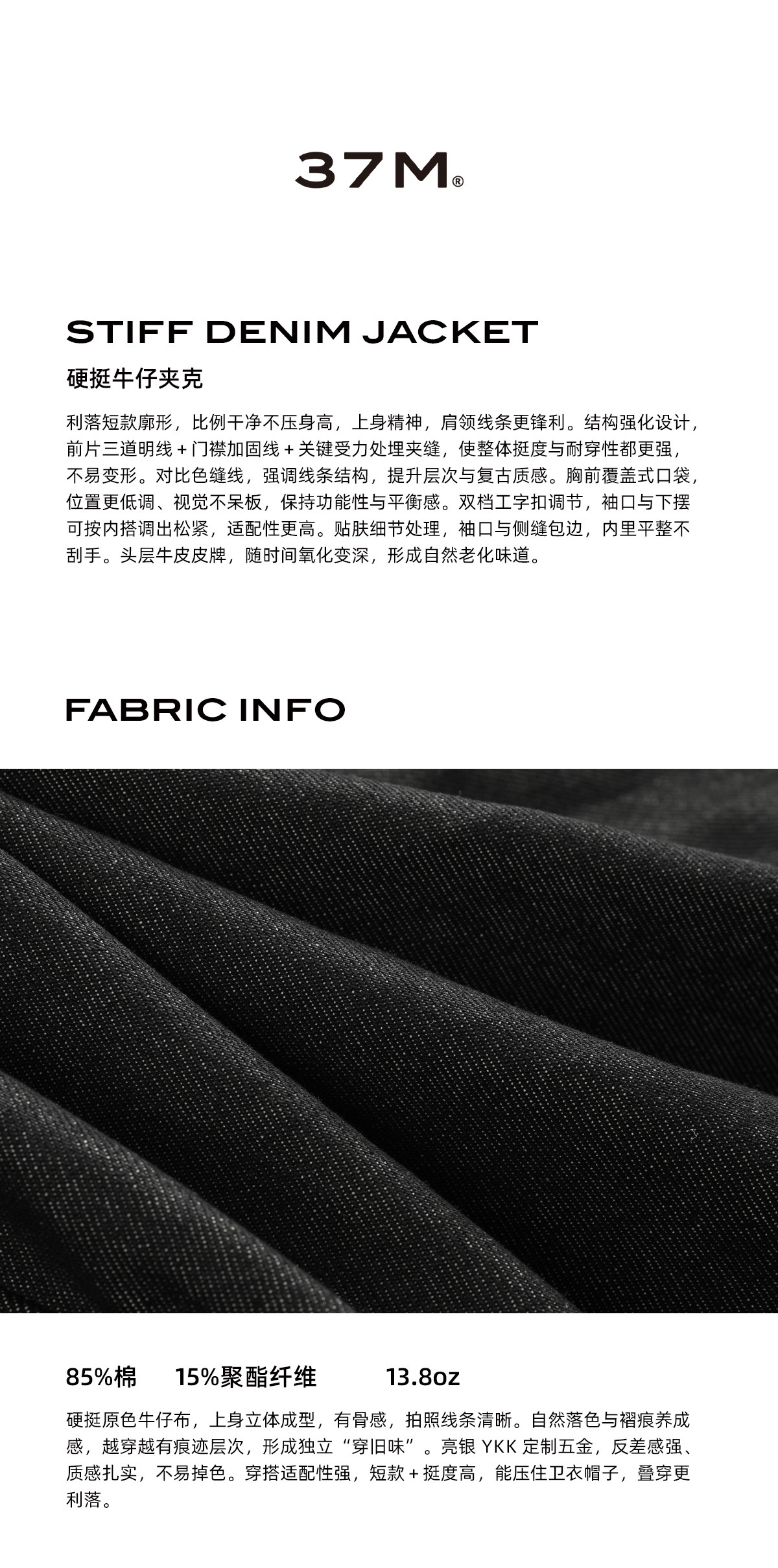 37M|RAW DENIM 毛羽紋原牛夾克短款原色牛仔硬朗修身顯比例外套