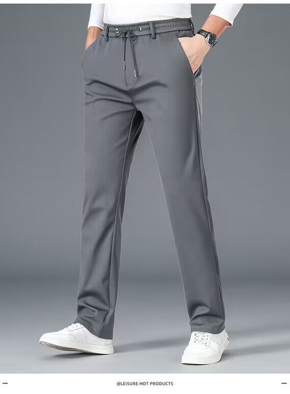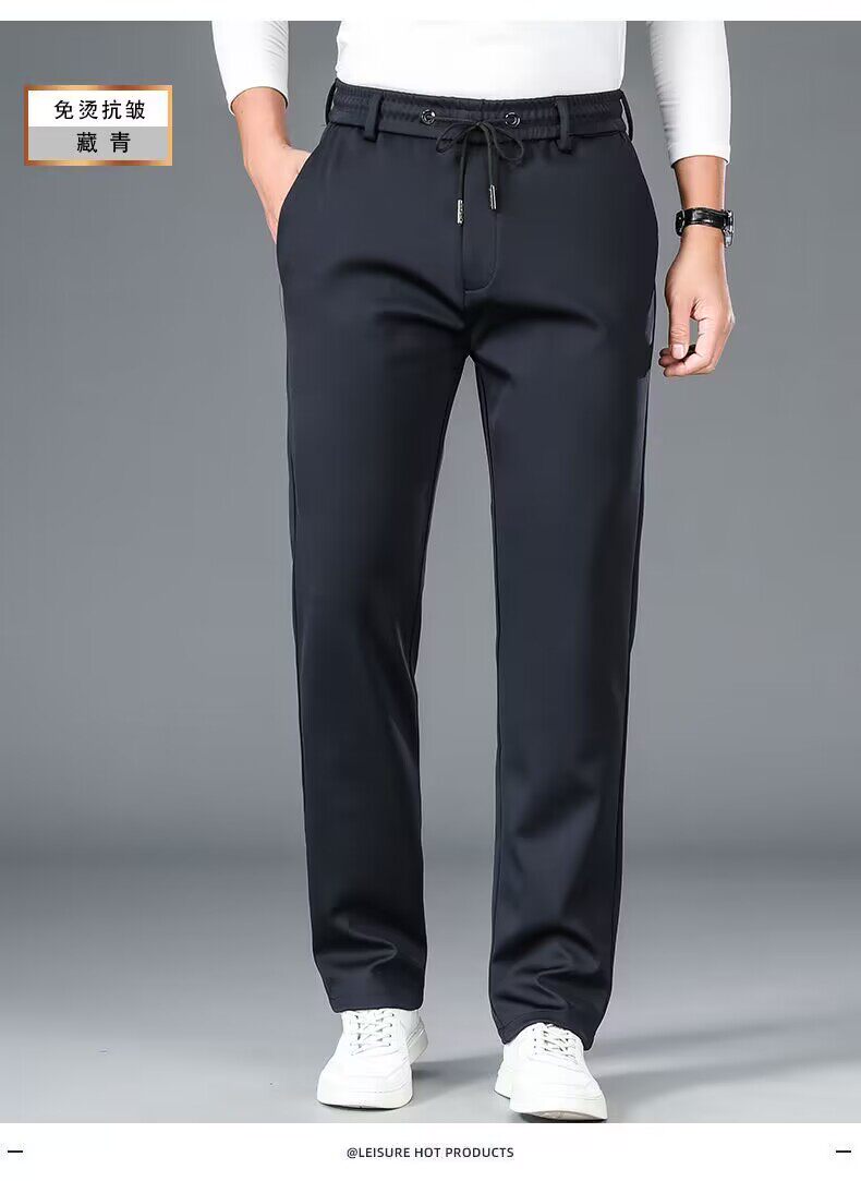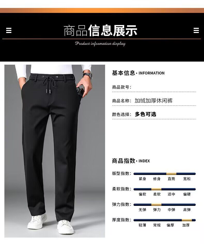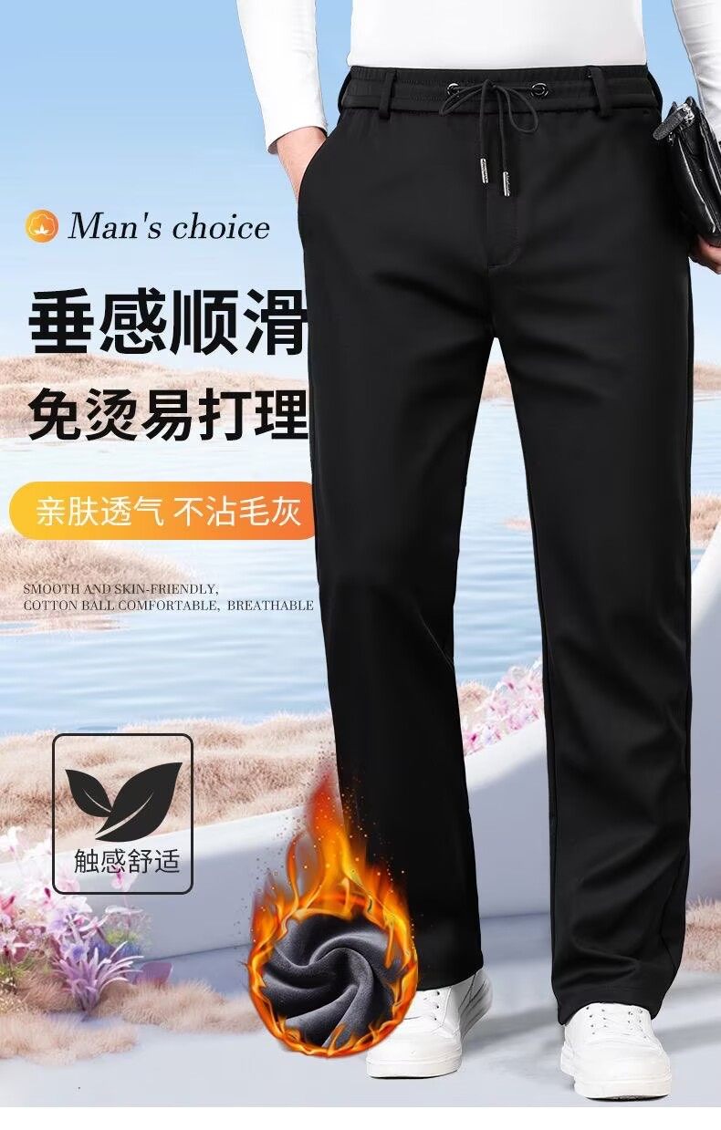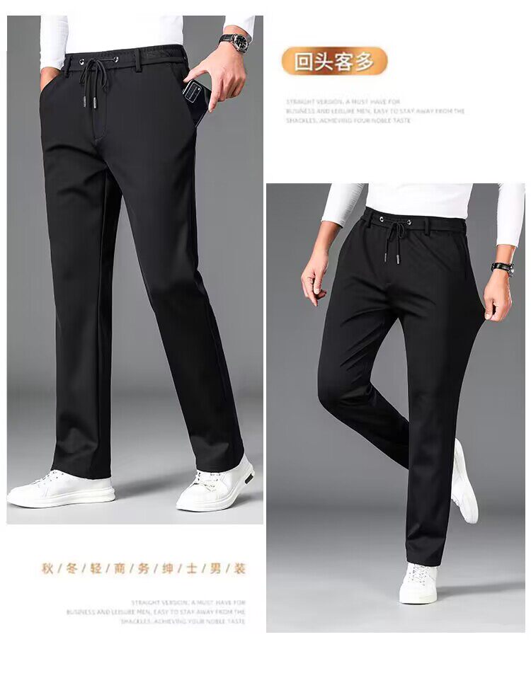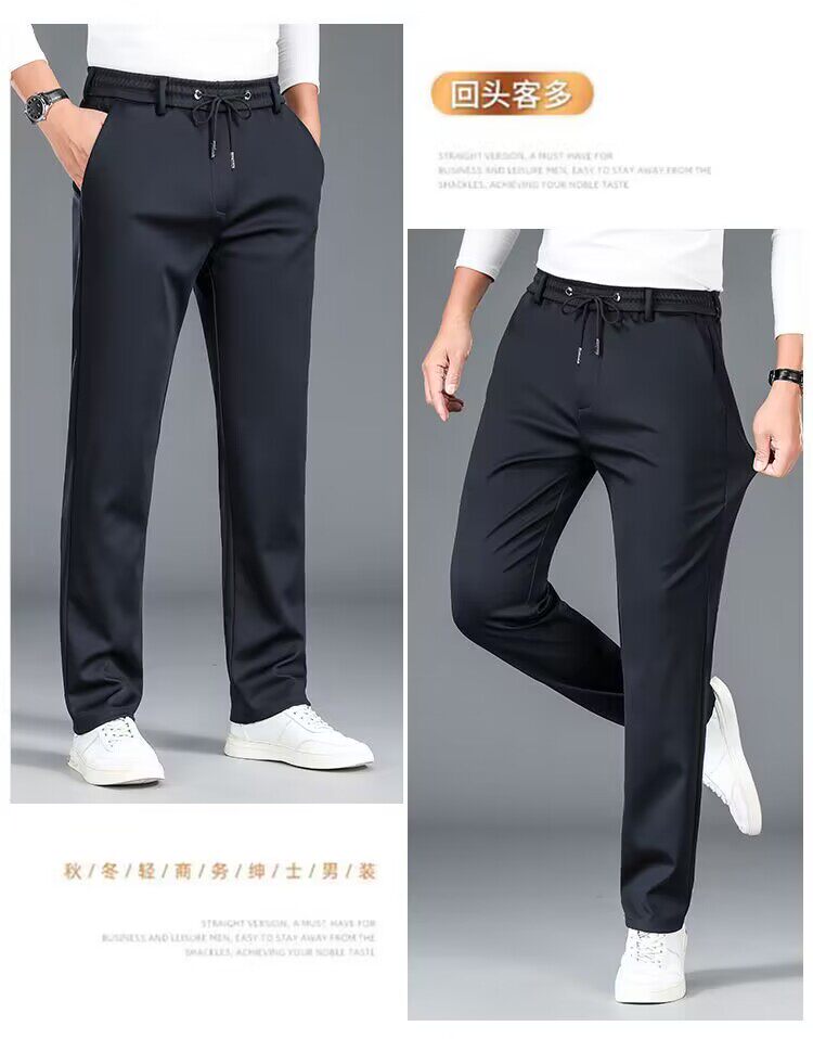 啄木鳥秋冬厚款男士休閒褲子新款彈力抗皺免燙松緊腰寬鬆加絨衛褲