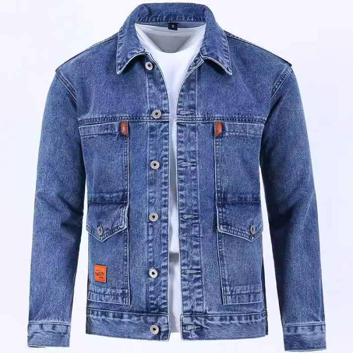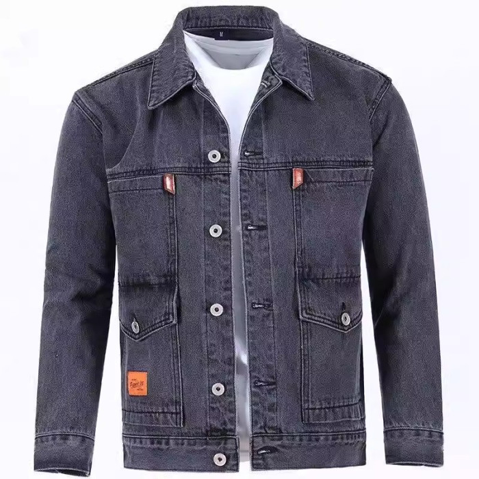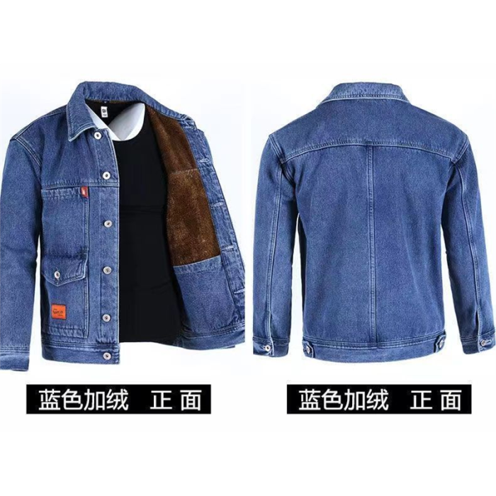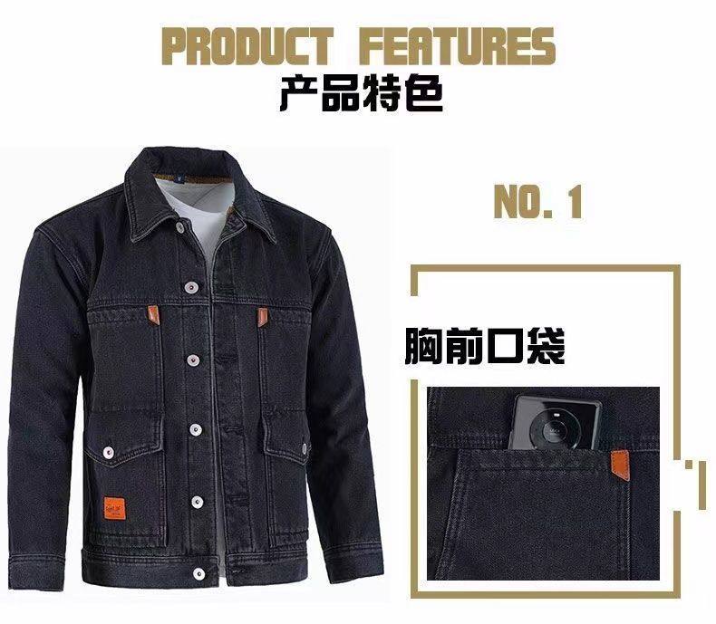 牛仔外套男工地乾活電銲工作服上衣防燙耐磨多口袋工裝美式外套