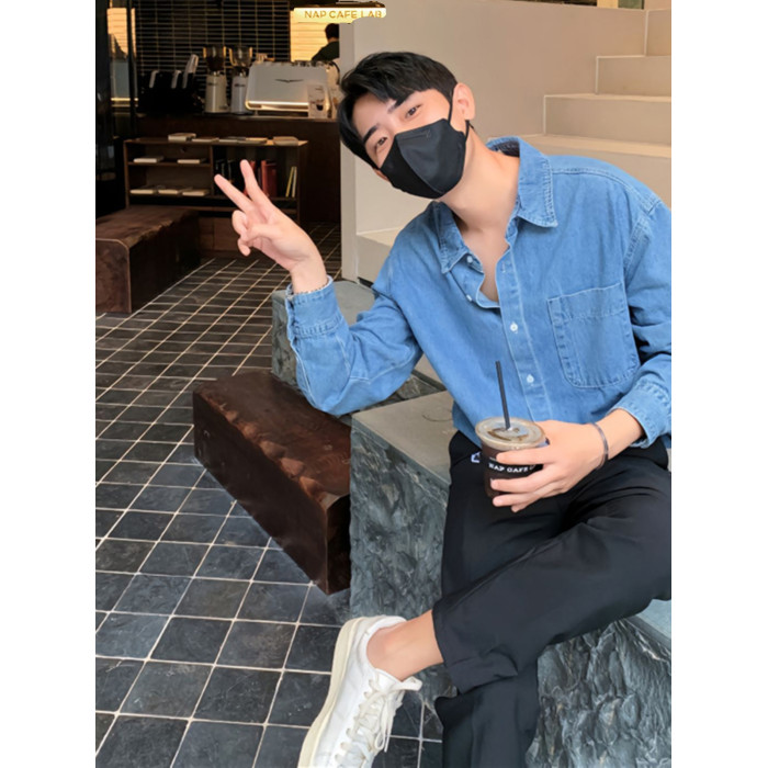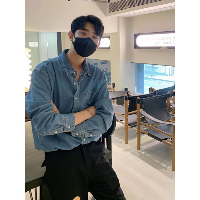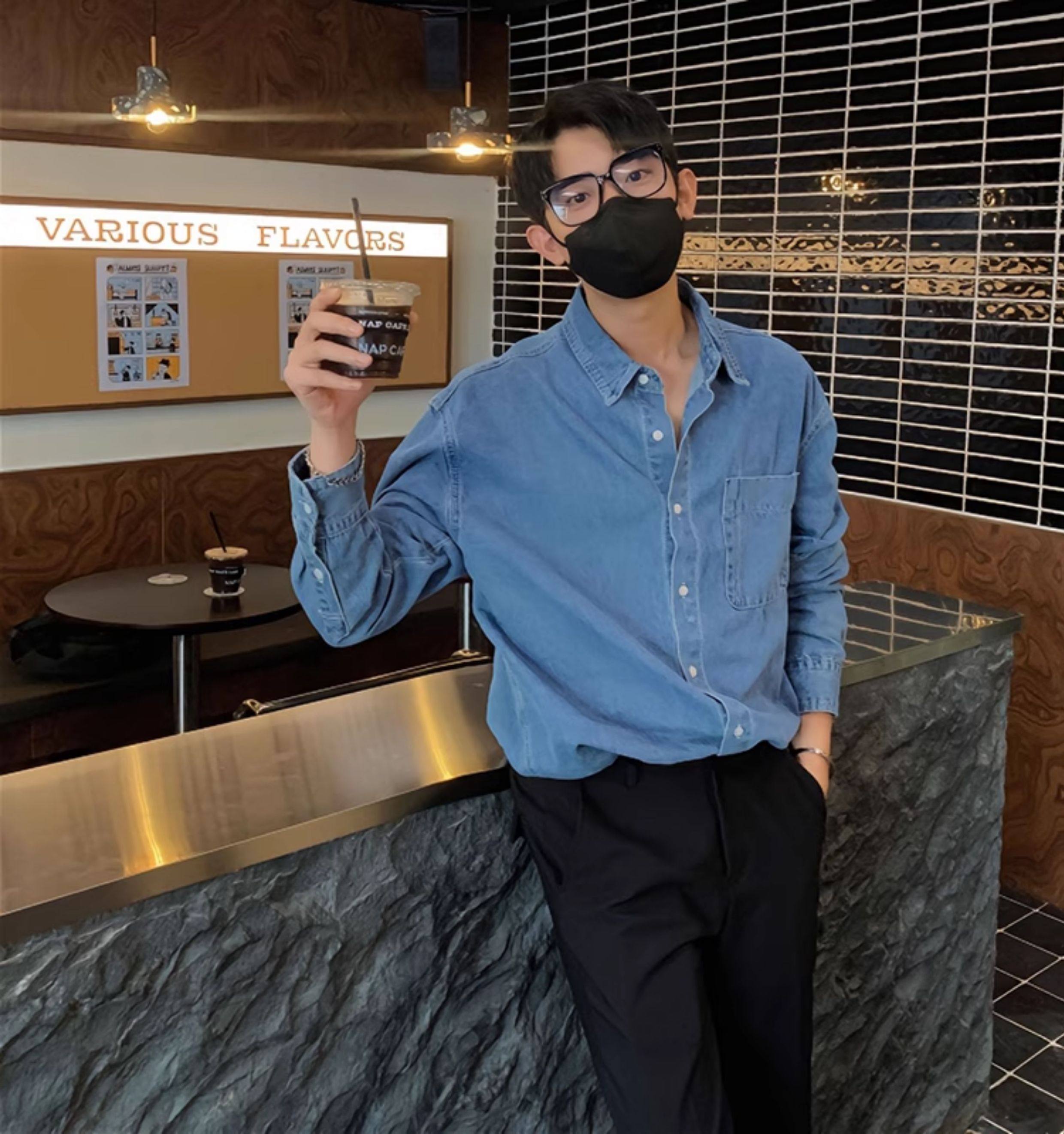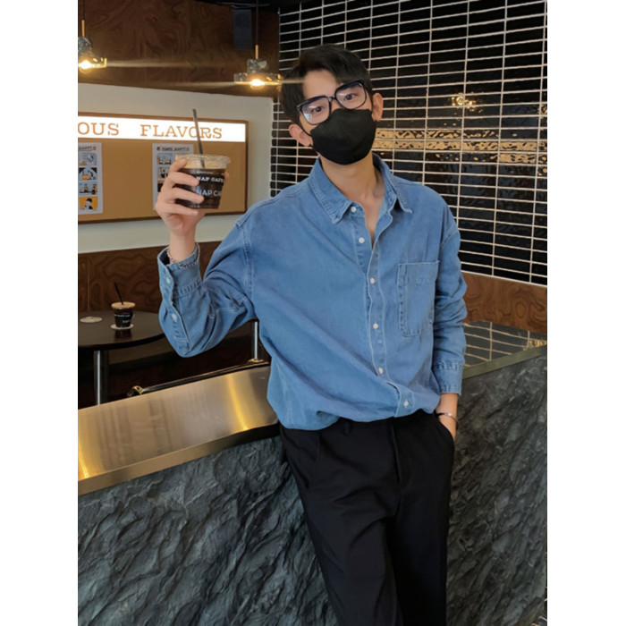 cleanfit牛仔襯衫男秋季潮牌cityboy長袖上衣少年感痞帥襯衣外套