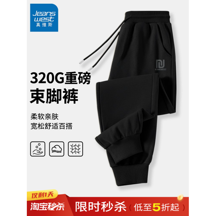 JR真維斯運動褲男款青少年休閒男褲2026新款束腳衛褲春秋男士褲子