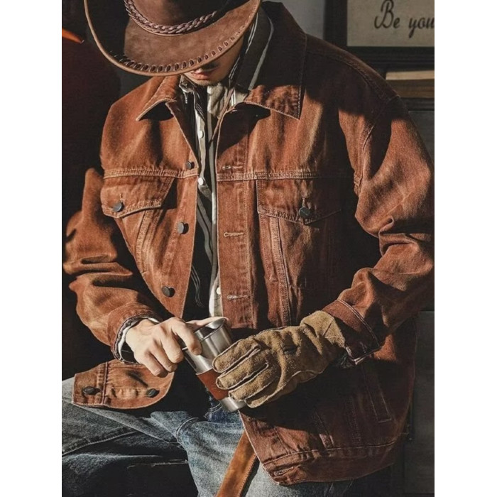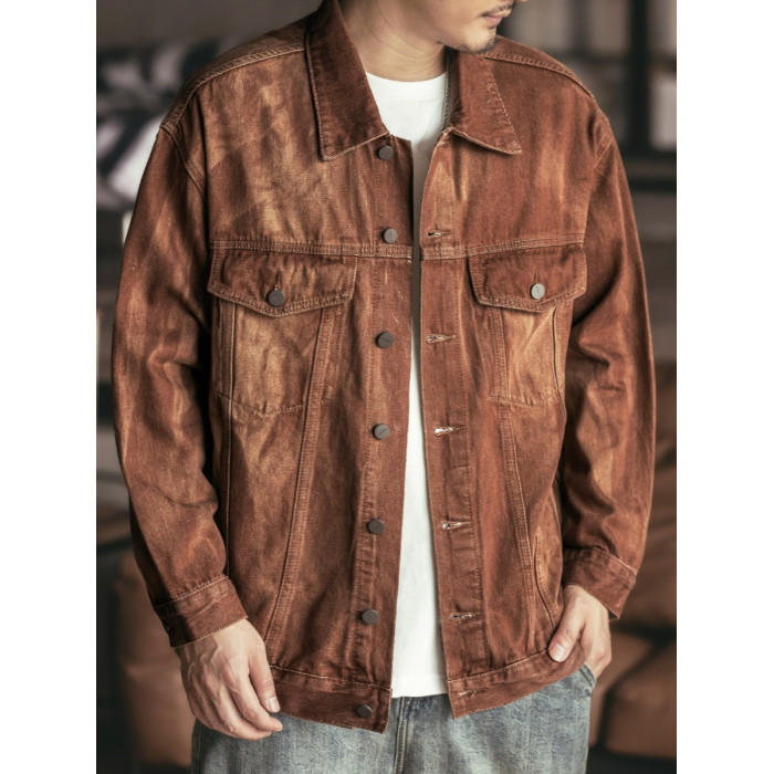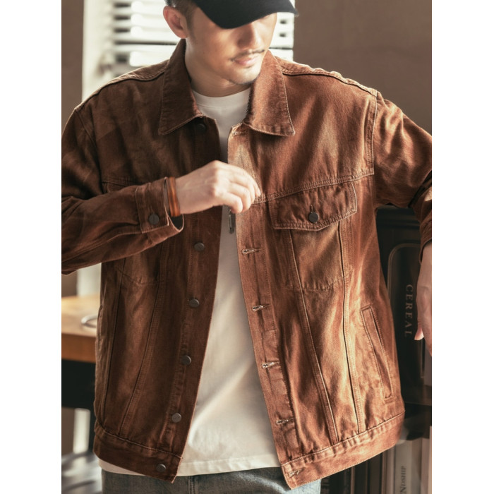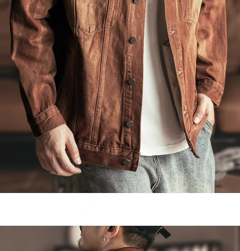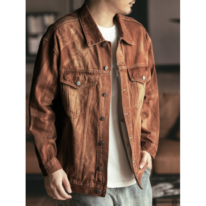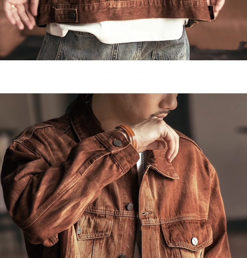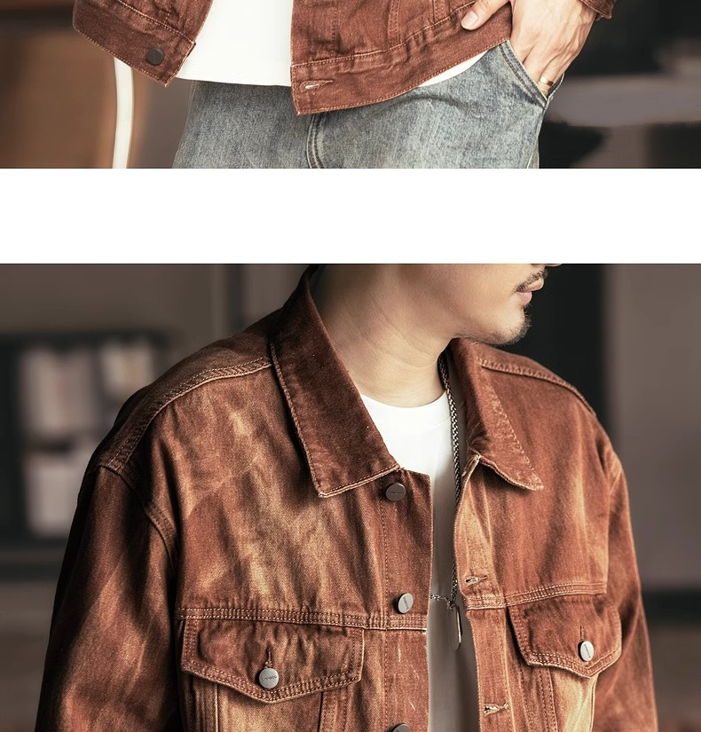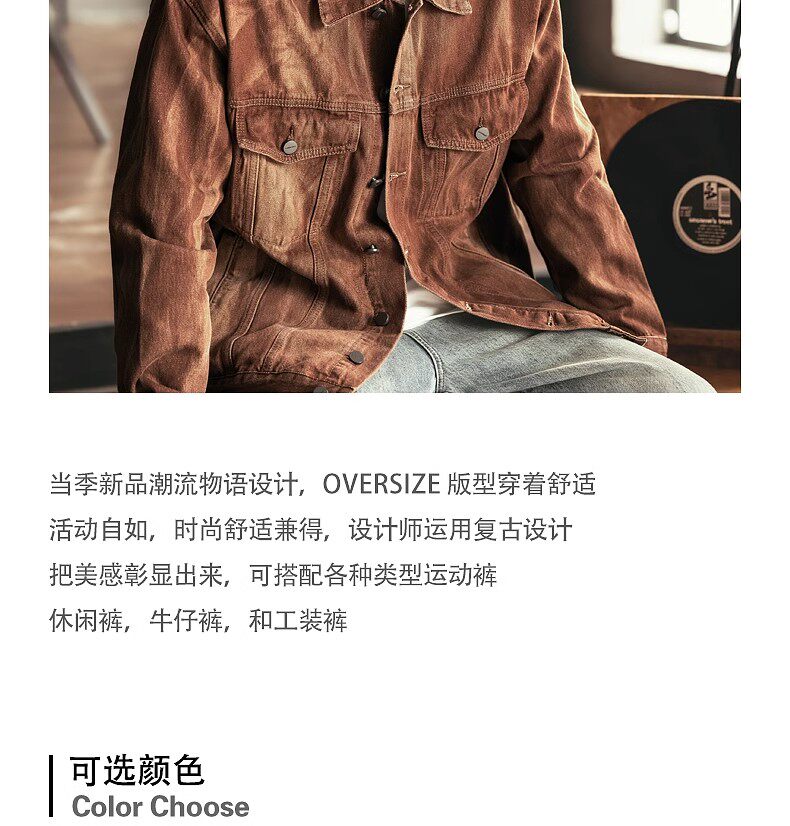 美式復古重磅工裝牛仔夾克男士春秋潮牌寬鬆大碼痞帥獵裝休閒外套