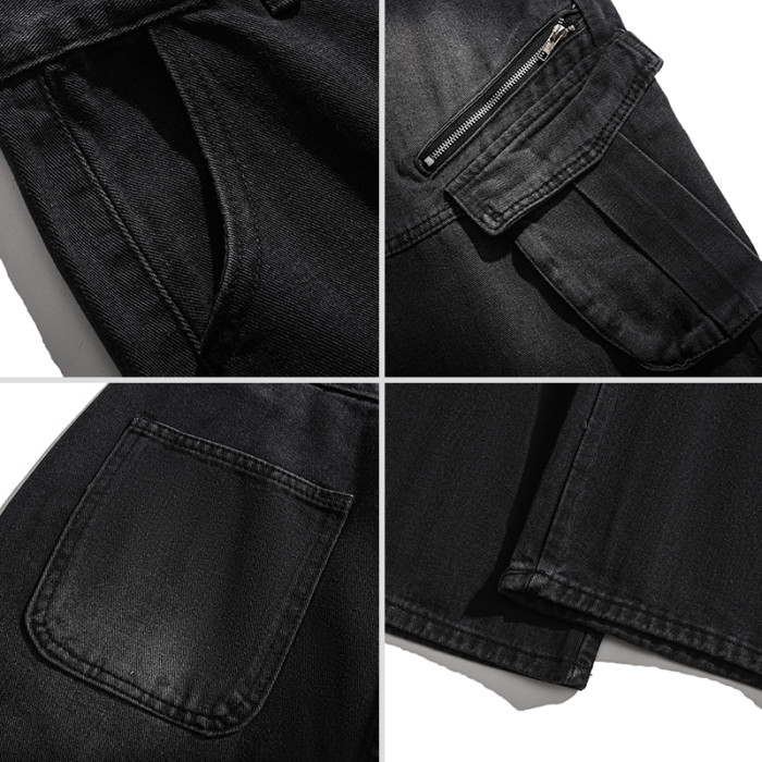 BMOB美式復古拉鍊多口袋工裝牛仔褲男潮牌寬鬆嘻哈拖地濶腿長褲子
