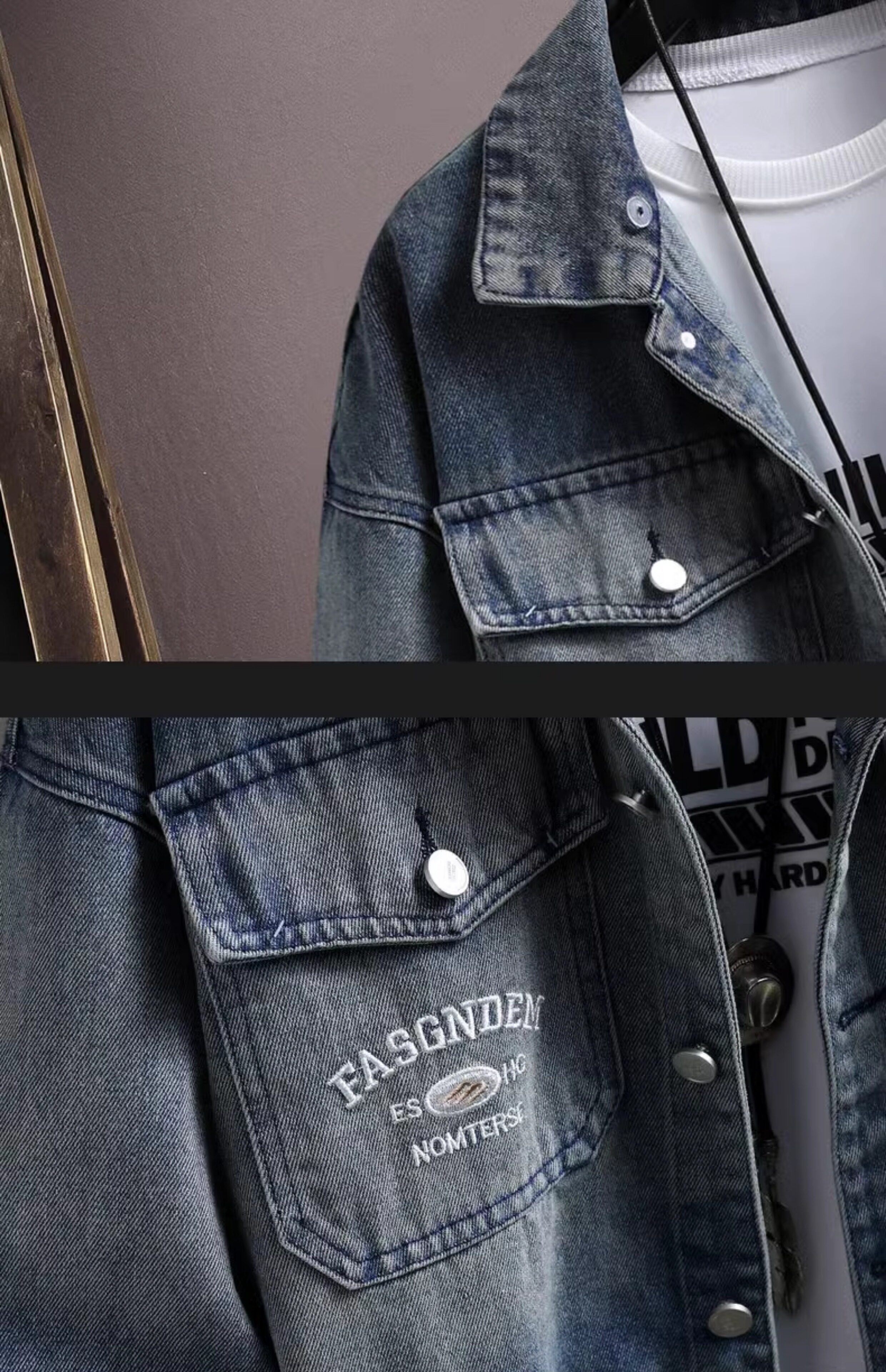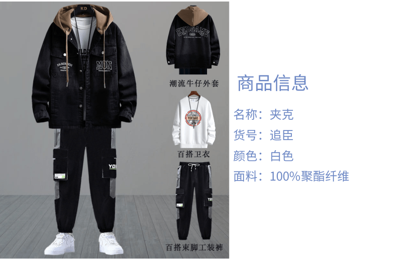 青少年春秋新款牛仔外套男士冬季加絨加厚初高中學生潮流帥氣套裝