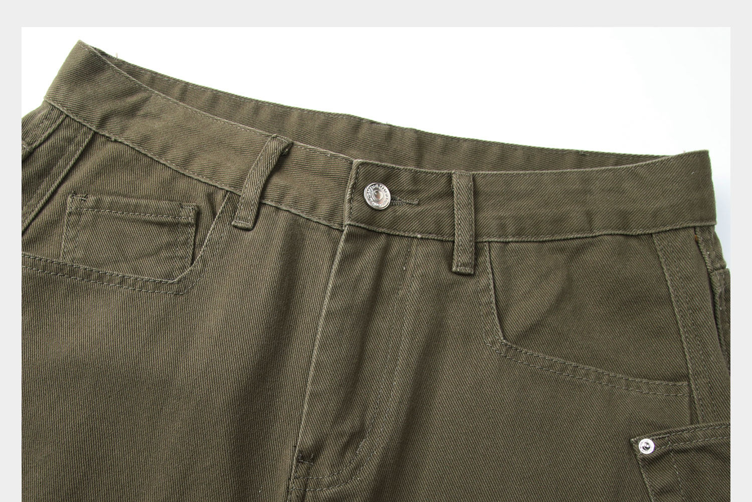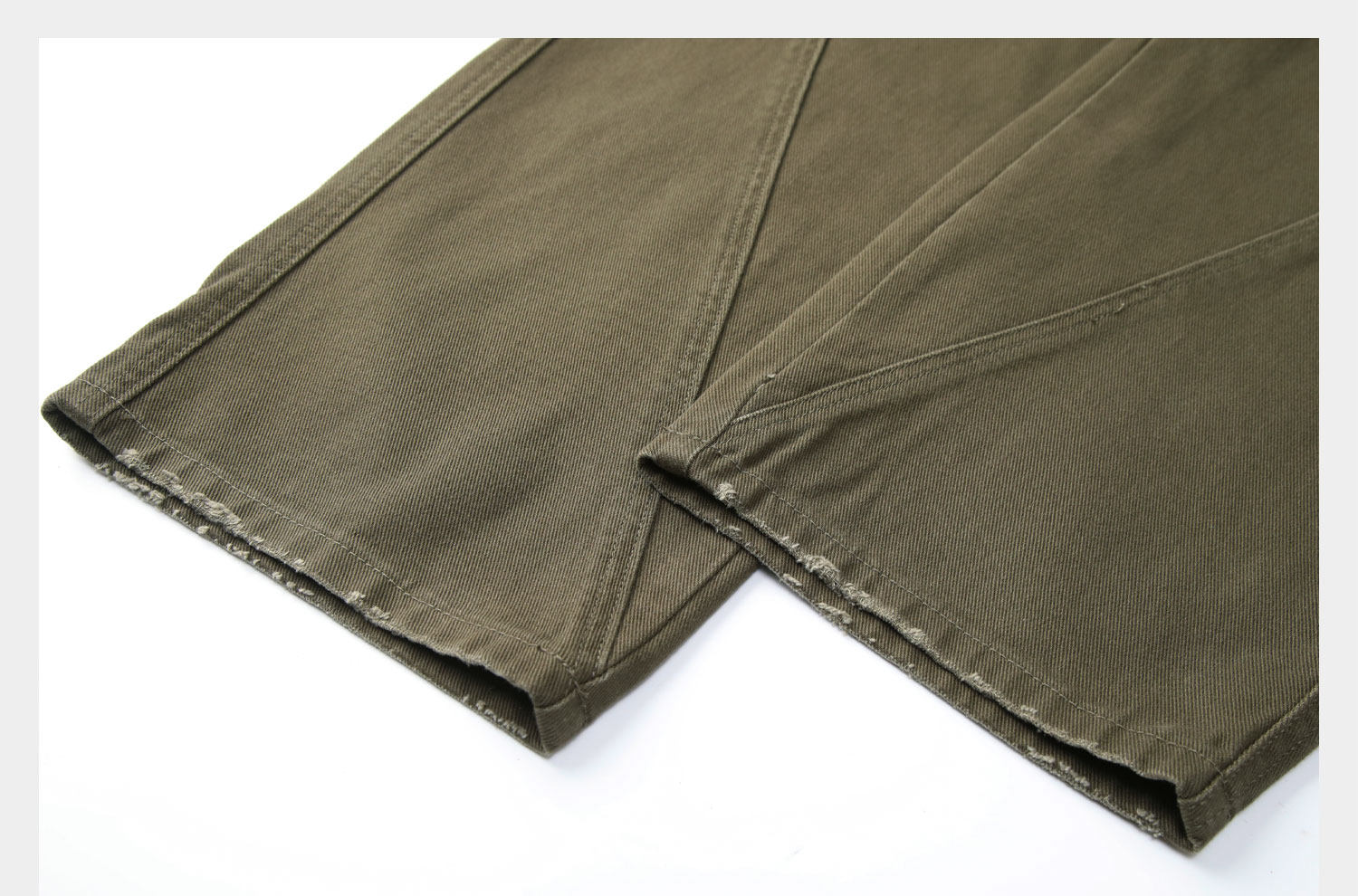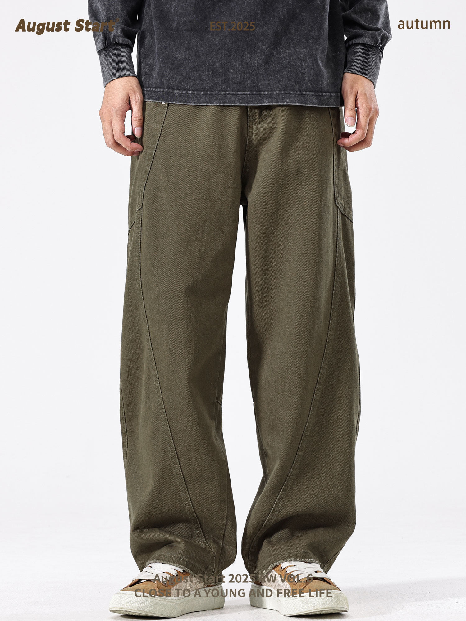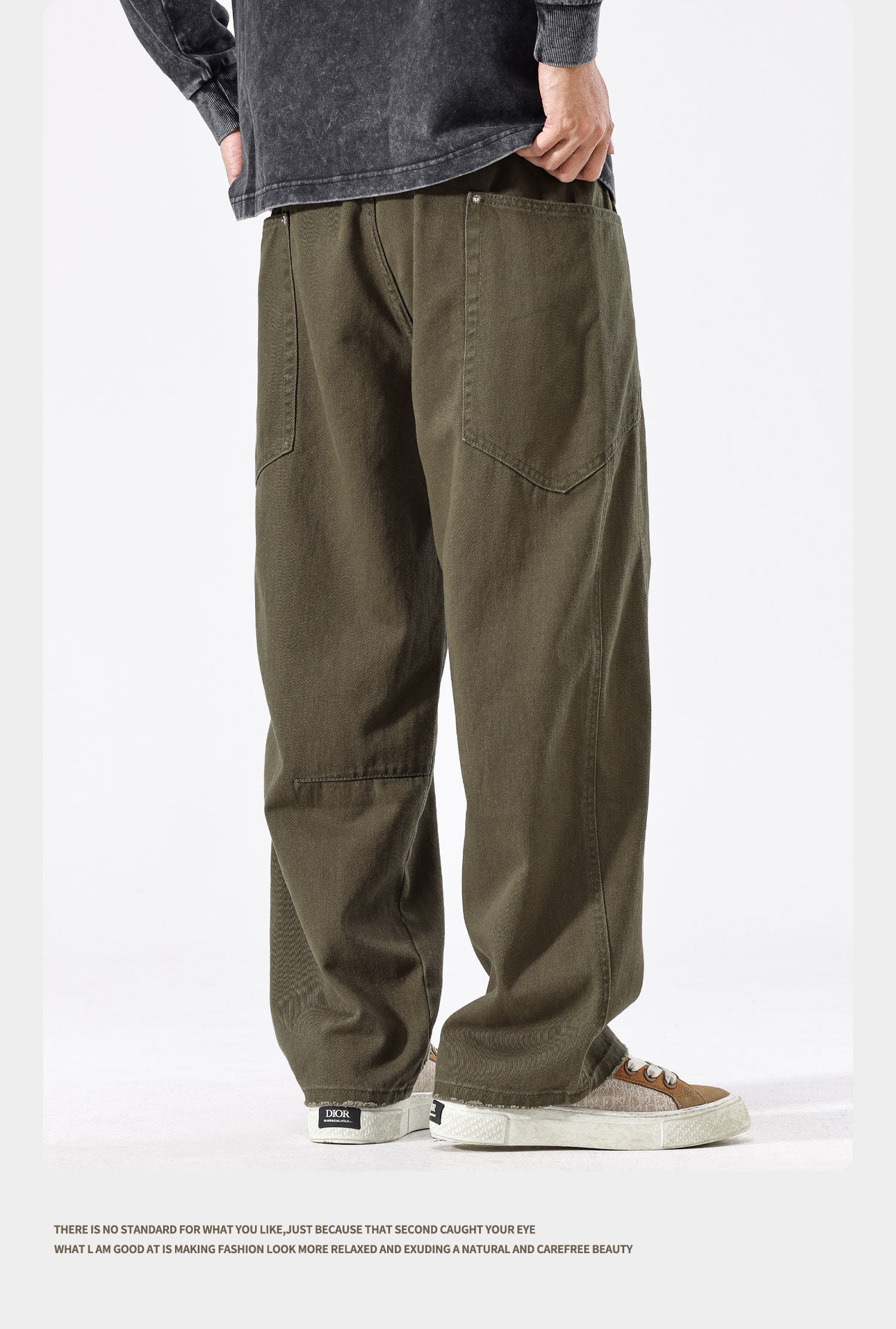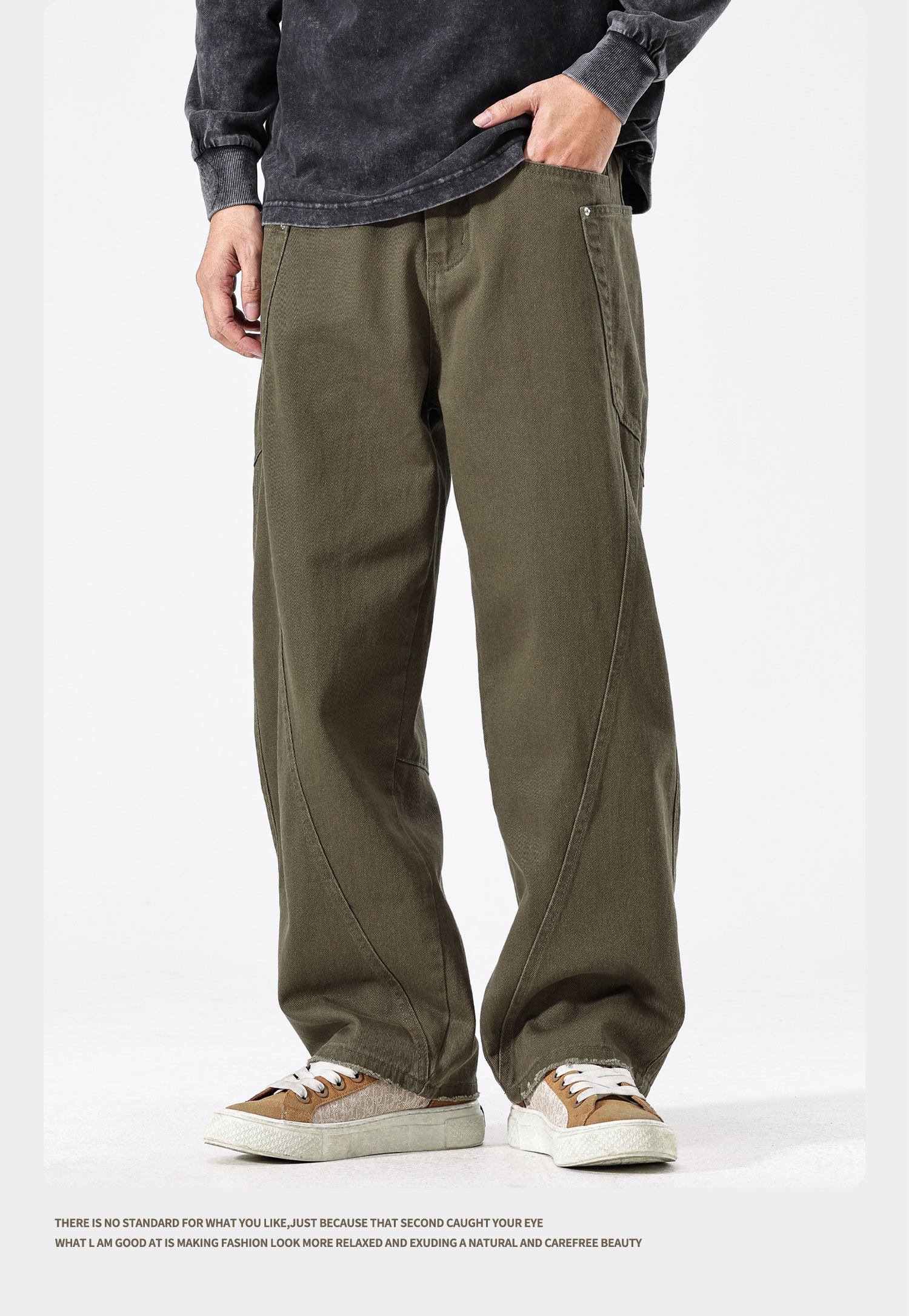 August美式潮牌加絨彎刀牛仔褲子男款秋冬寬鬆直筒男士休閒長褲男