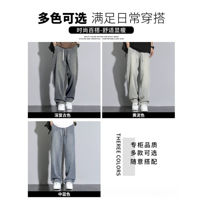 JEEP SPIRIT吉普星空紋牛仔褲男士秋冬寬鬆直筒濶腿透氣長褲子男