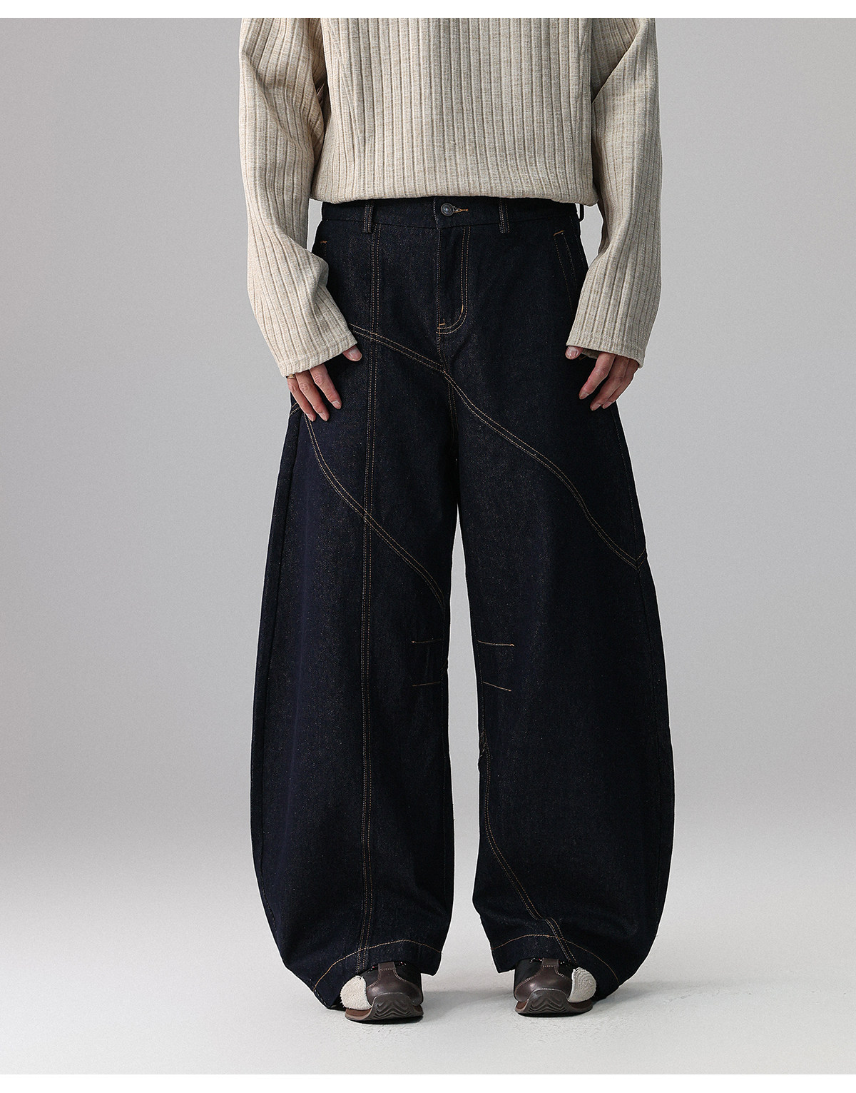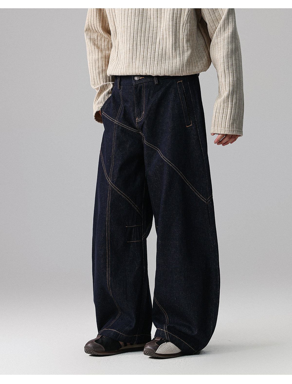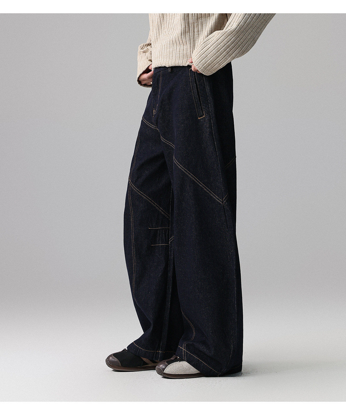 「復古秘境」美式潮牌明線彎刀原牛牛仔褲男春季寬鬆長褲