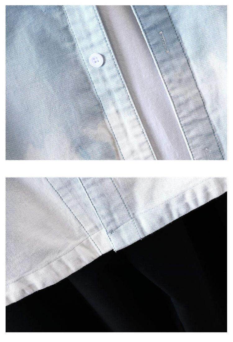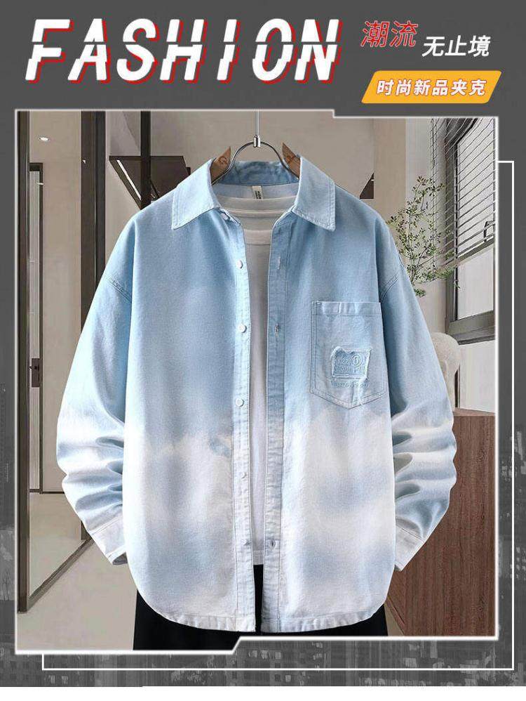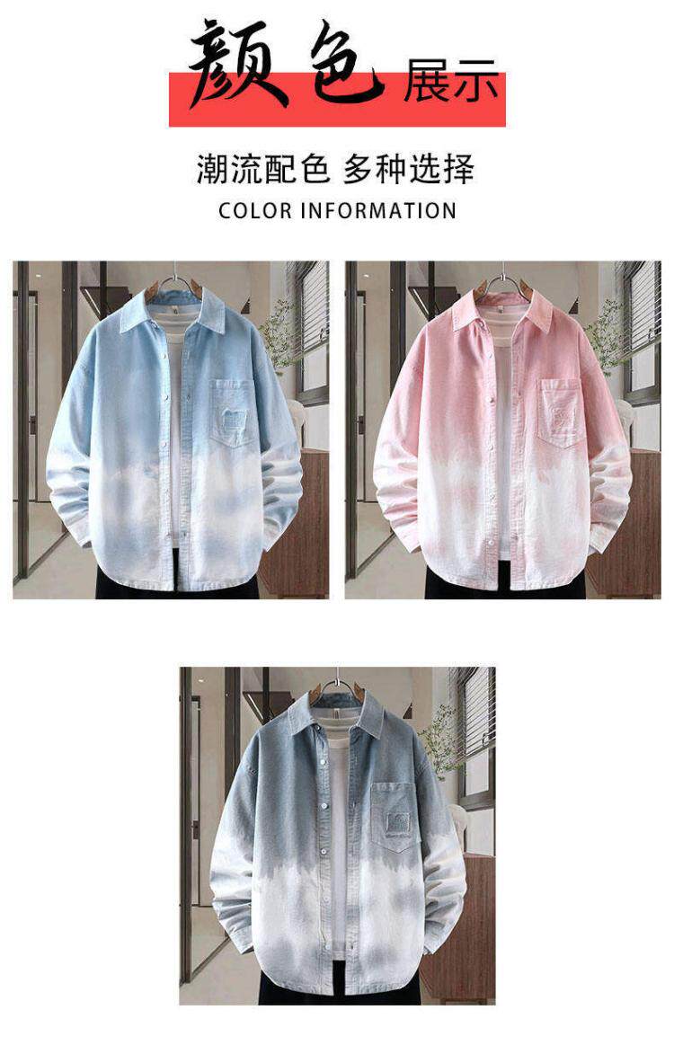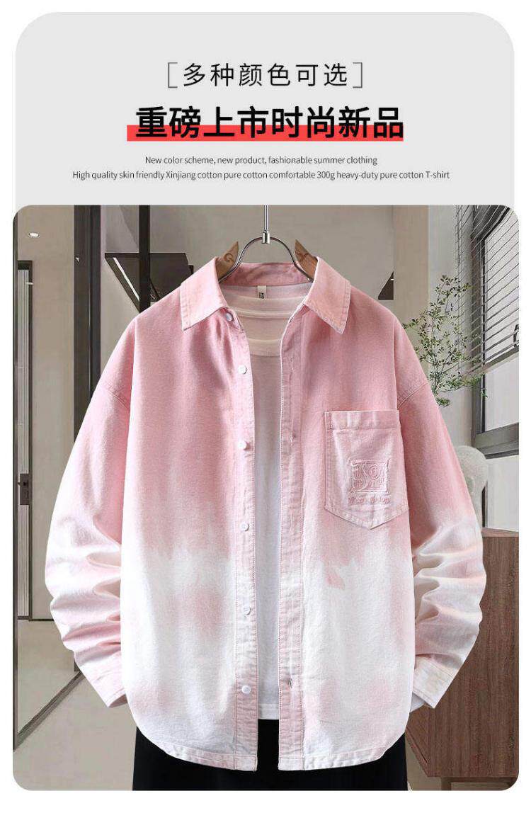 漸變牛仔長袖襯衫夾克男粉色2026秋冬青少年學生純棉襯衣加絨外套