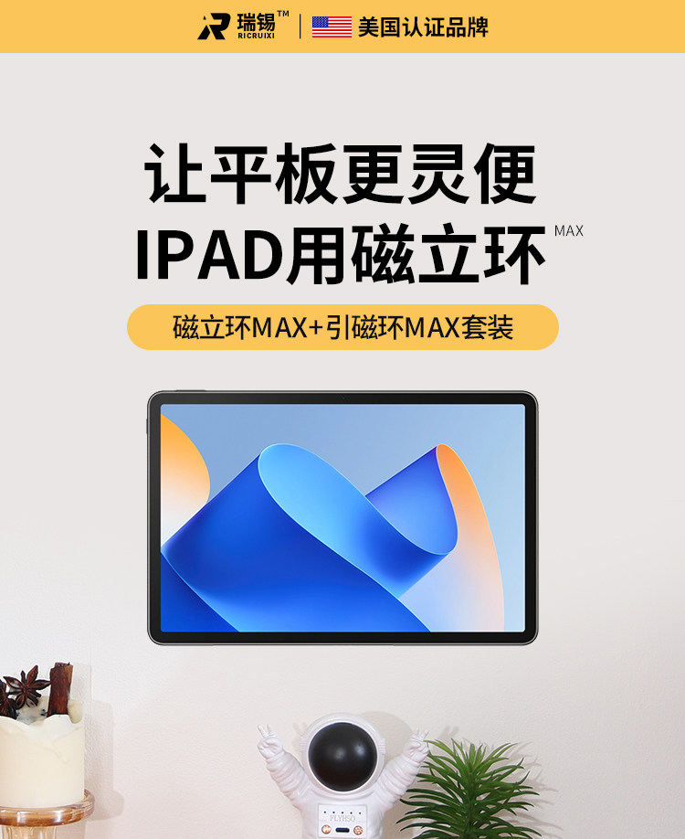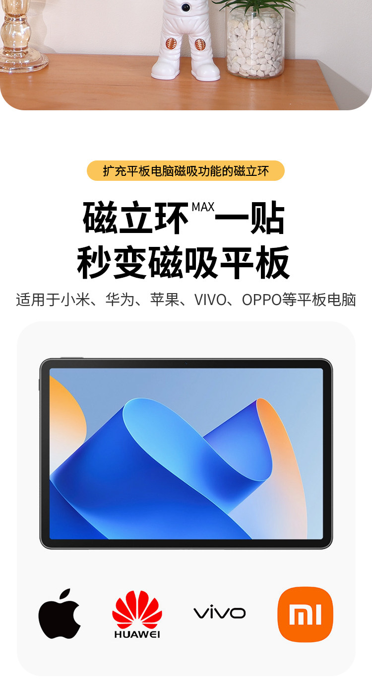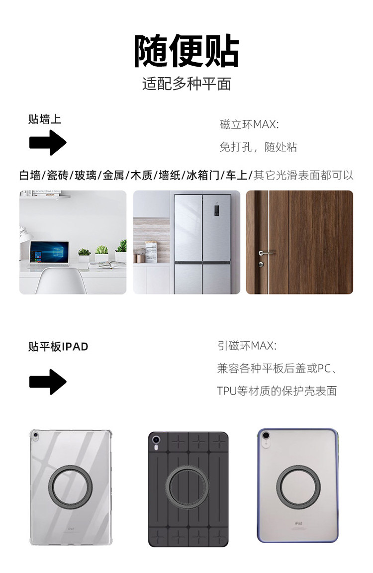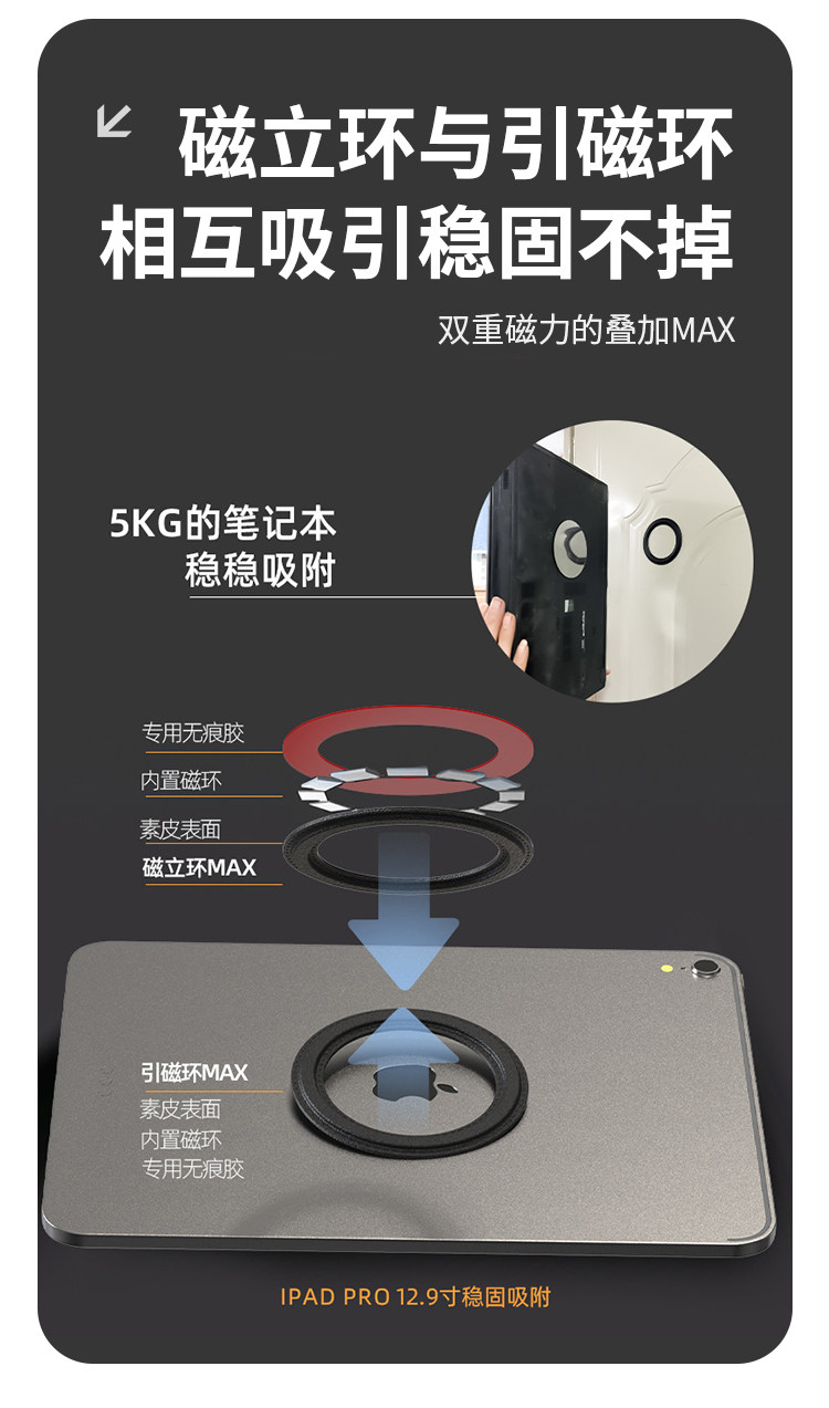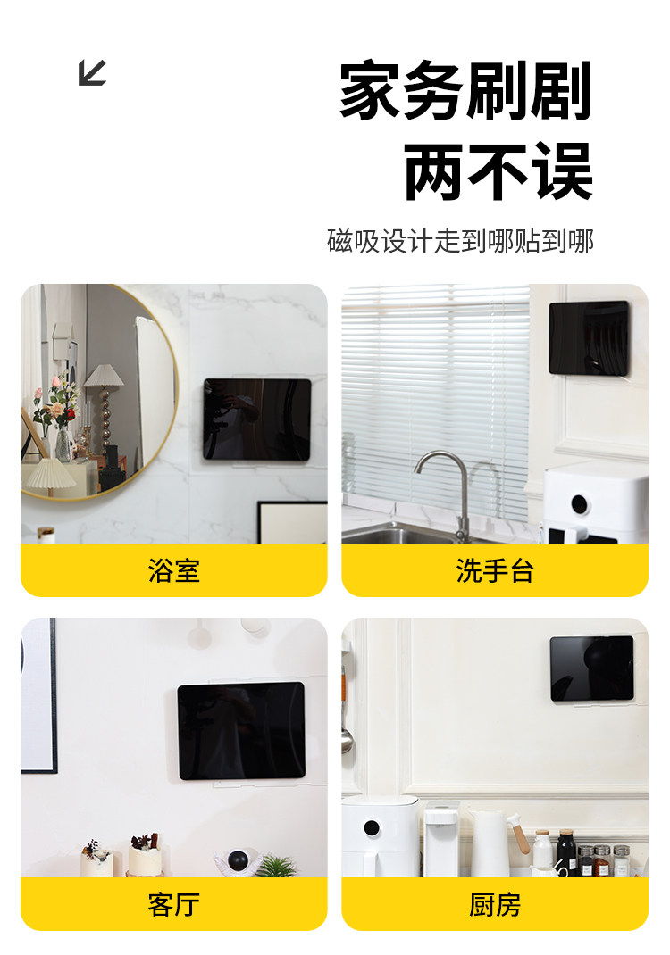 適用於ipad牆上磁吸壁掛支架磁吸貼片環廚房厠所中控華爲平板支架
