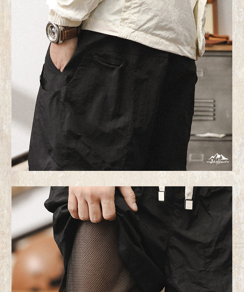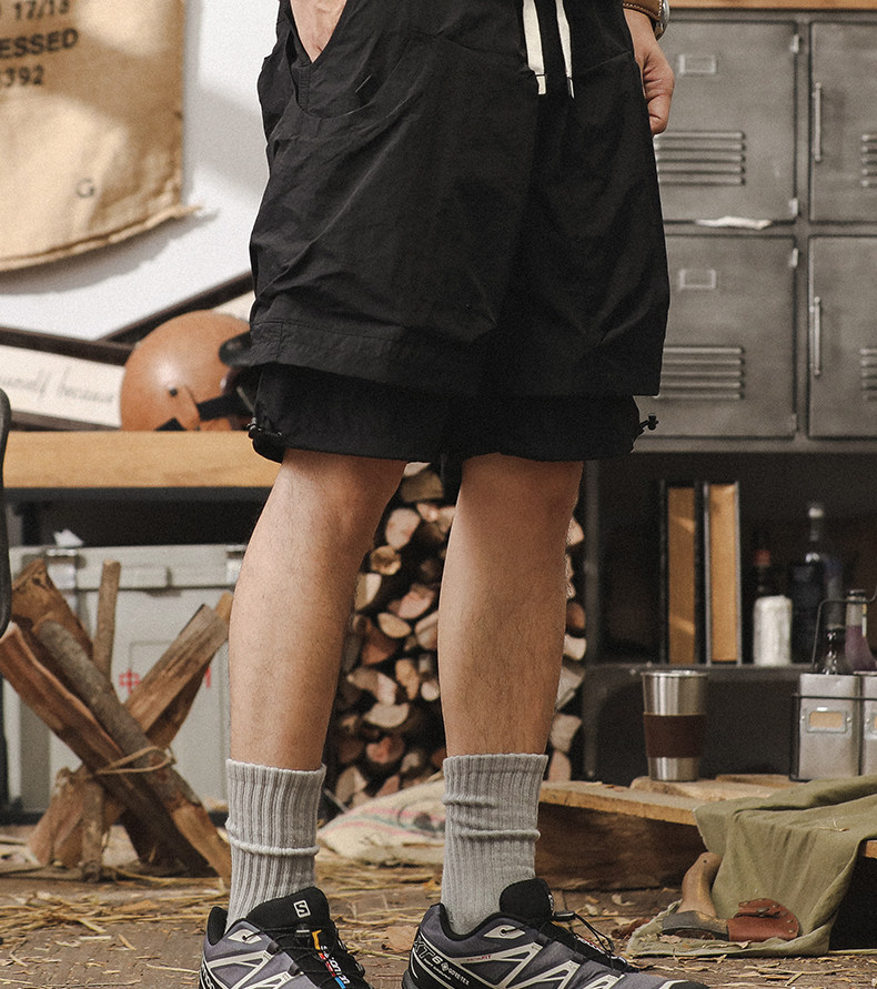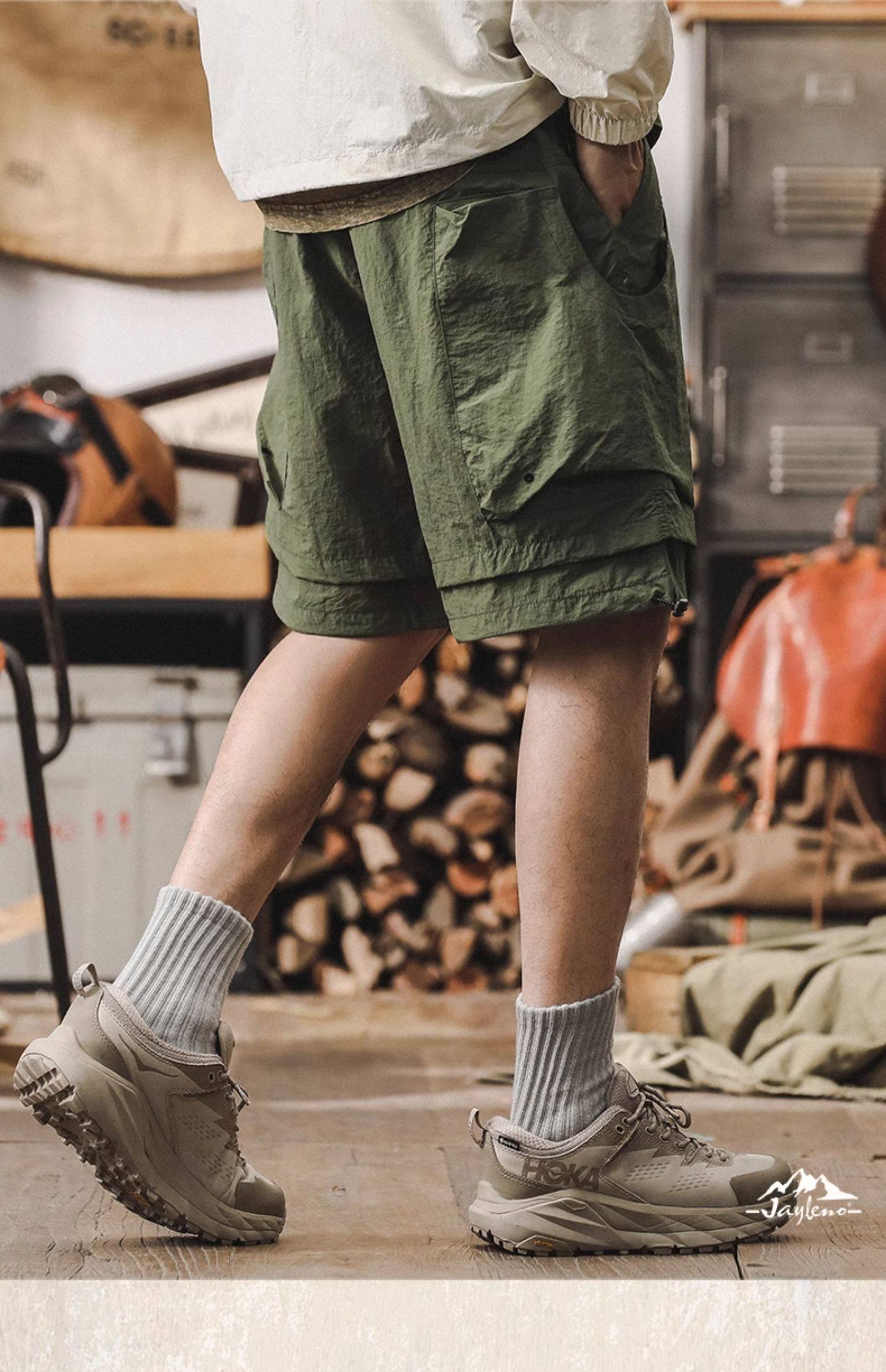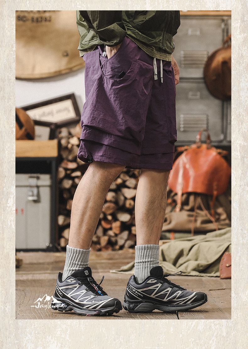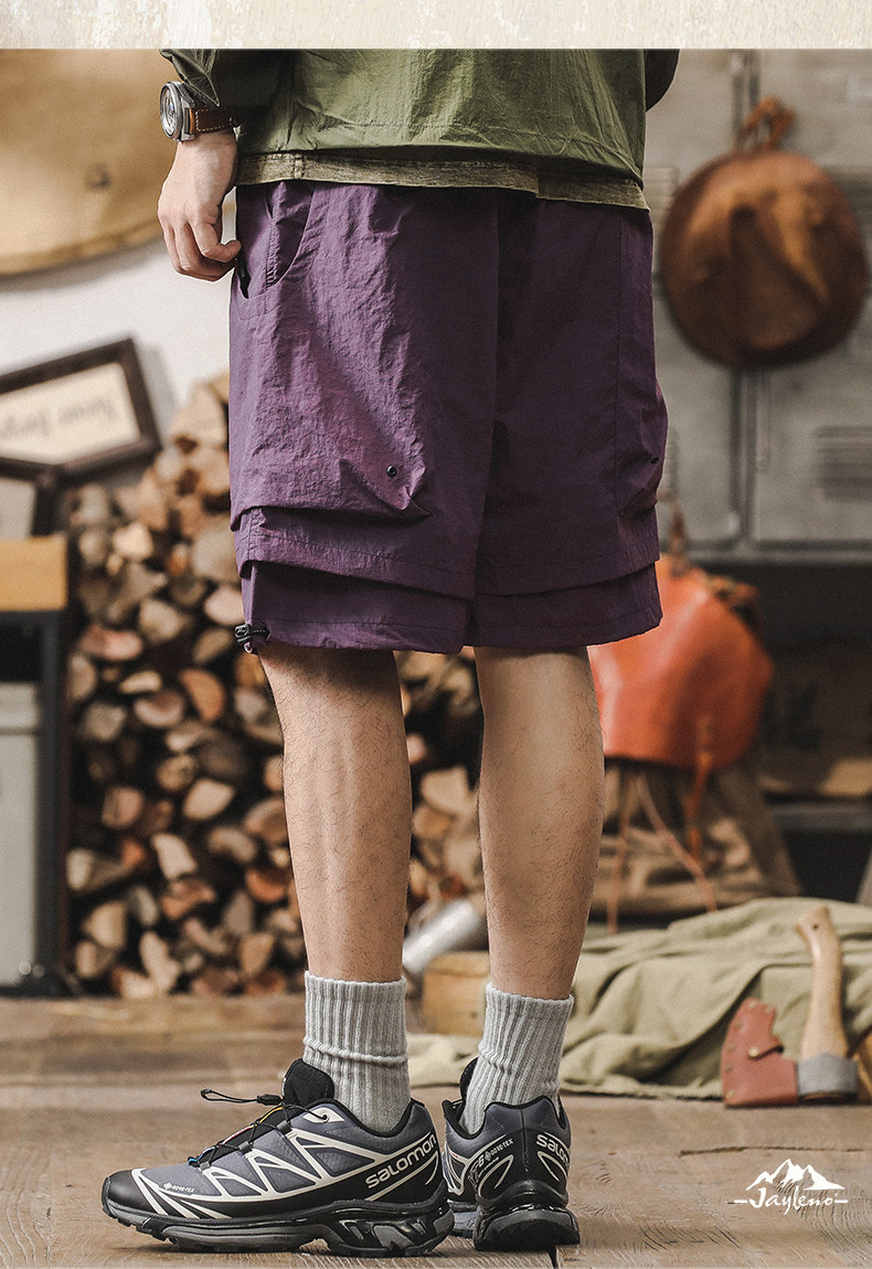 美式工裝短褲男夏季寬鬆大碼假兩件山系戶外機能速乾褲休閒五分褲