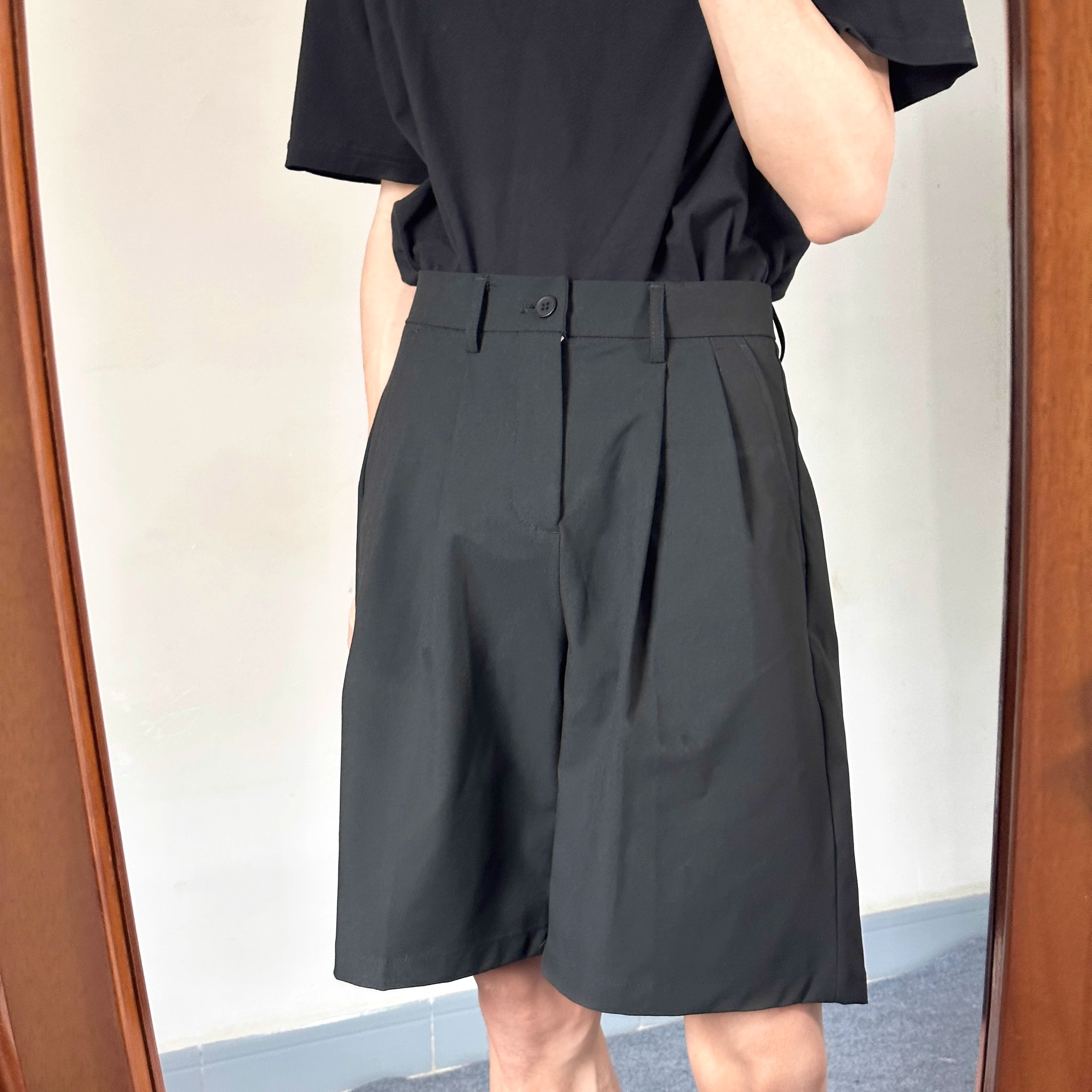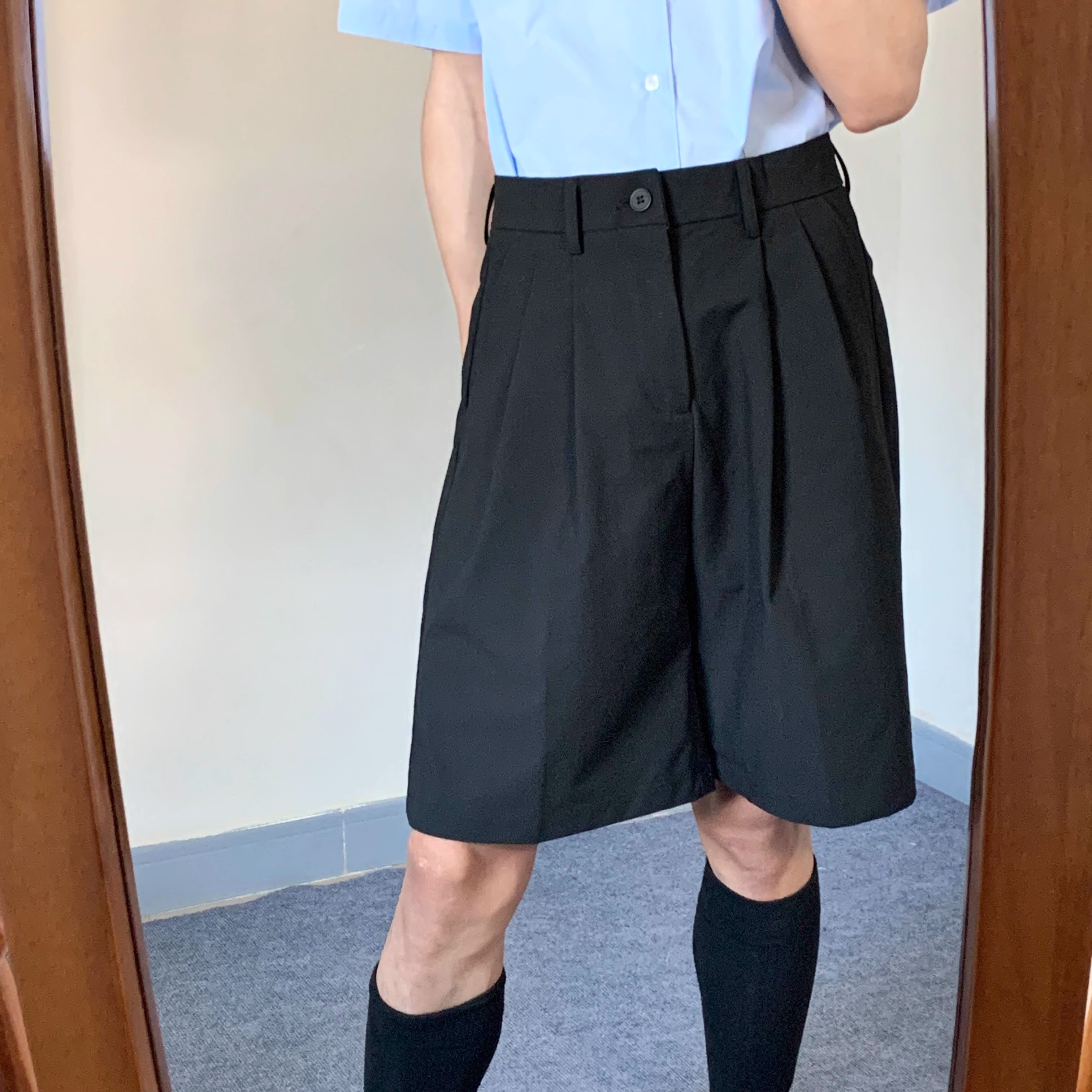 dk製服男夏季短西褲中性五分褲子寬鬆日系百搭休閒黑色學生校服褲