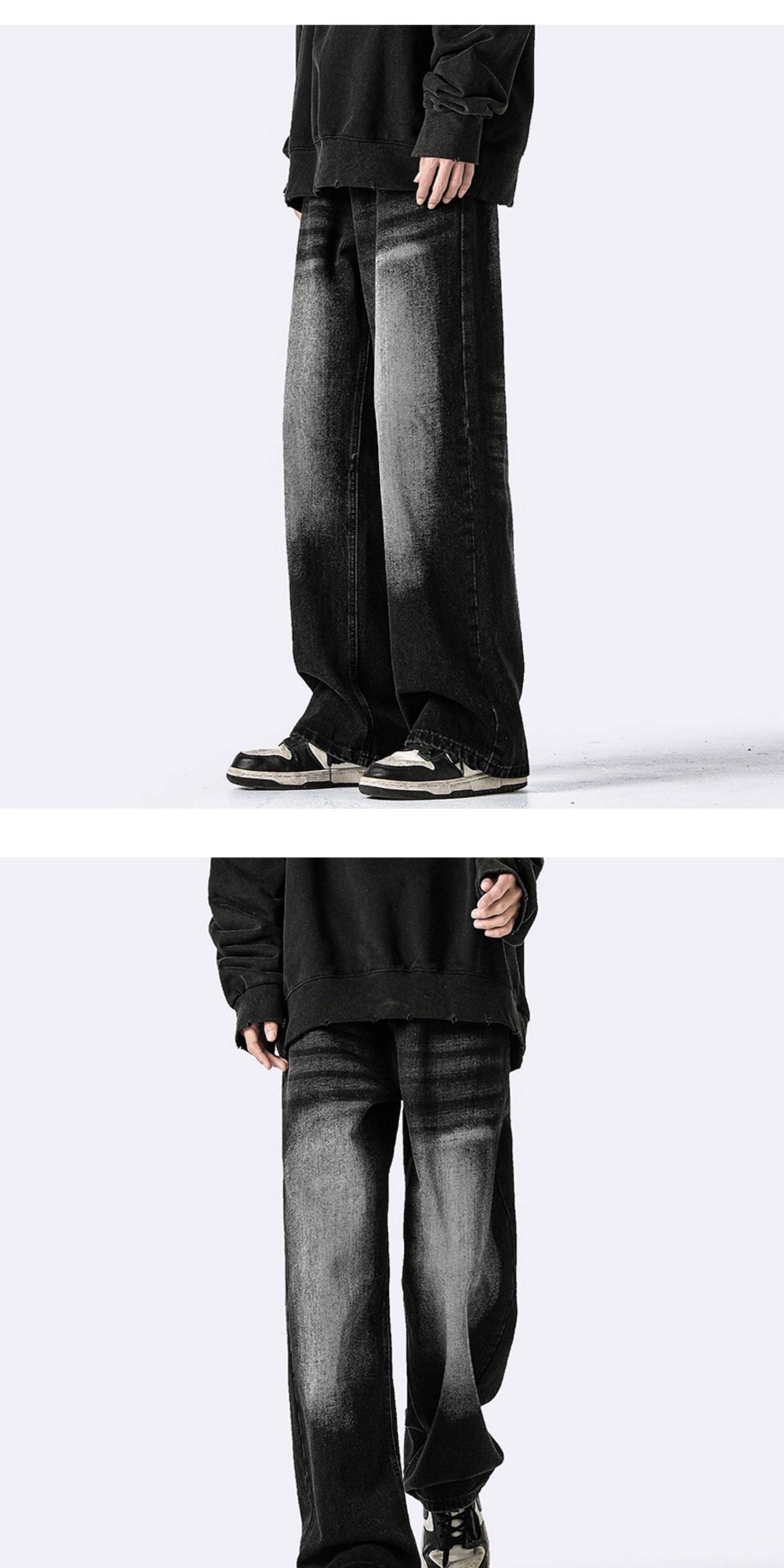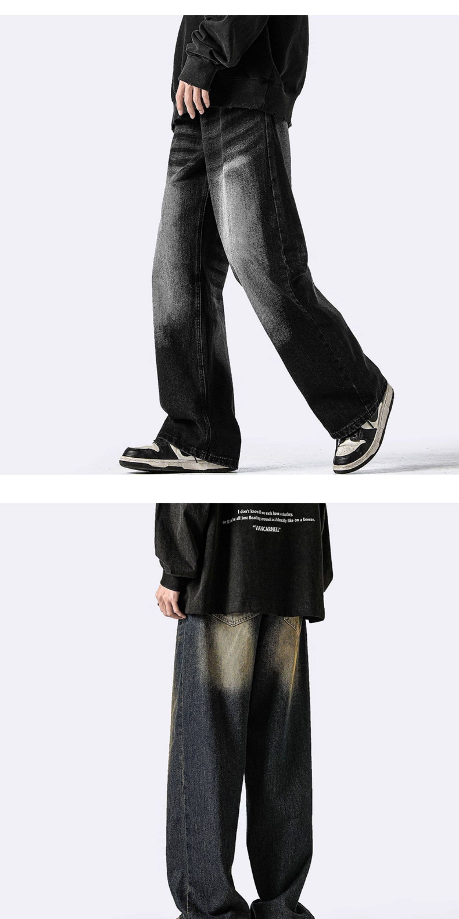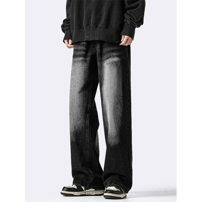 復古做舊水洗牛仔褲男冬季美式高街寬鬆拖地褲子潮牌大碼濶腿長褲
