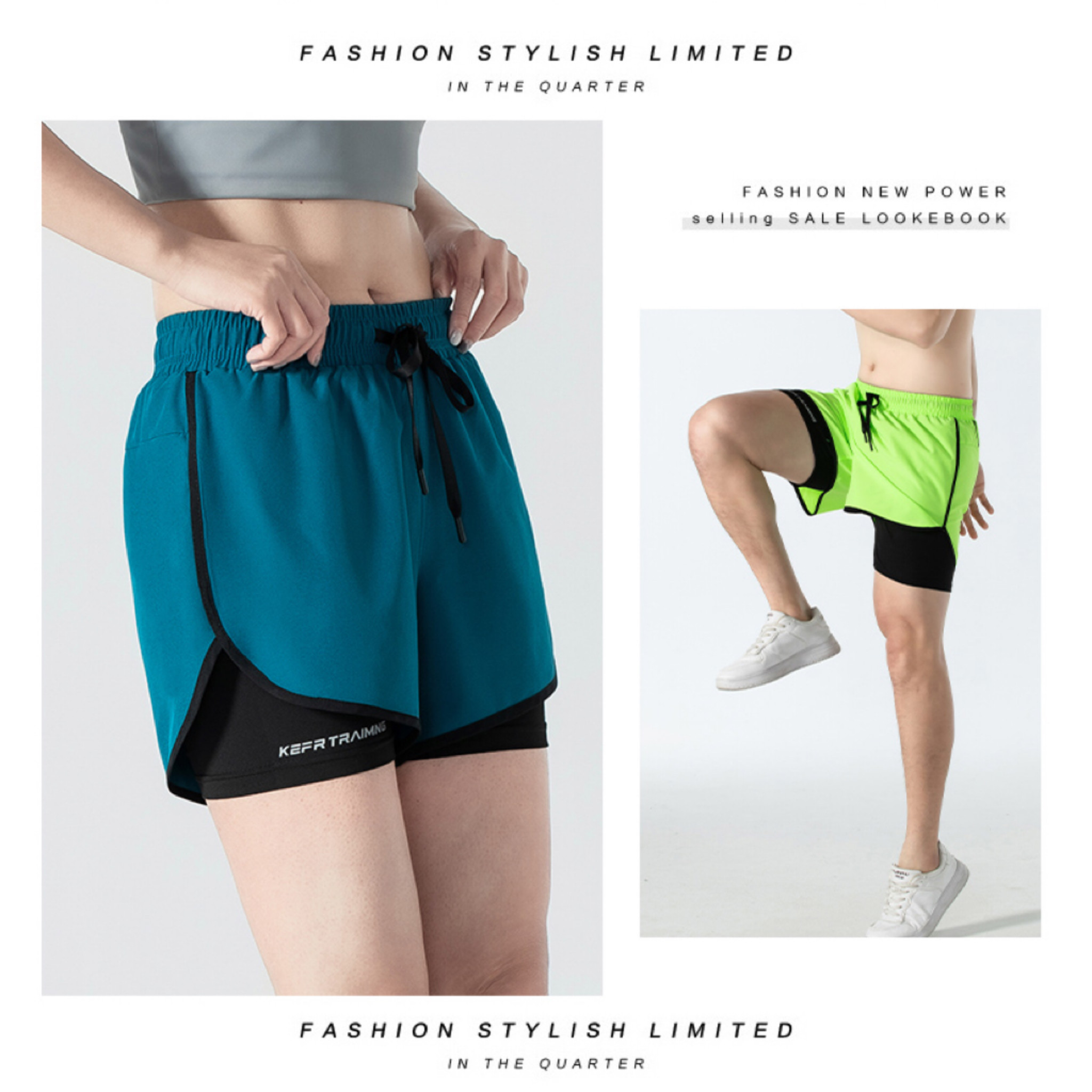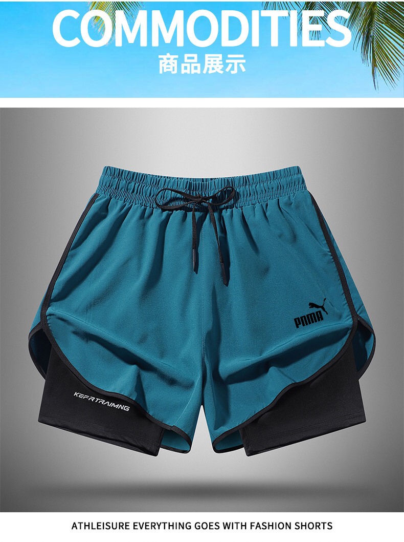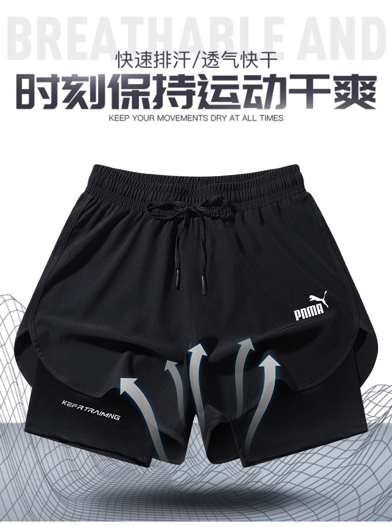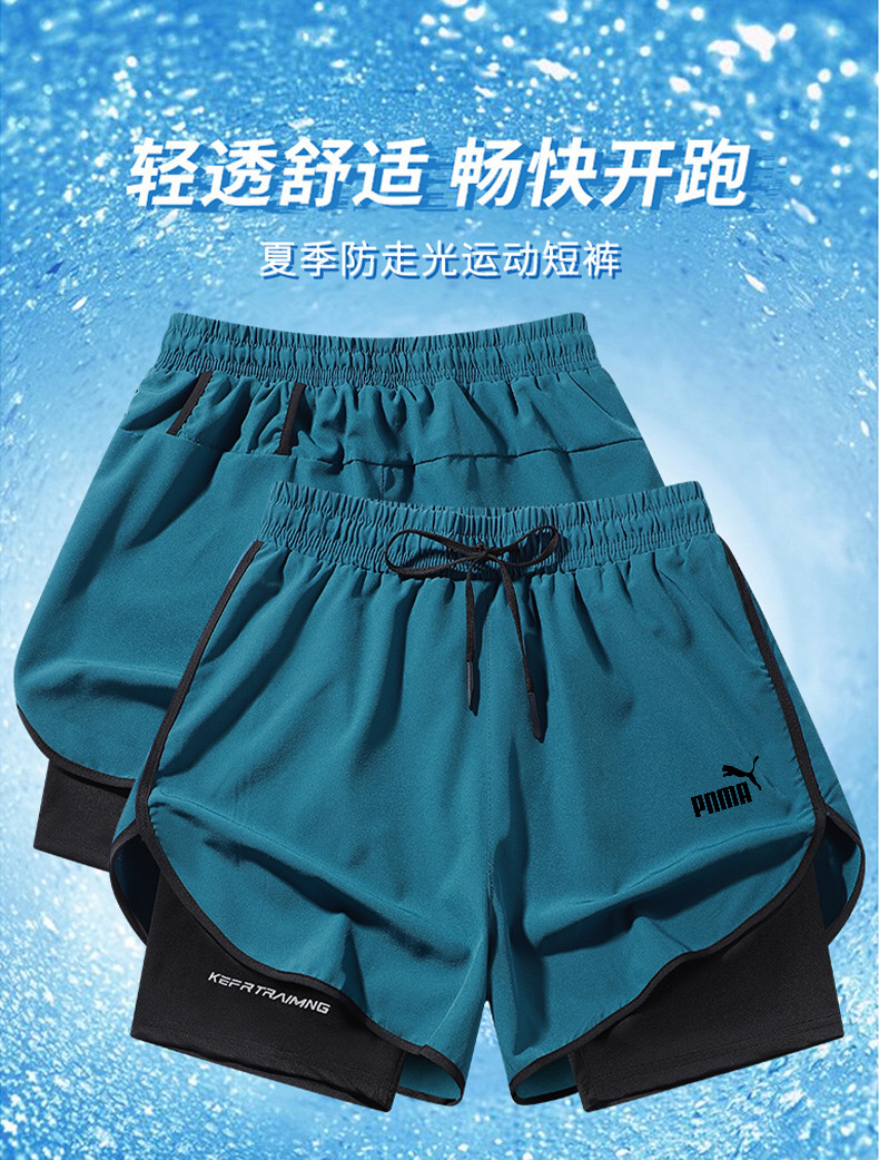 品牌折釦假兩件速乾三分褲運動健身神器防走光防尲尬跑步訓練短褲