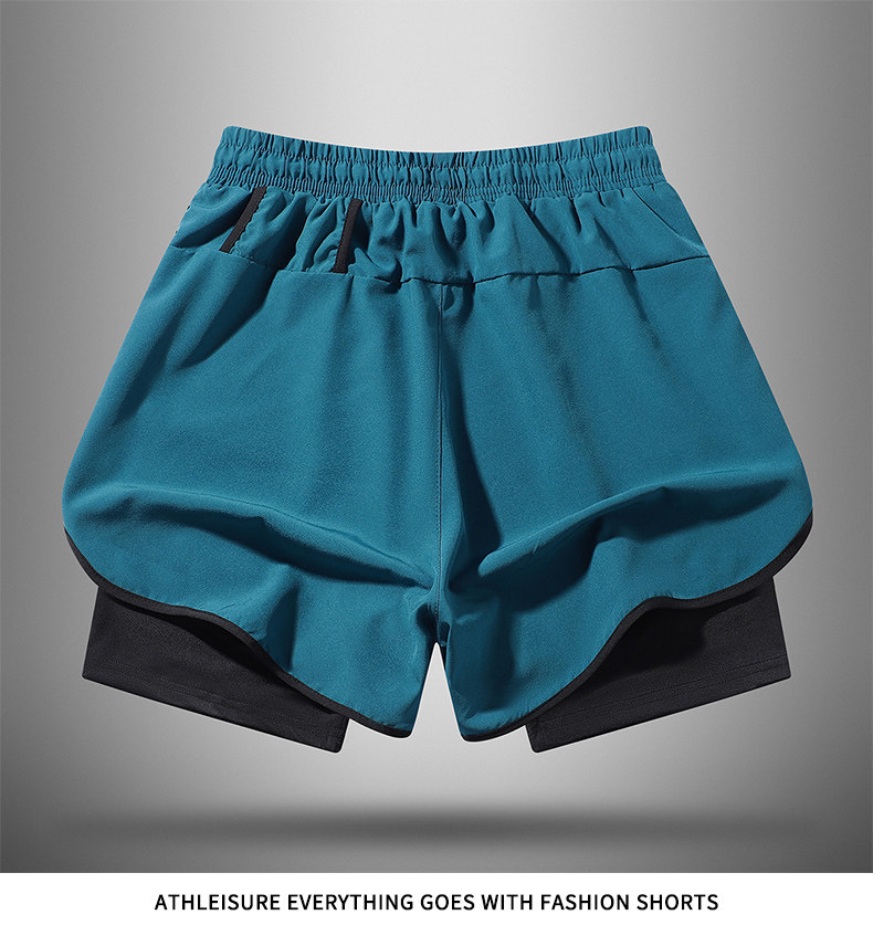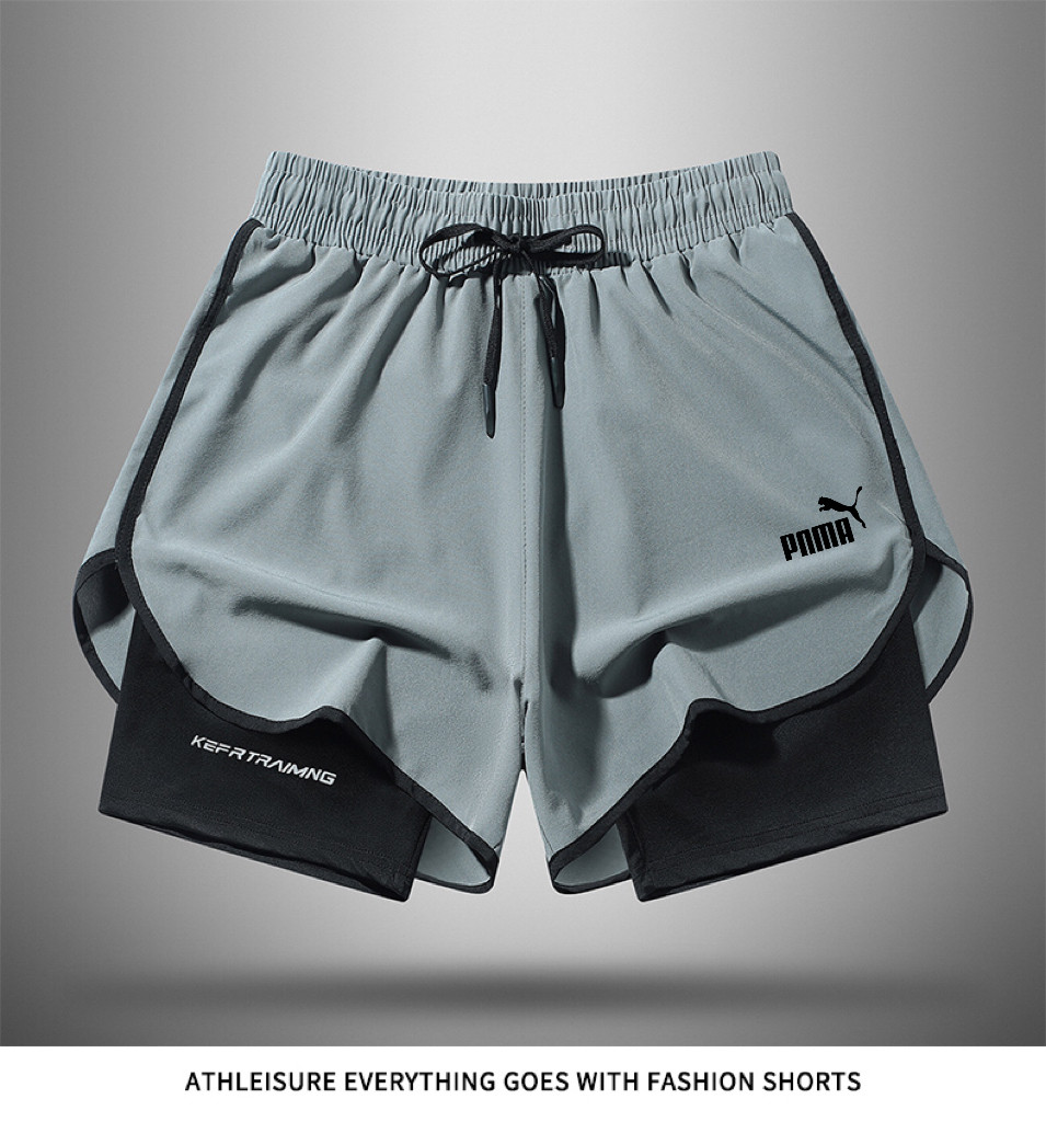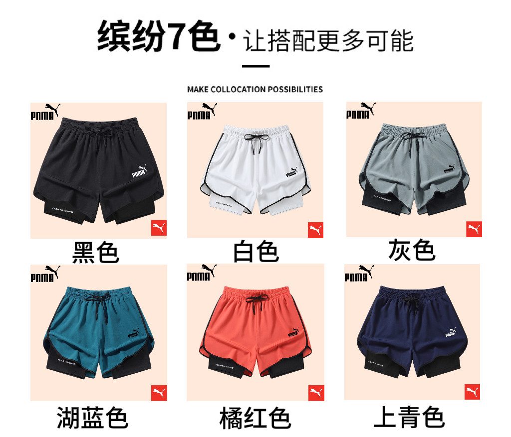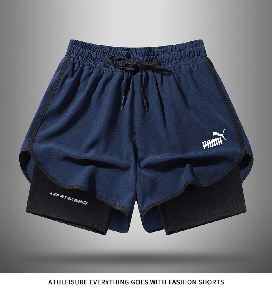 品牌折釦假兩件速乾三分褲運動健身神器防走光防尲尬跑步訓練短褲