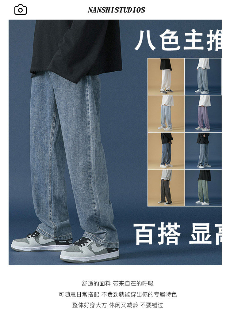 加絨加厚直筒牛仔褲男秋冬季2025新款寬鬆潮牌青少年休閒濶腿褲子