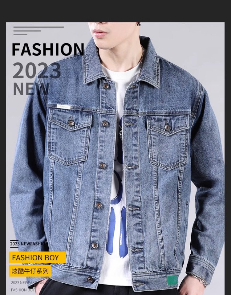 港風復古牛仔外套男士寬鬆秋季夾克2025春秋新款工裝休閒拼接茄克