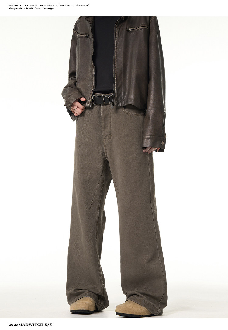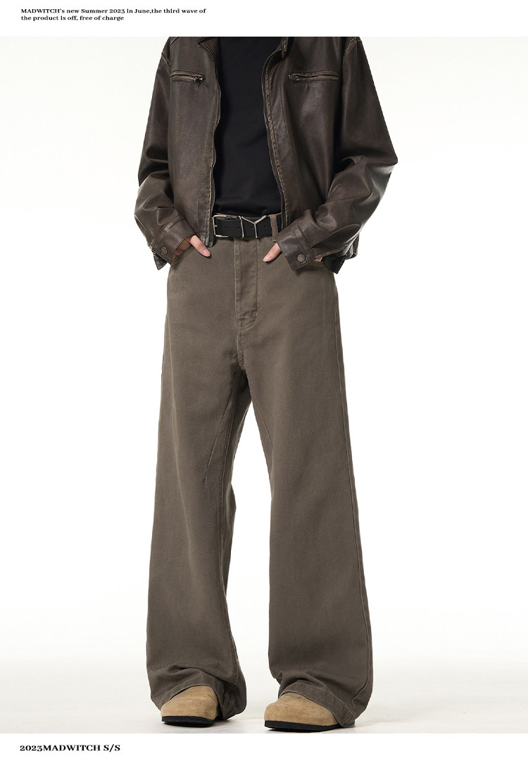 MADWITCH新款復古直筒牛仔褲男vintage美式休閒小衆cleanfit長褲
