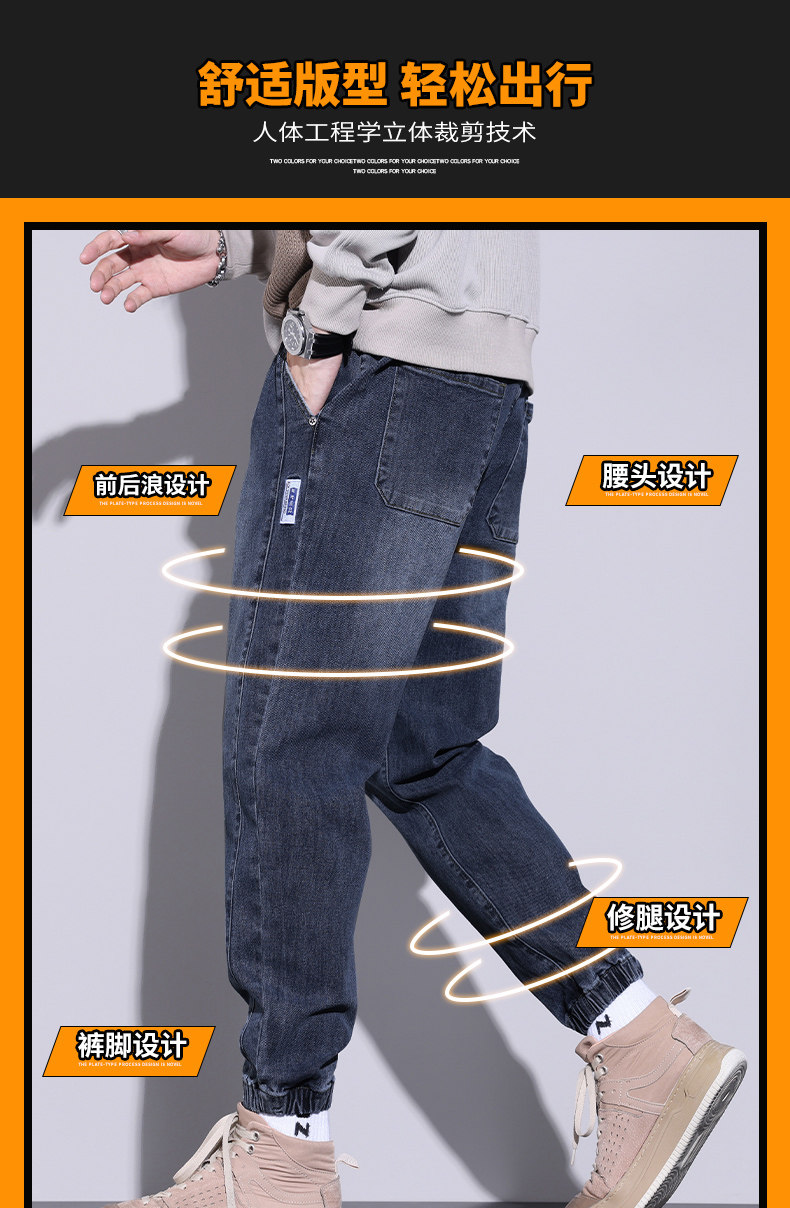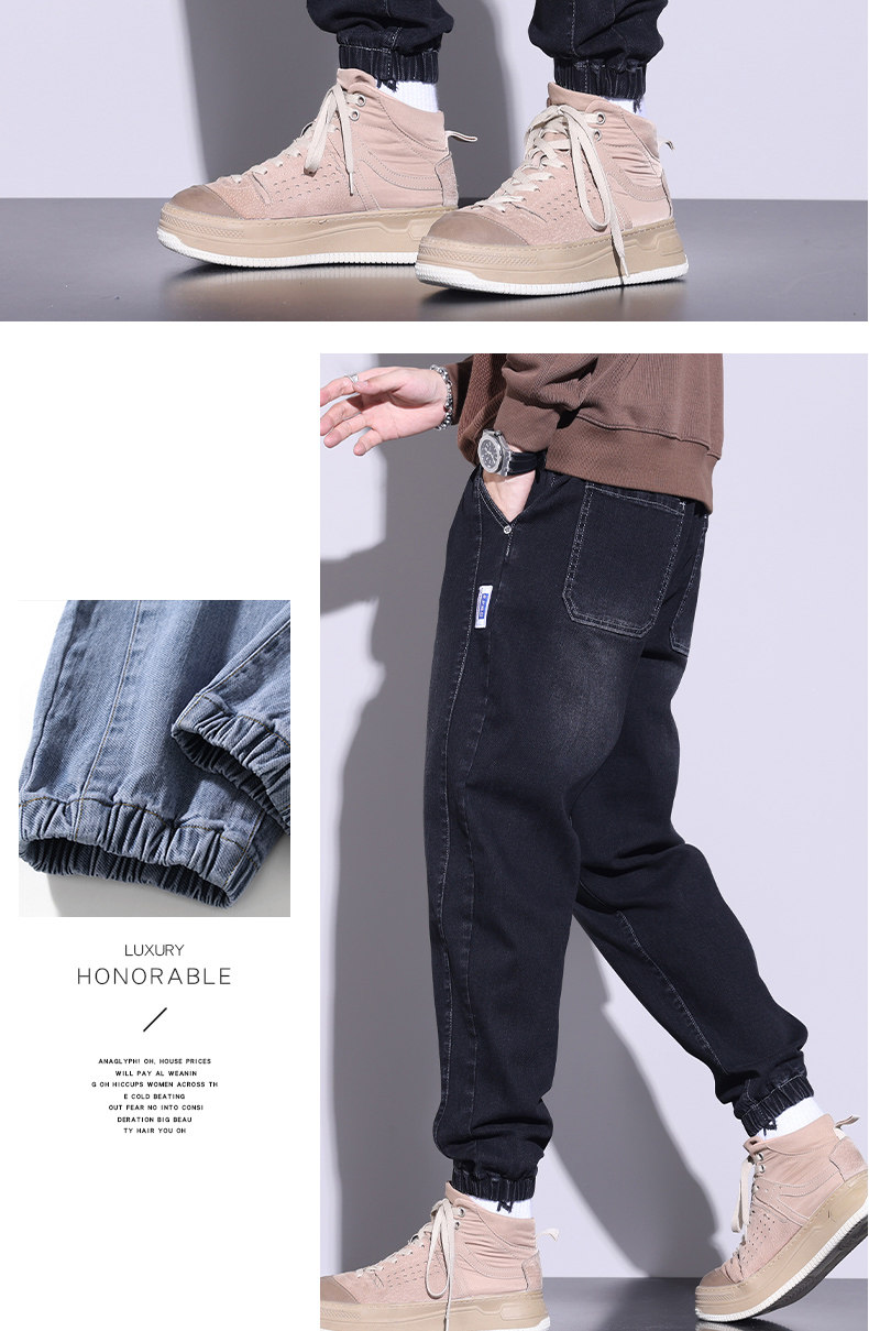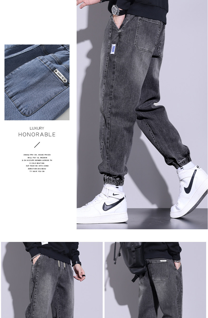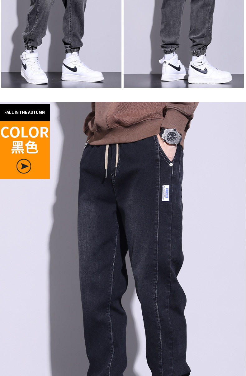 牛仔褲男士寬鬆休閒束腳褲2026年秋冬季新款加絨加厚哈倫長褲子男