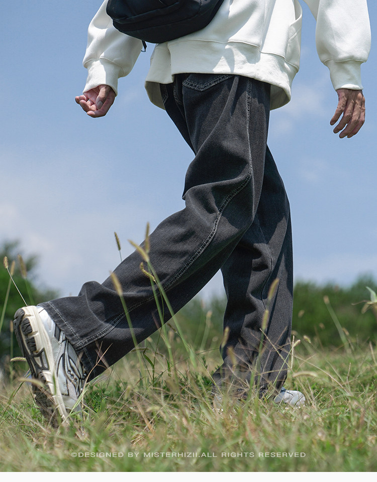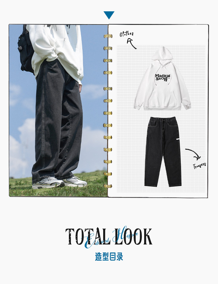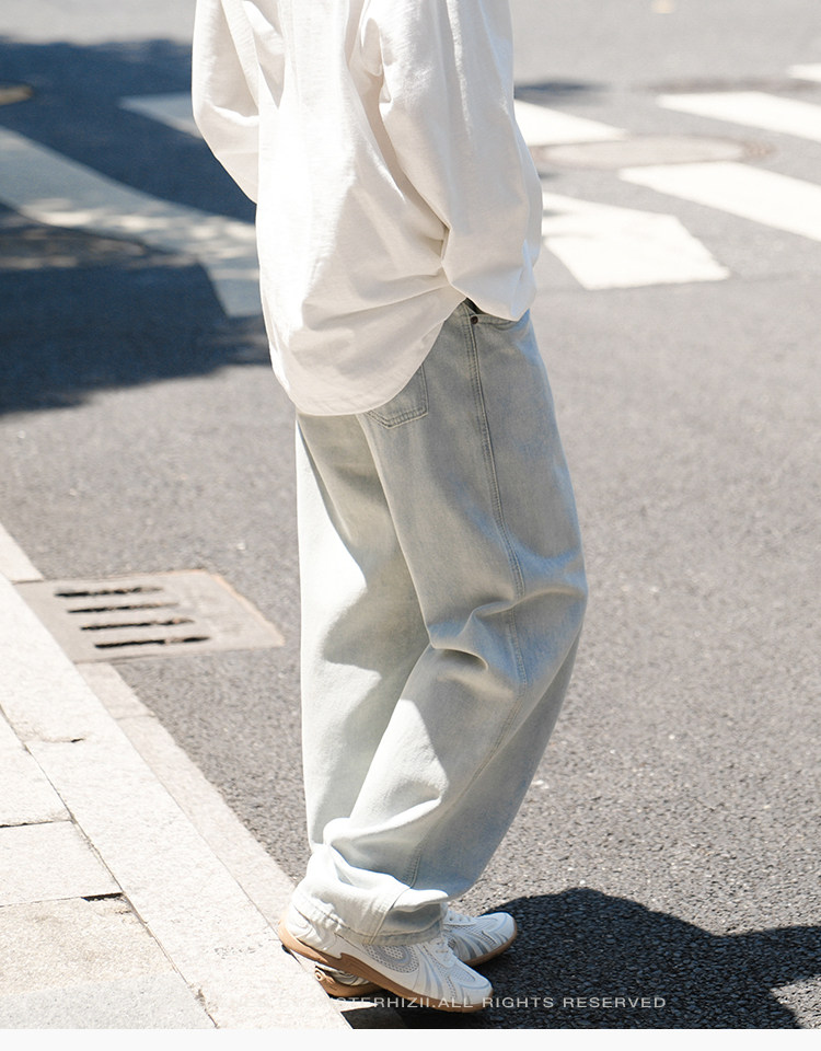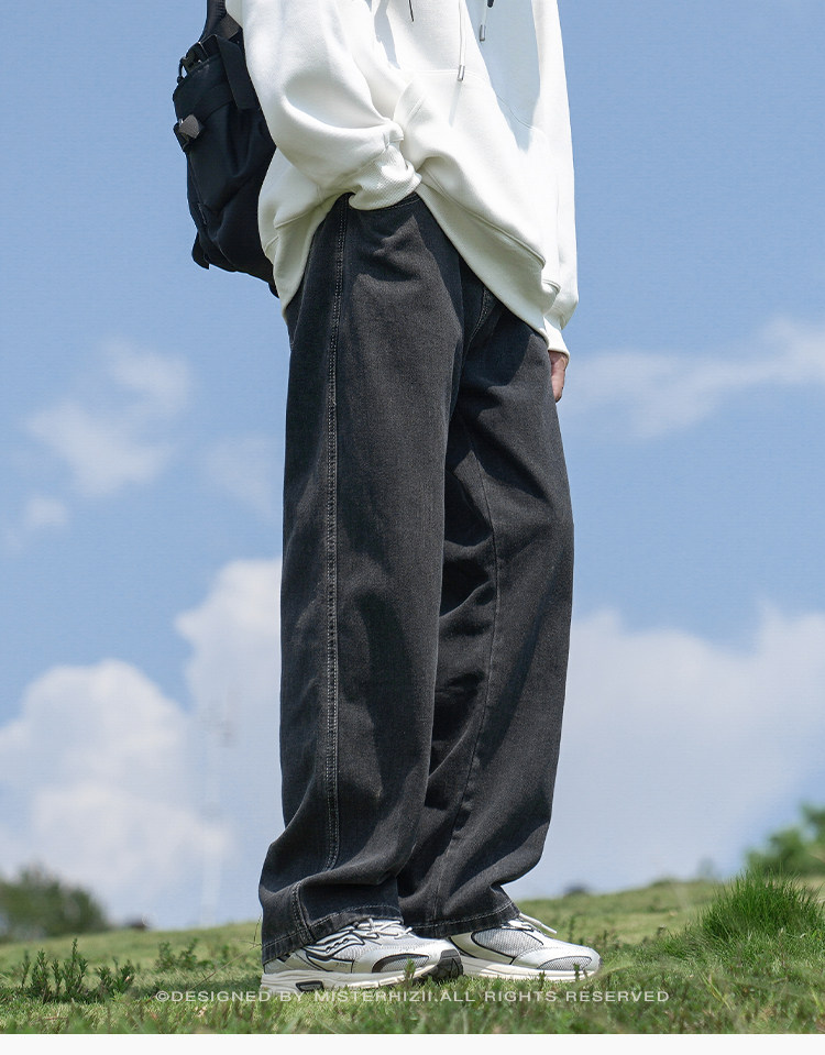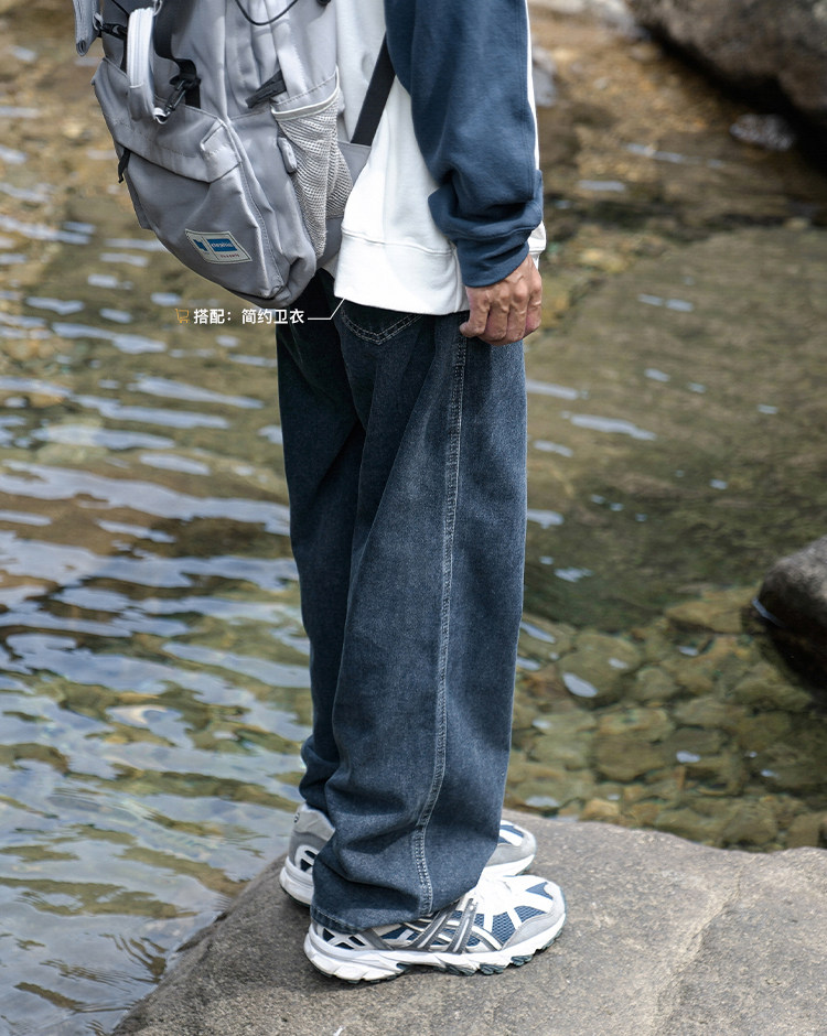 GOGOSOON牛仔褲男380g新款2025春秋直筒寬鬆濶腿復古水洗青少年感