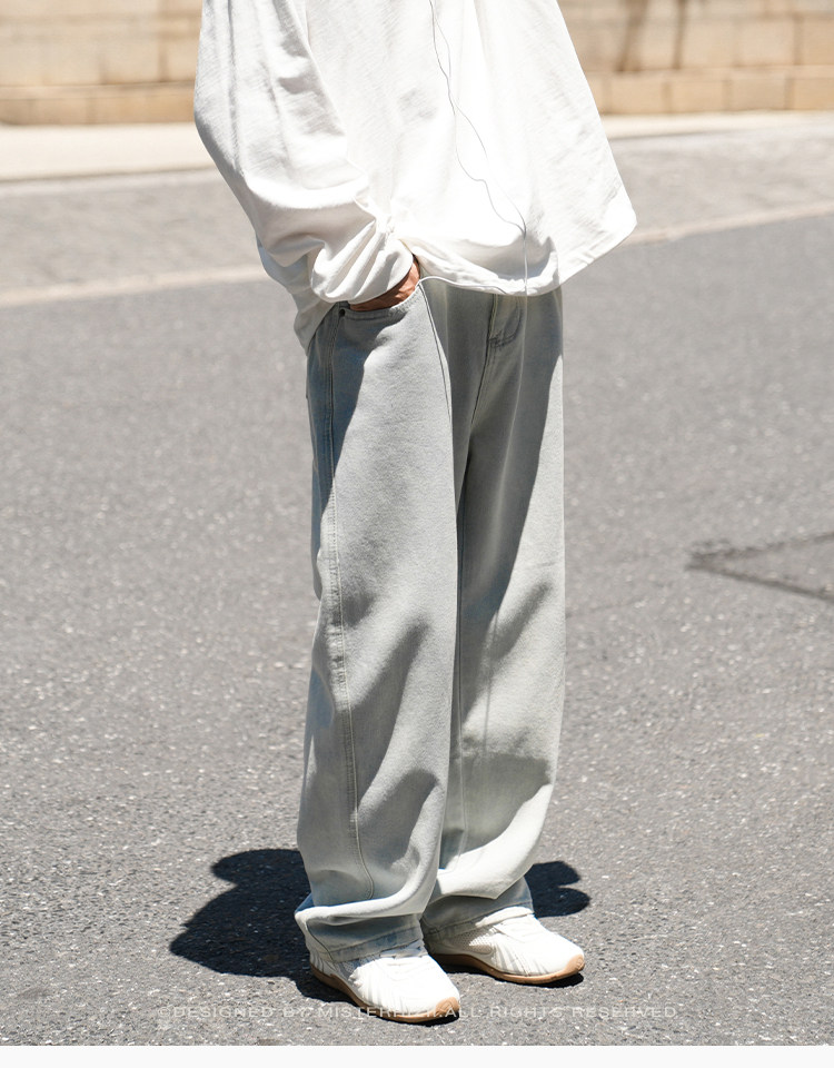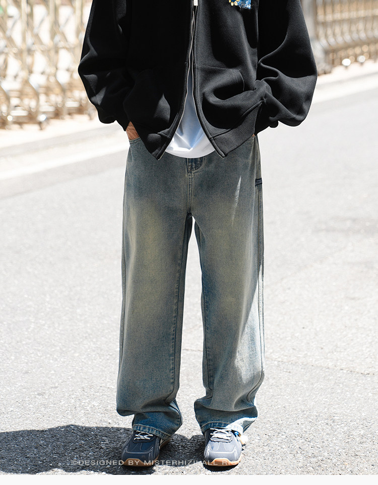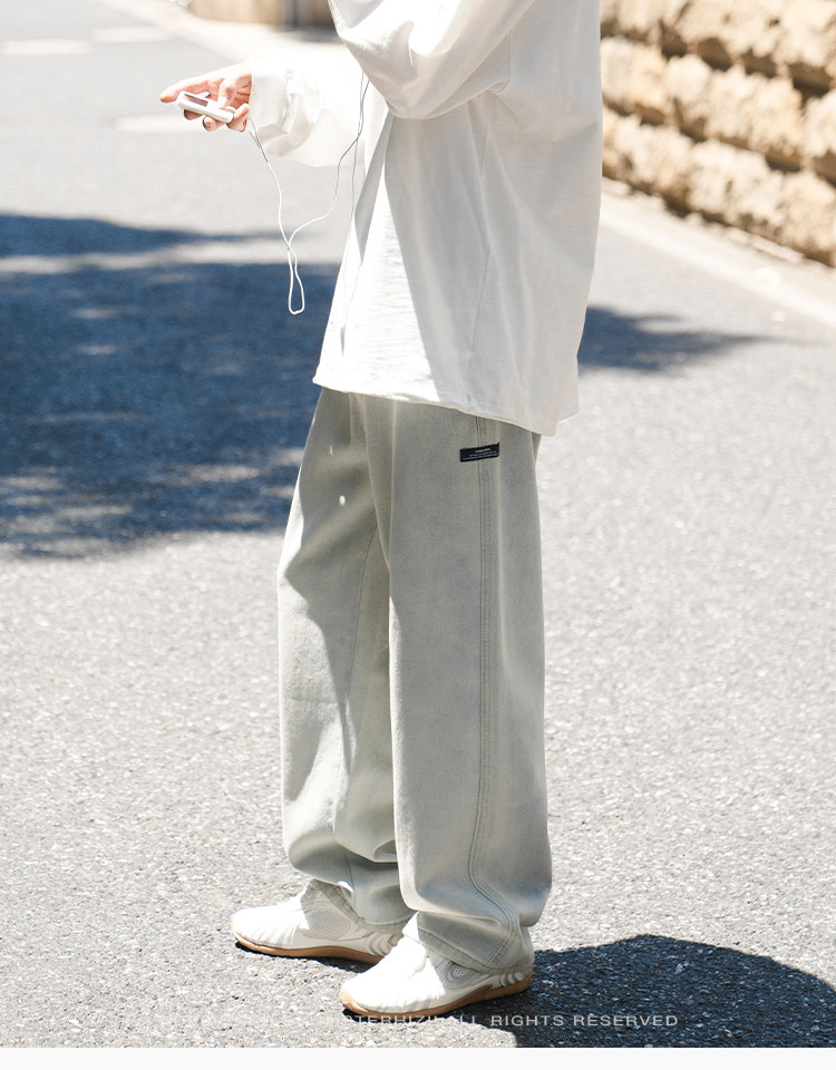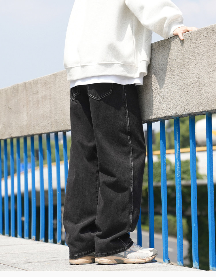 GOGOSOON牛仔褲男380g新款2025春秋直筒寬鬆濶腿復古水洗青少年感