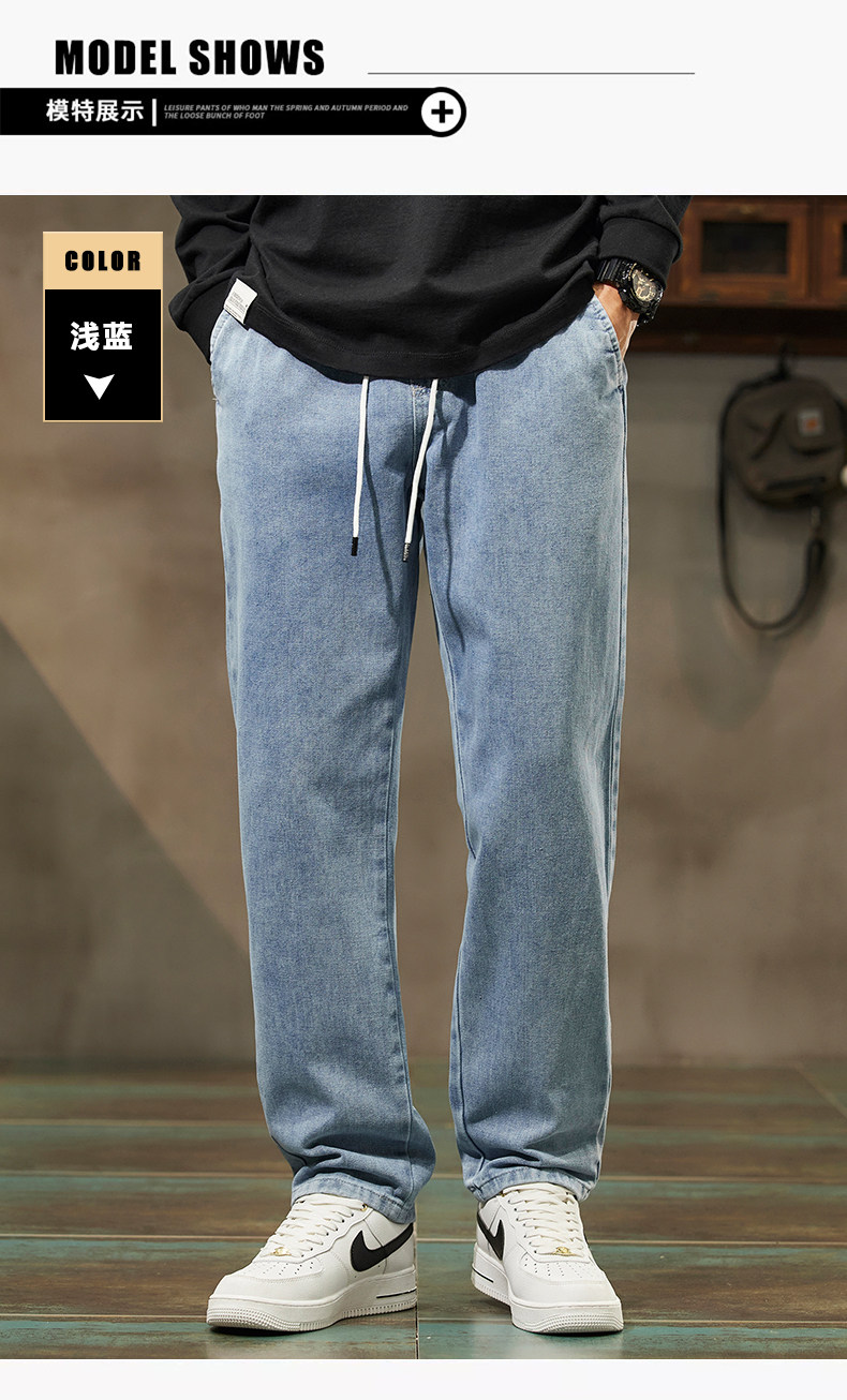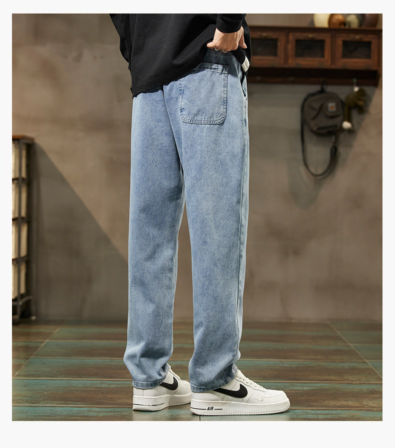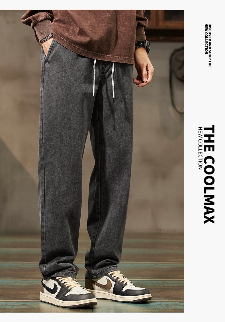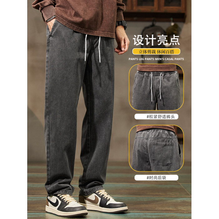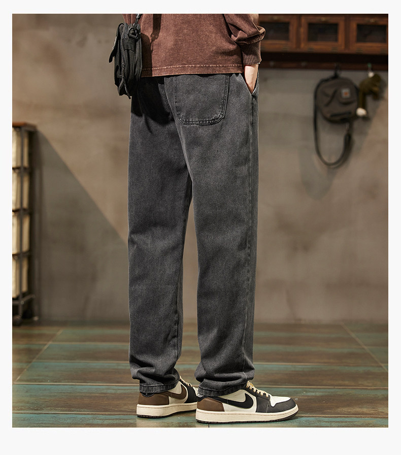 秋冬季加絨牛仔褲男士潮牌直筒寬鬆濶腿水洗工裝2025新款男生長褲