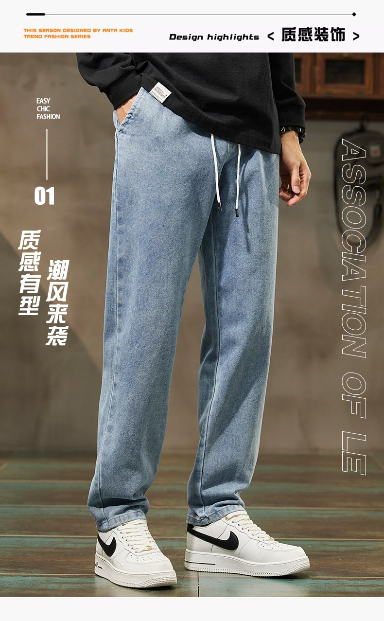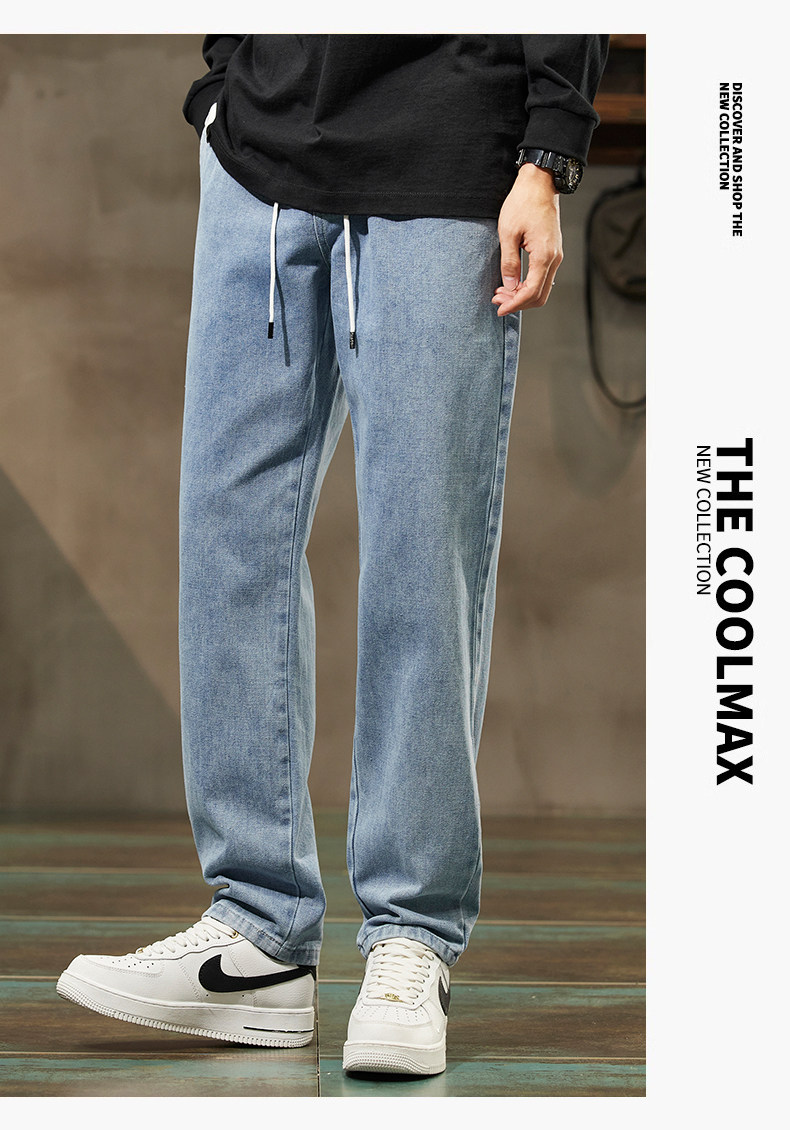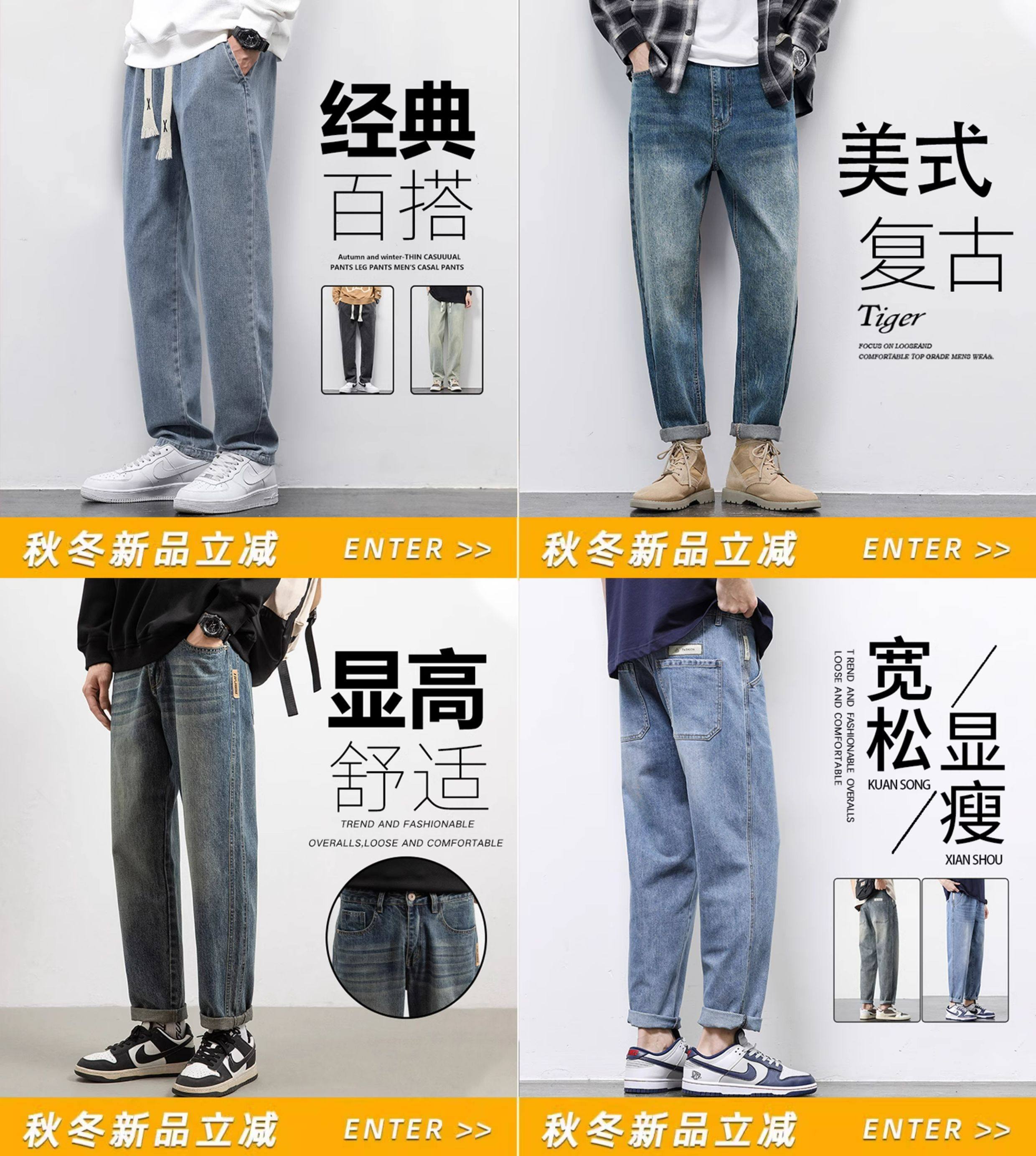秋冬季加絨牛仔褲男士潮牌直筒寬鬆濶腿水洗工裝2025新款男生長褲