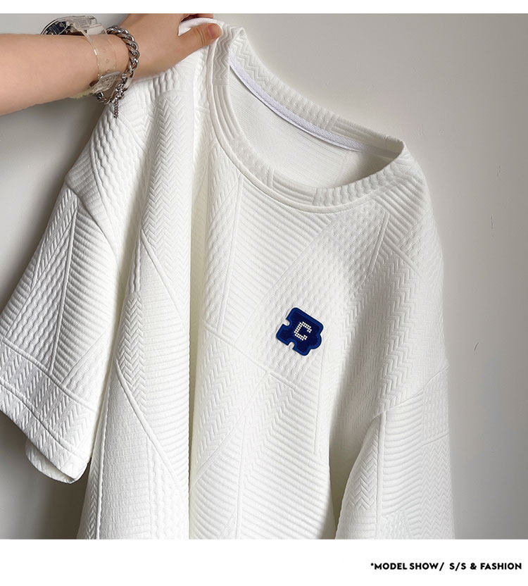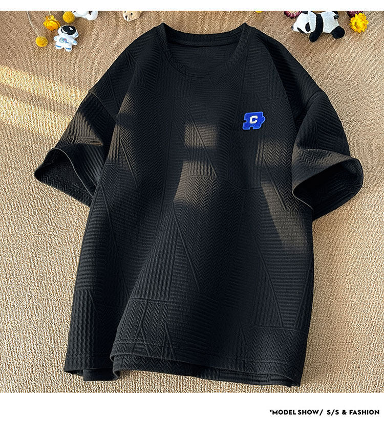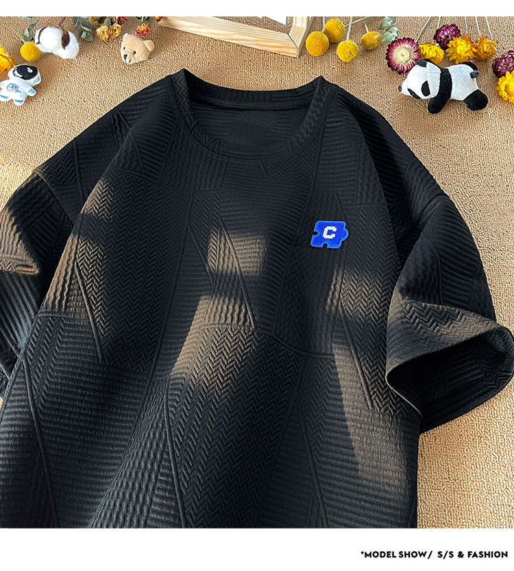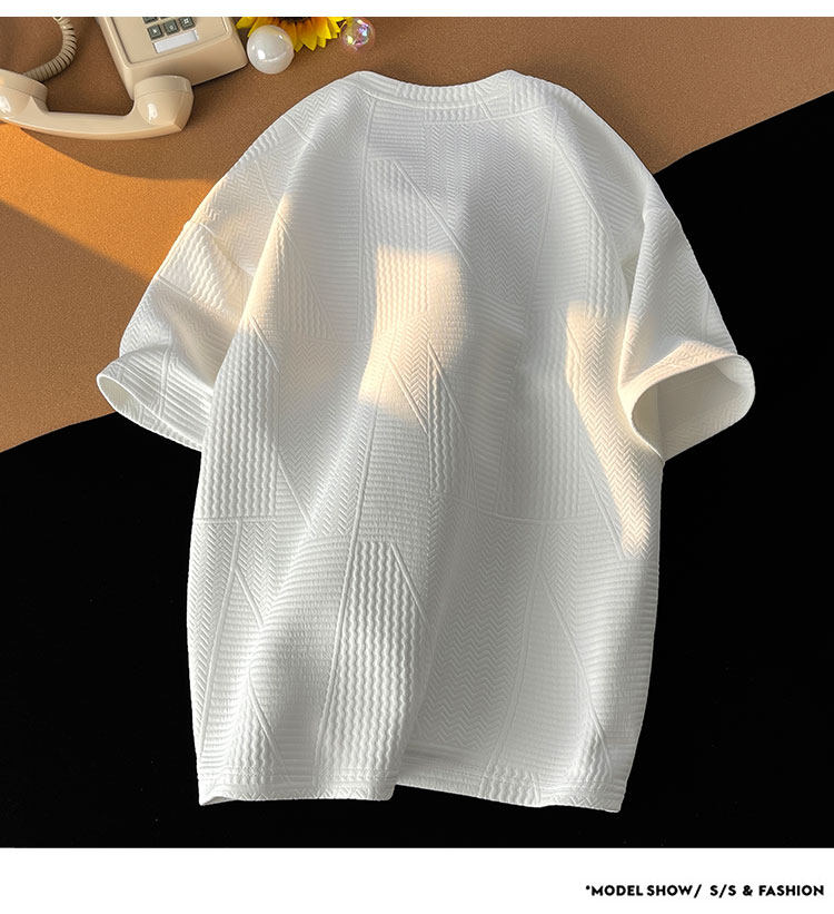 美式潮牌重磅350g高克重圓領短袖T恤男加大碼寬鬆胖子華夫格體恤