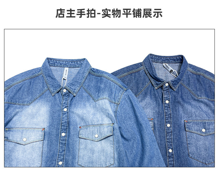 美式復古重工水洗牛仔襯衫春秋新款街頭潮牌男裝流行工裝長袖襯衣