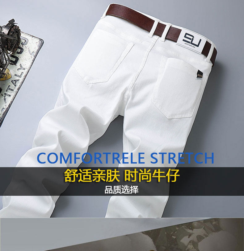 2025新款白色牛仔褲男款直筒寬鬆彈力秋季秋冬高級休閒褲子男士