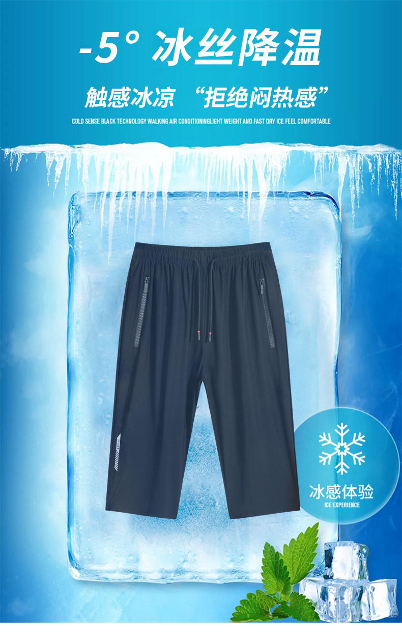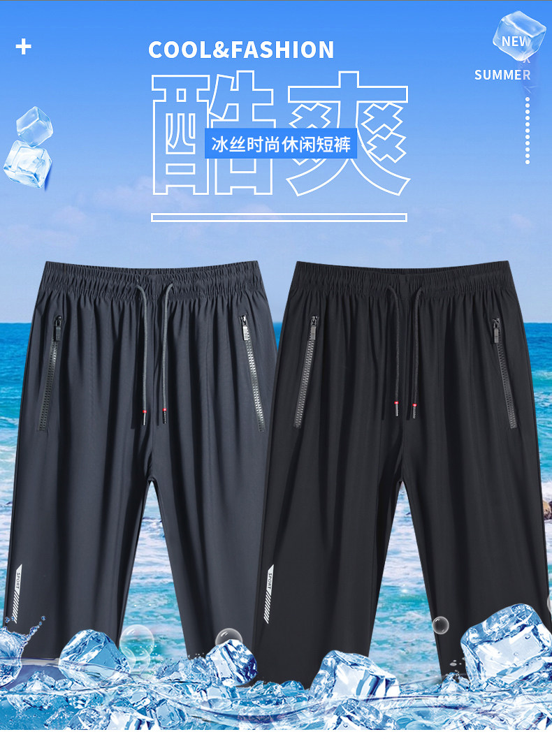 冰絲七分褲男2025新款夏季薄款寬鬆速乾過膝中褲運動休閒7分短褲