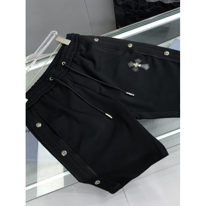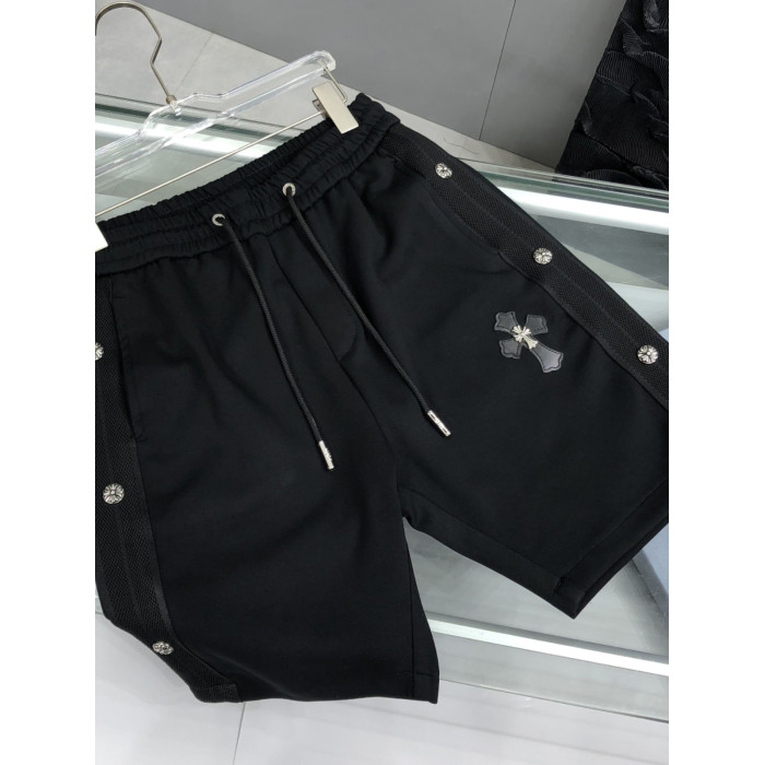 2025夏季高級拼接金屬十字架運動休閒短褲男寬鬆歐貨沙灘五分中褲