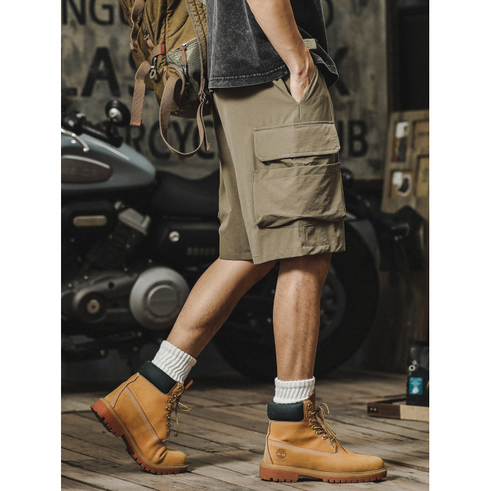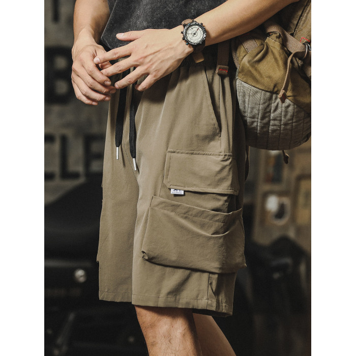 冰絲工裝短褲男夏季薄款美式潮牌直筒寬鬆運動透氣速乾休閒五分褲