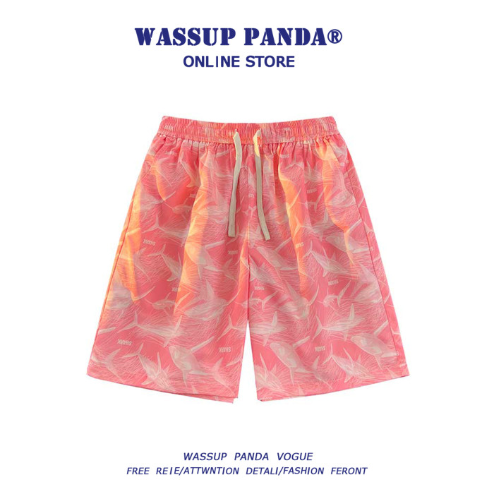 WASSUP PANDA冰絲沙灘短褲男夏季潮牌寬鬆直筒休閒速乾情侶五分褲