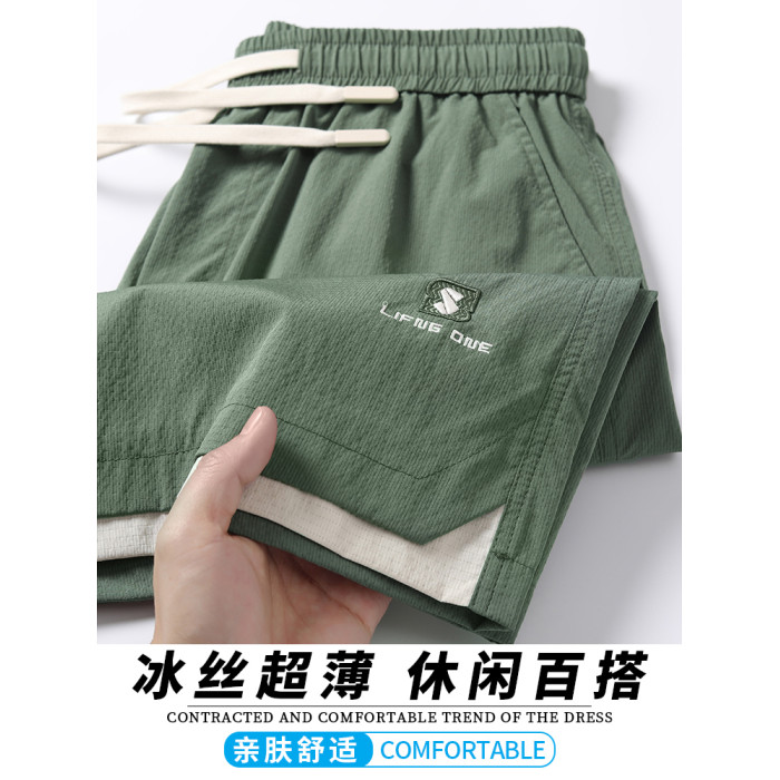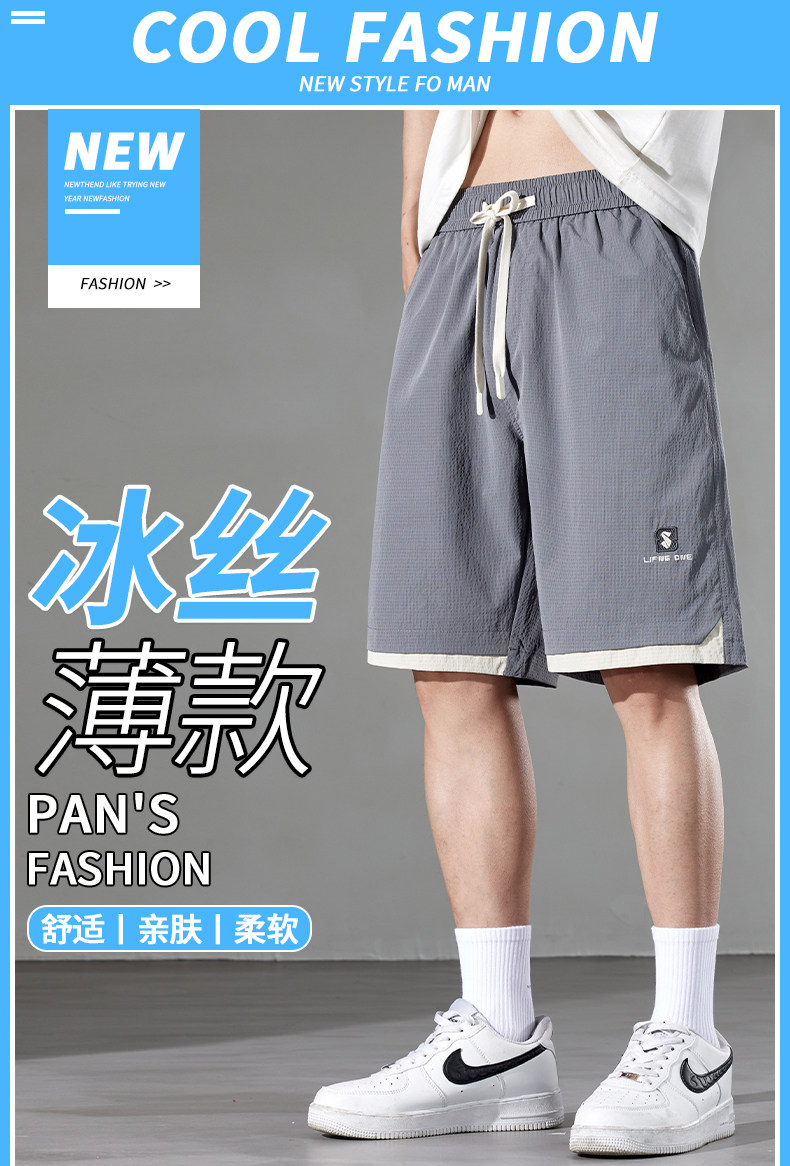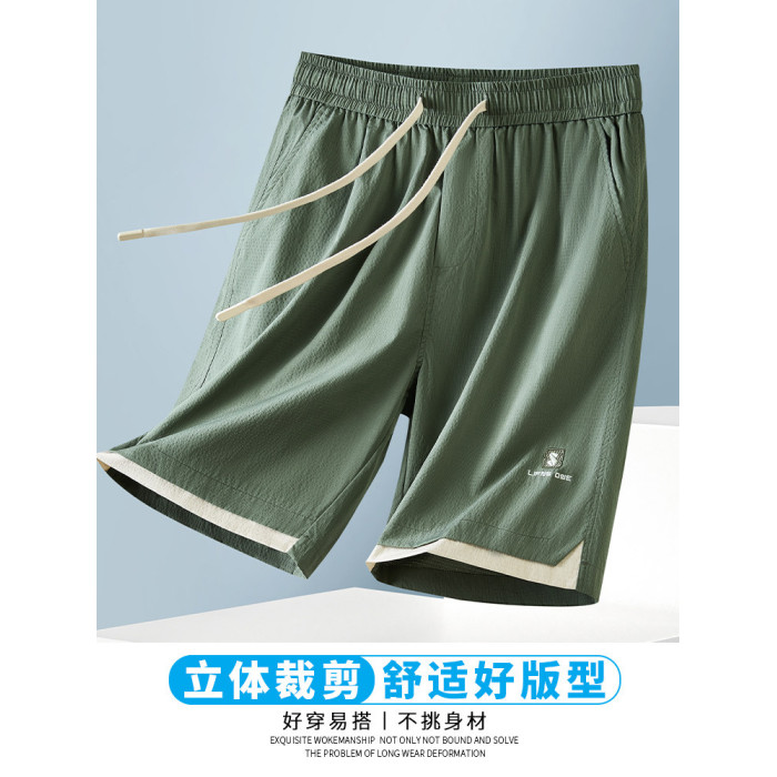 男士短褲夏季2025新款潮牌外穿休閒運動冰絲薄款五分褲子男夏天