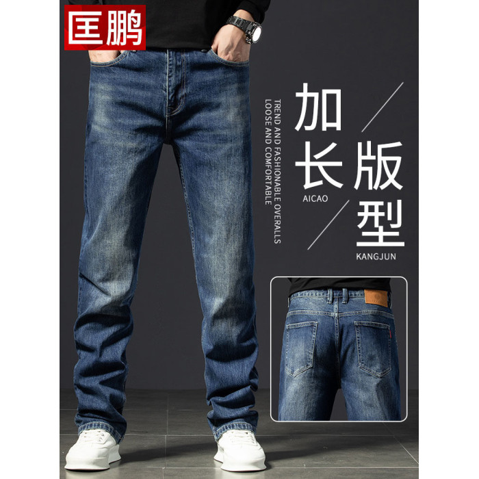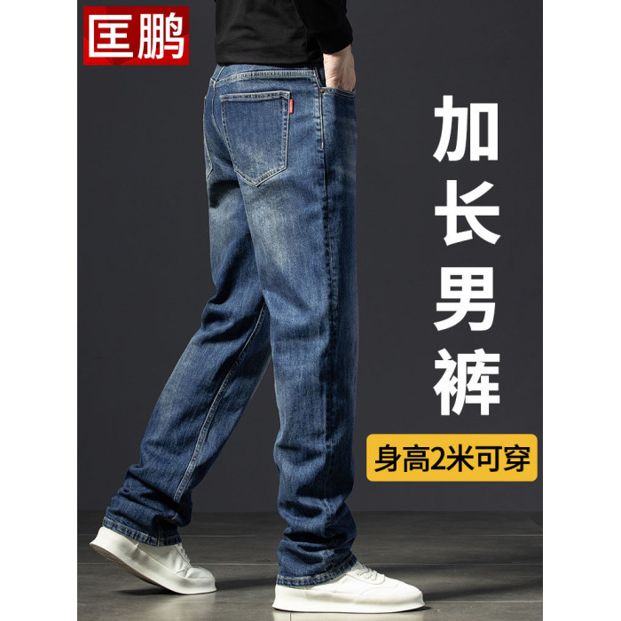 高品質純棉加長男士牛仔褲彈力直筒115cm秋冬新款190高個子長褲子