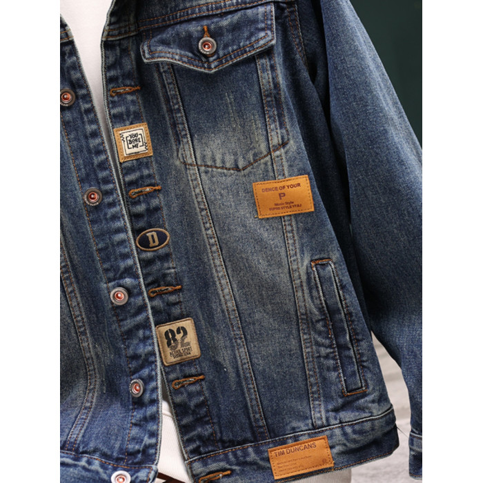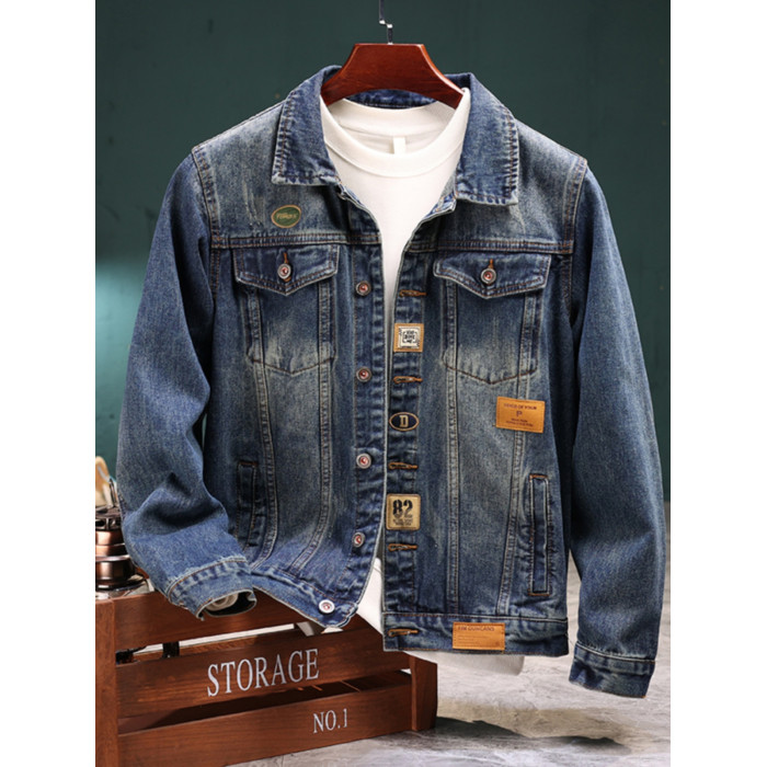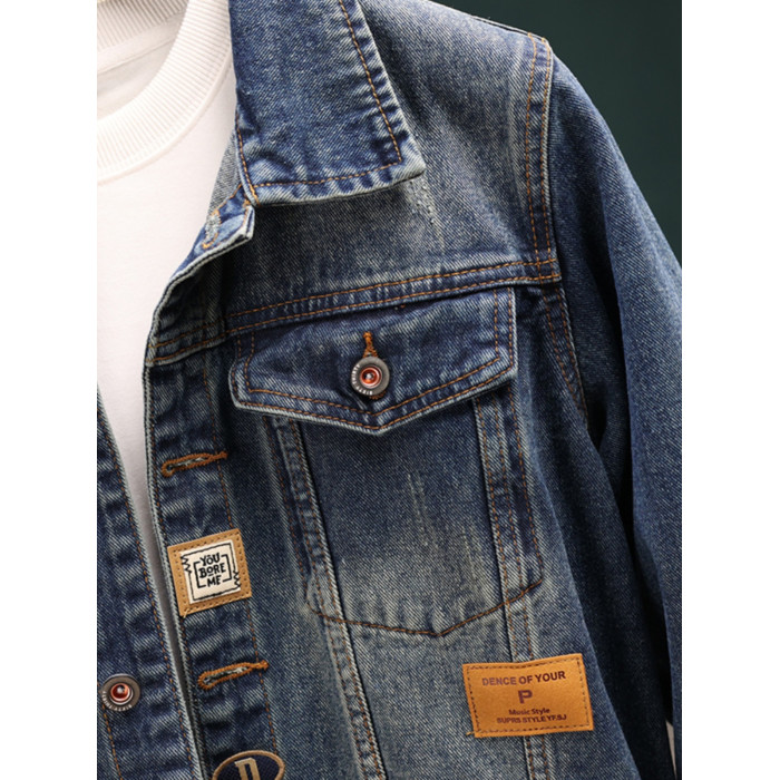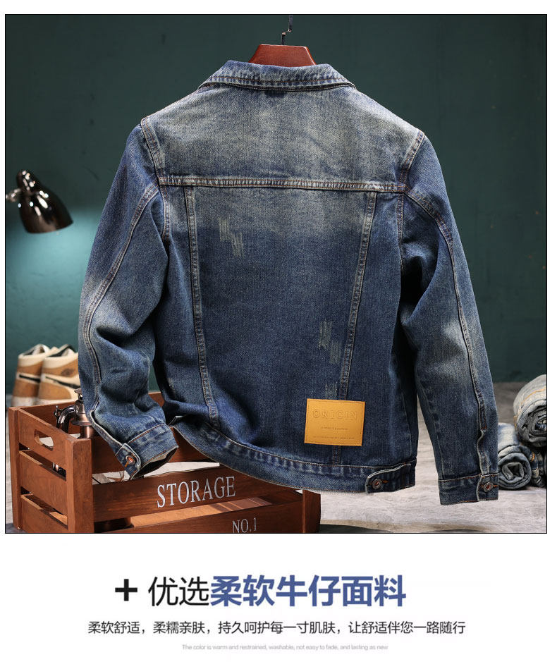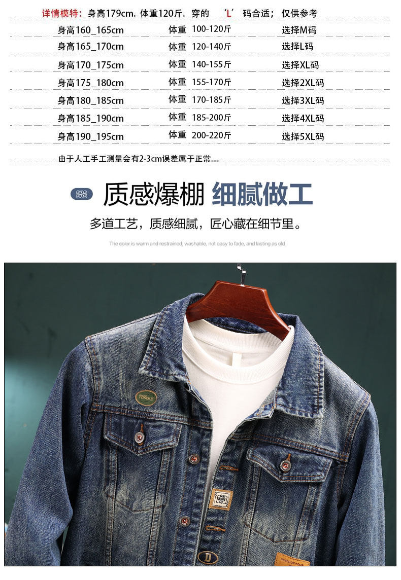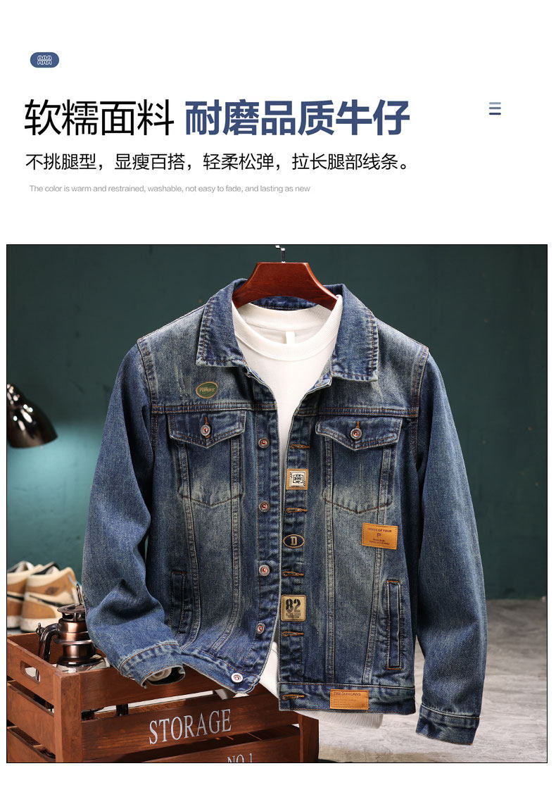 高級牛仔外套男士春季繙領復古夾克2025秋冬新款美式修身上衣