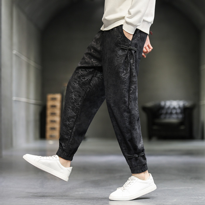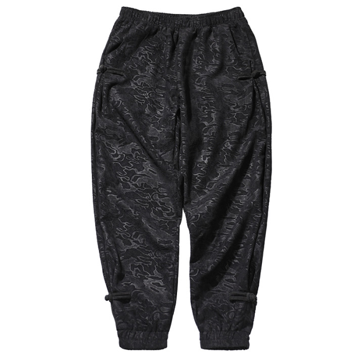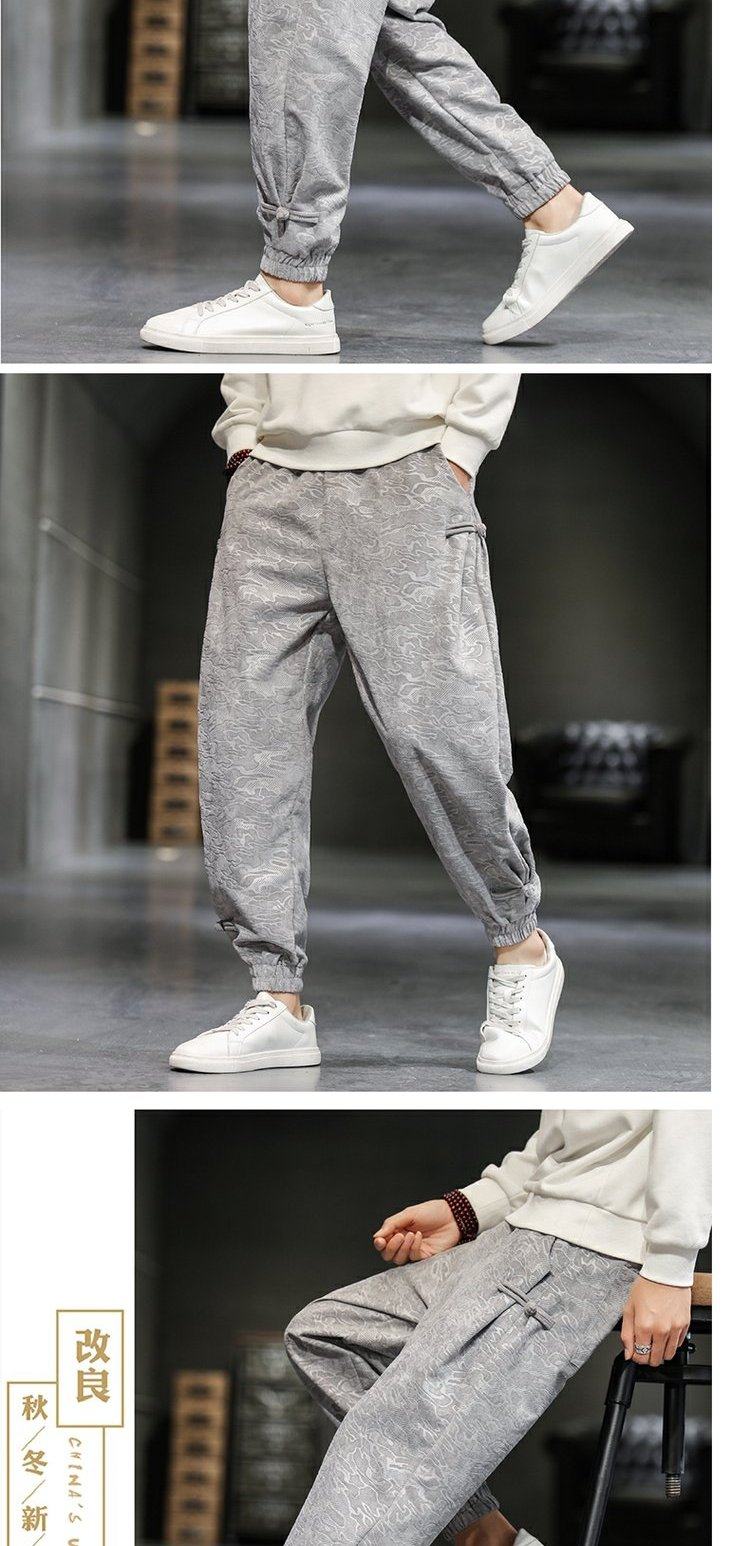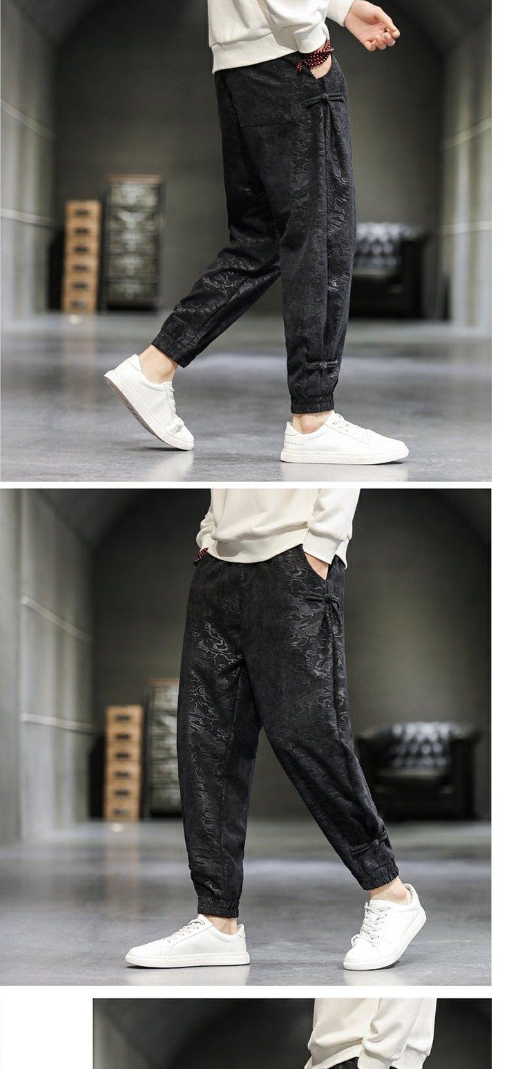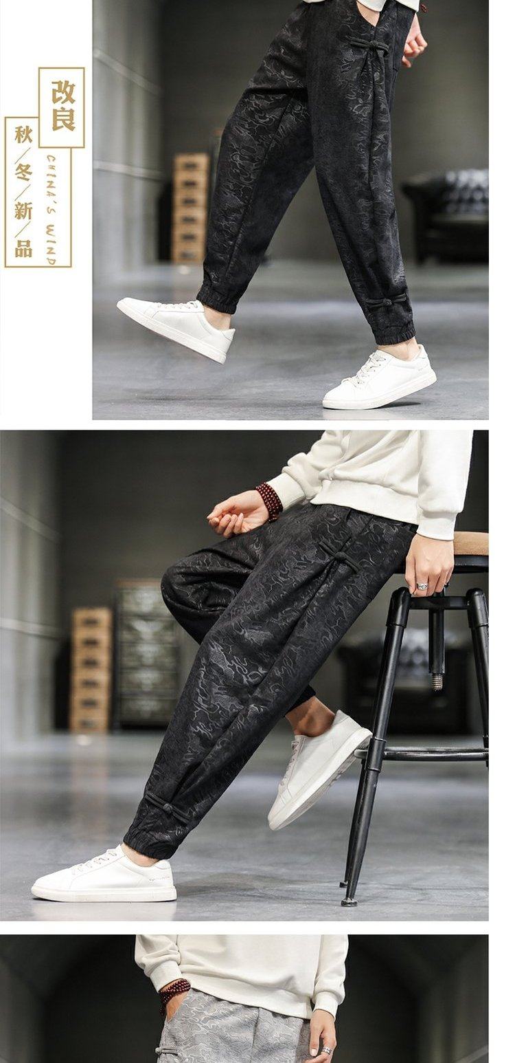 風盤釦壓花褲子男春季唐裝民族風束腳休閒長褲哈倫寬鬆燈籠褲