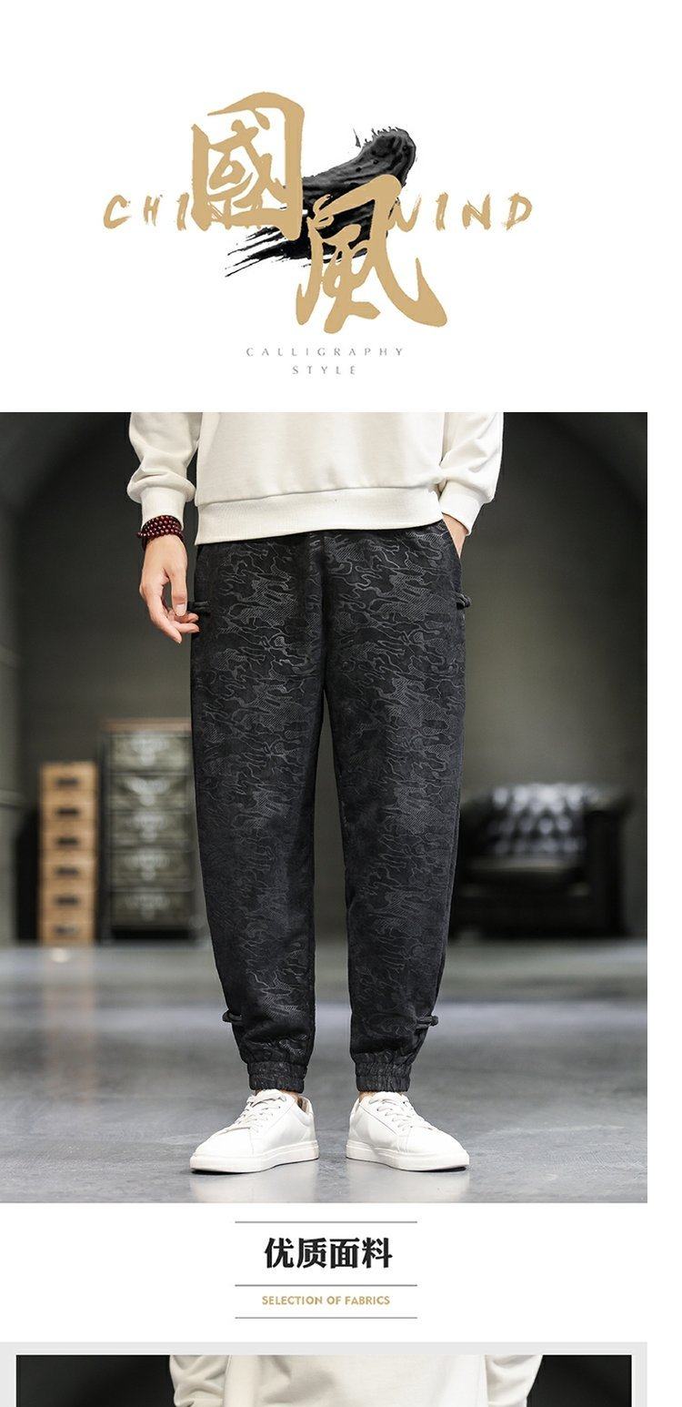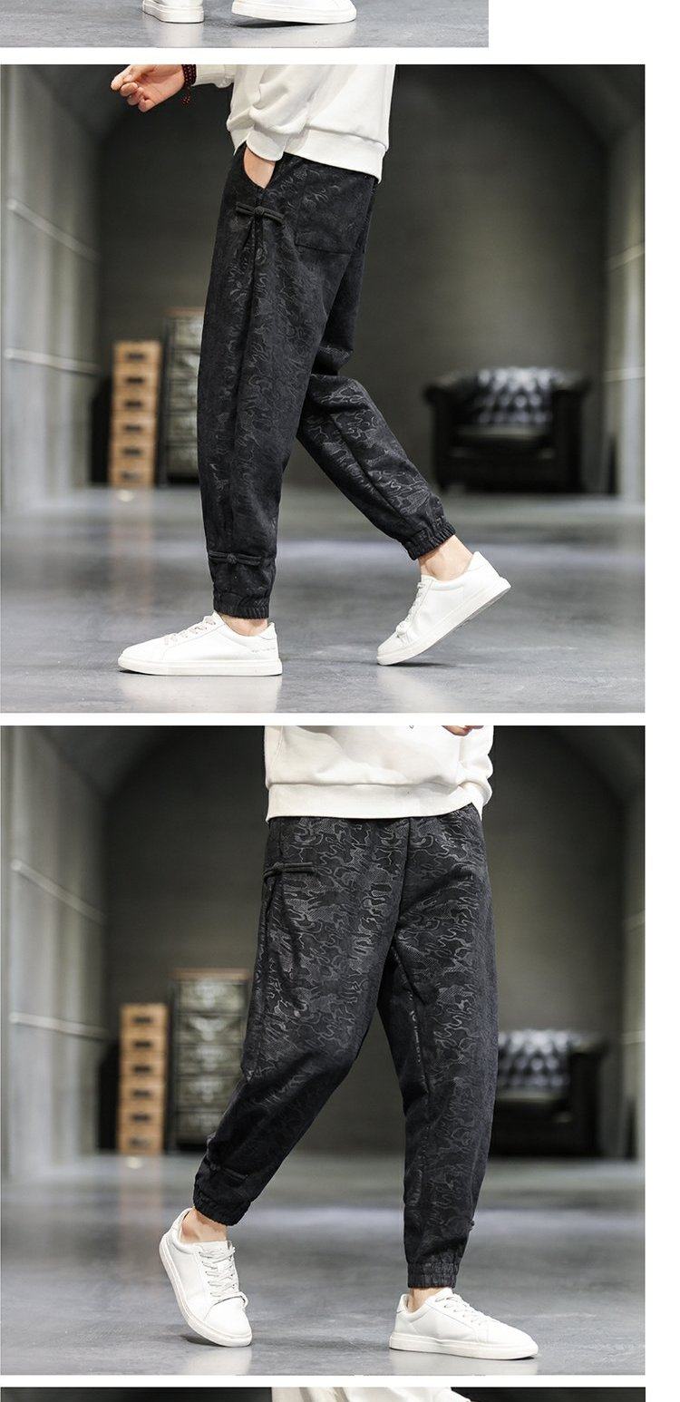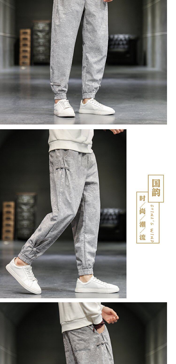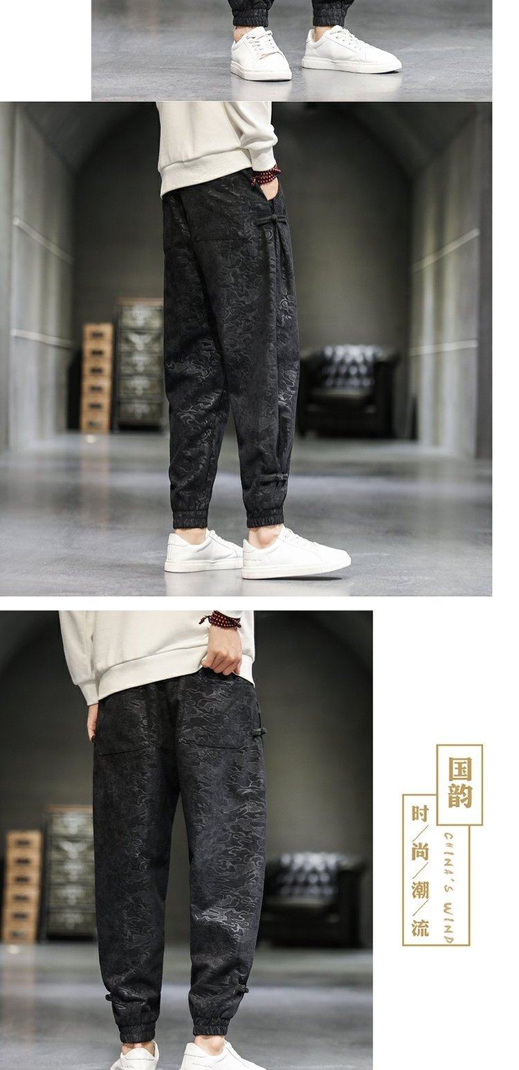 風盤釦壓花褲子男春季唐裝民族風束腳休閒長褲哈倫寬鬆燈籠褲