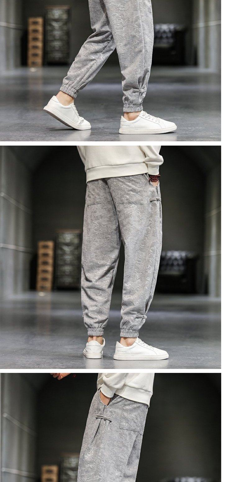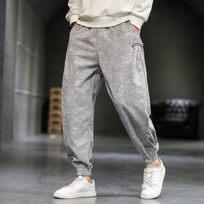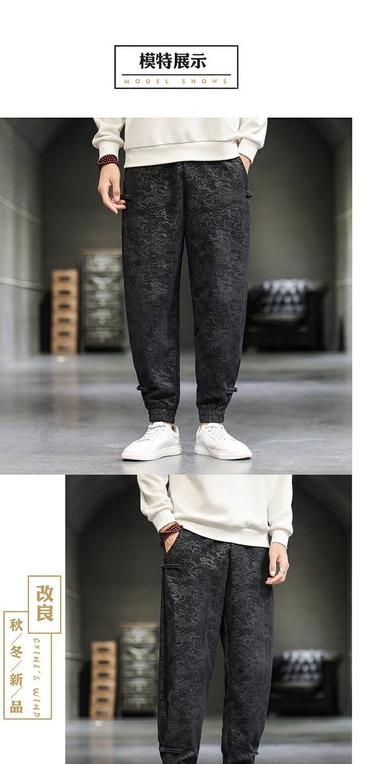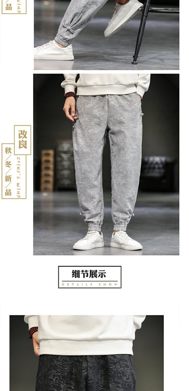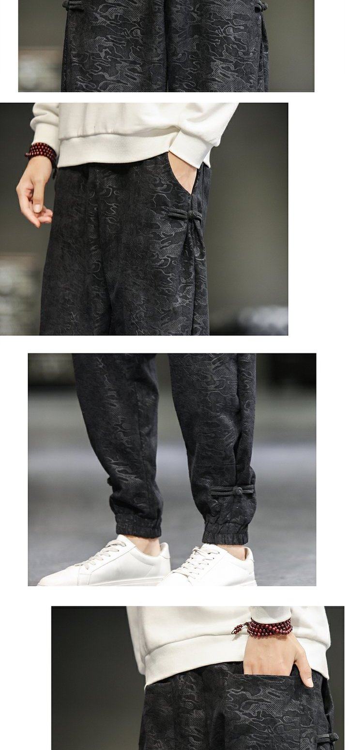 風盤釦壓花褲子男春季唐裝民族風束腳休閒長褲哈倫寬鬆燈籠褲