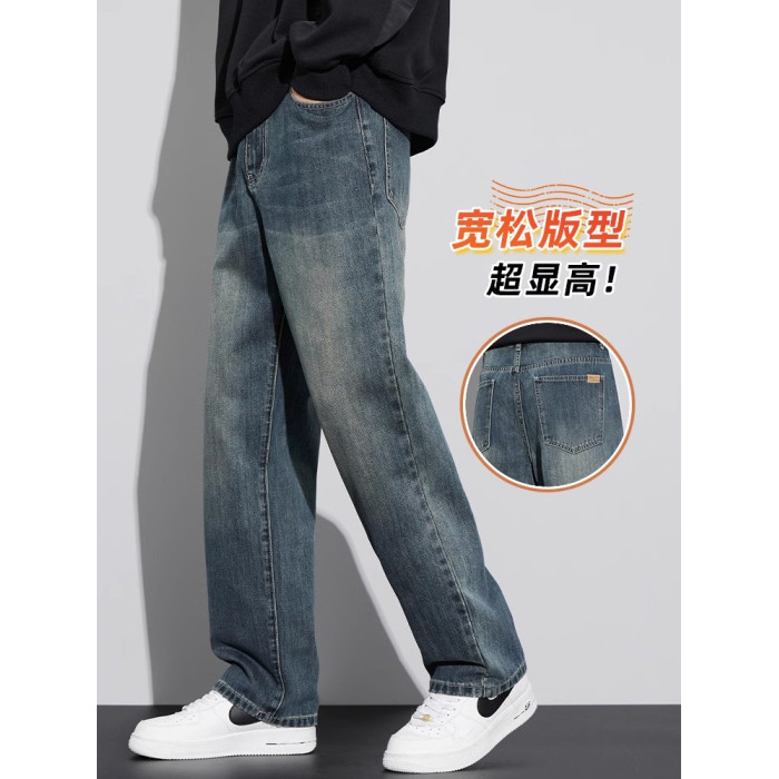 加絨加厚牛仔褲男士秋冬季寬鬆直筒男生長褲2026新款美式復古褲子