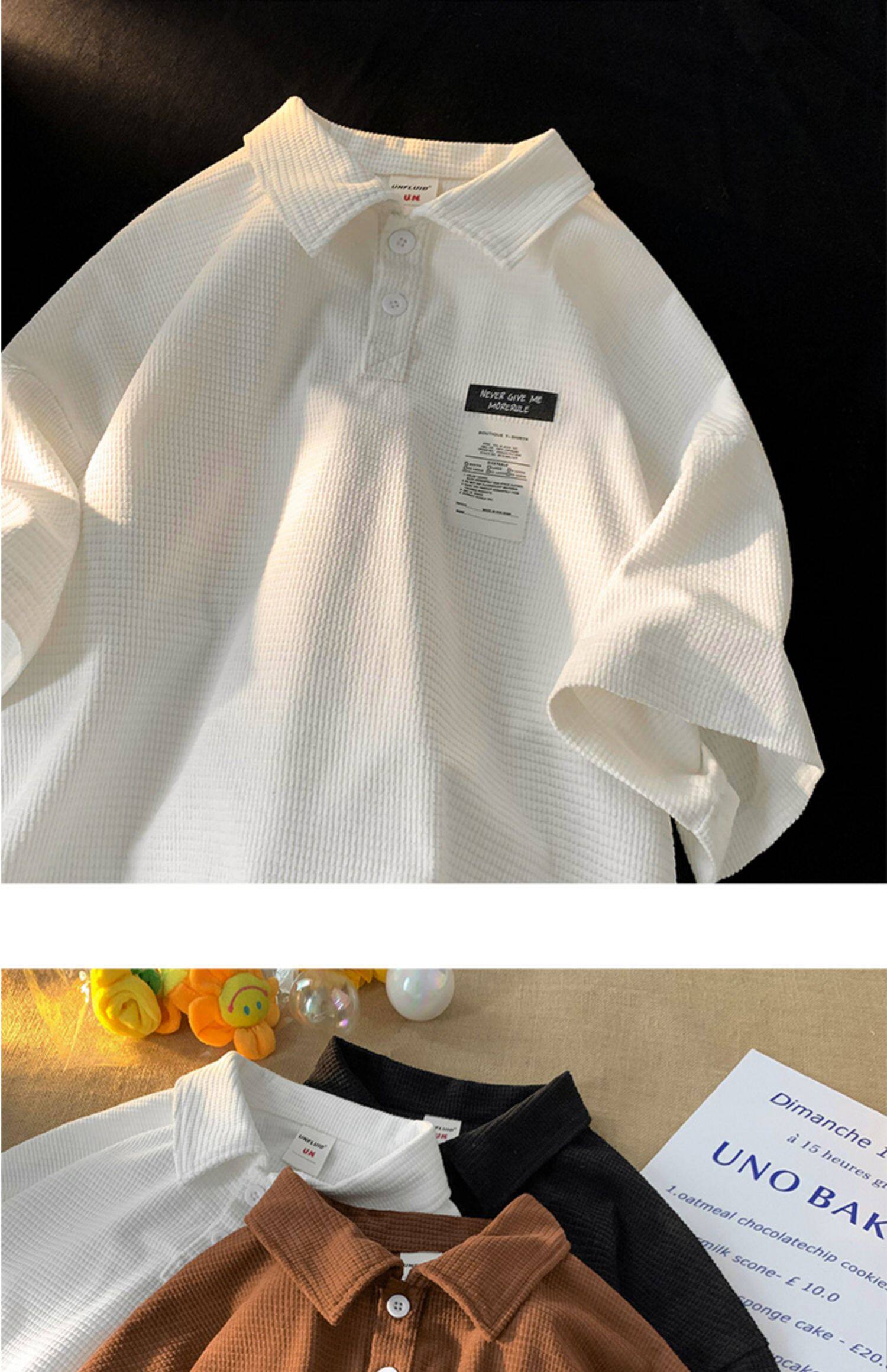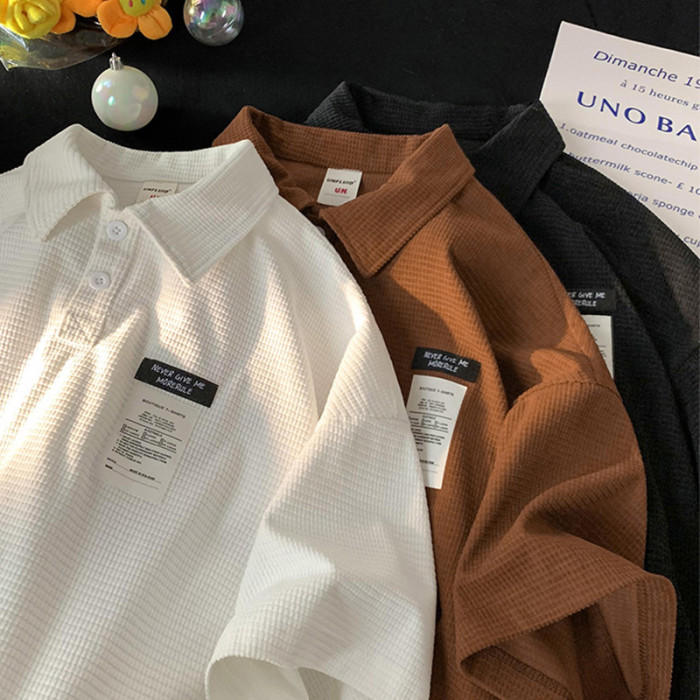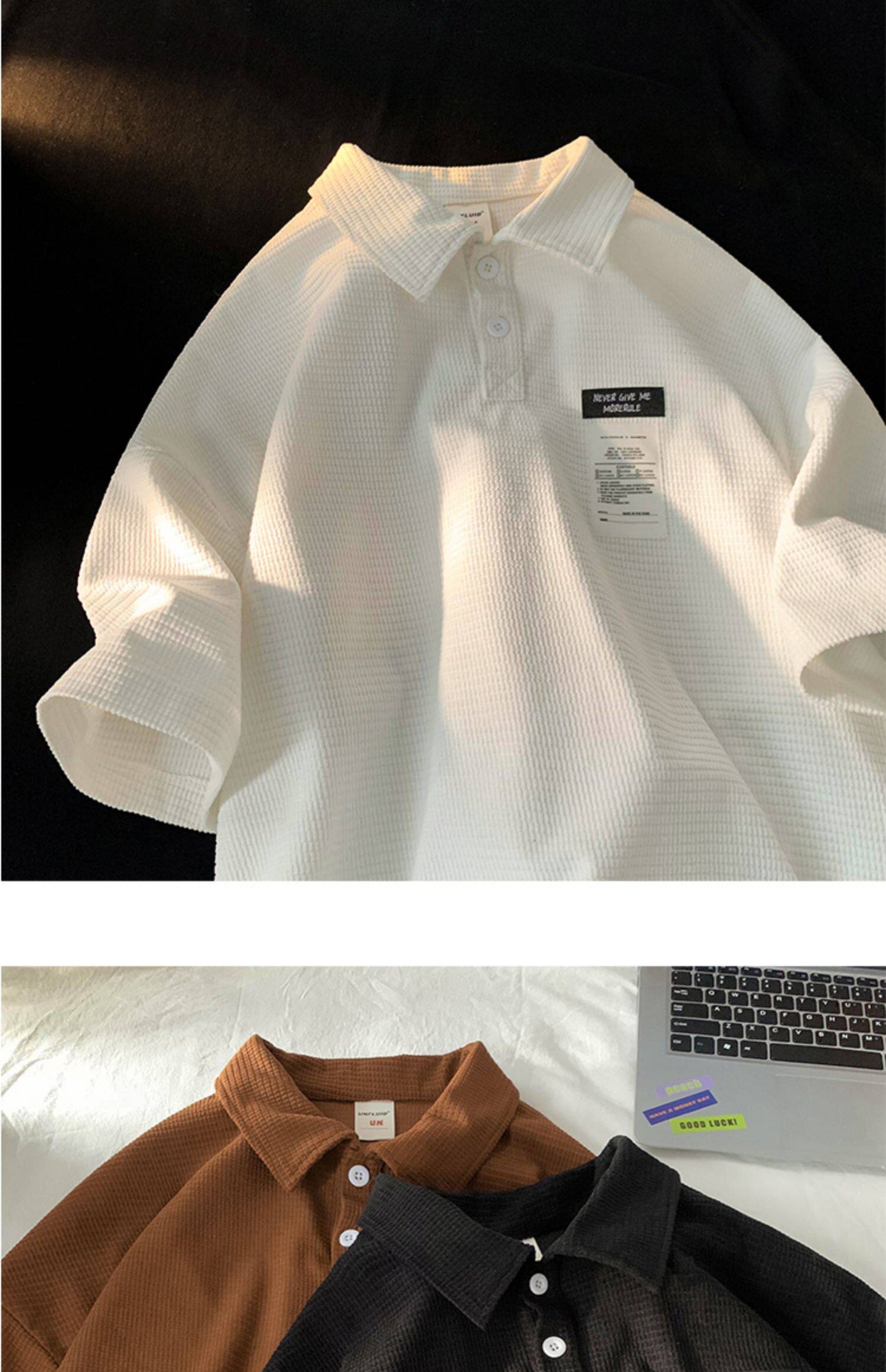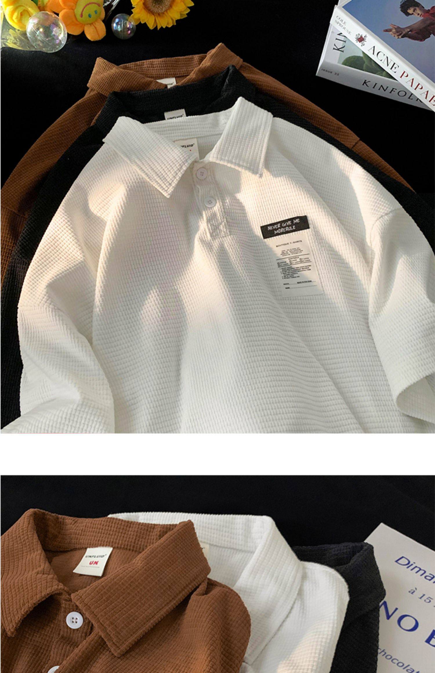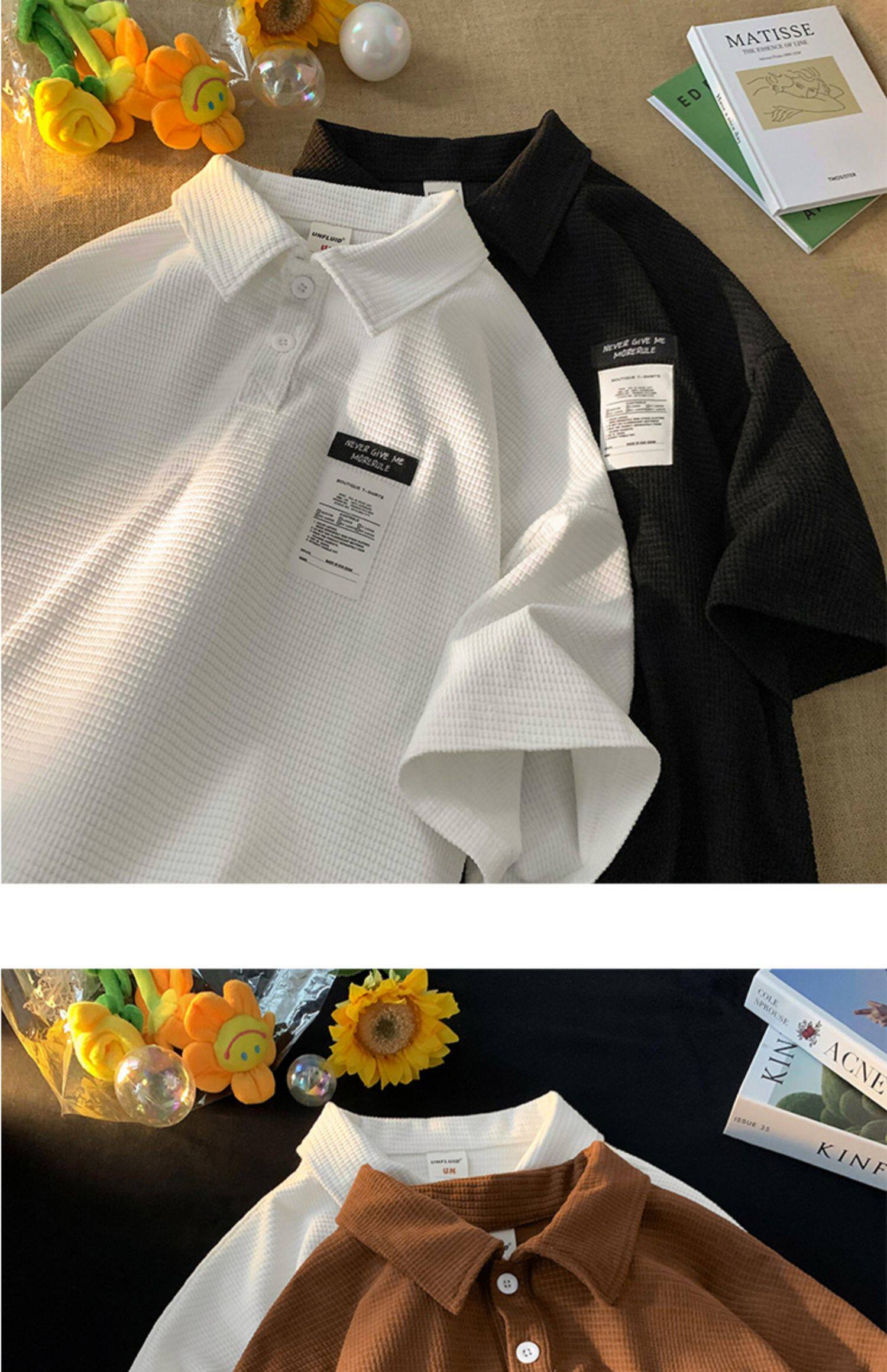 華夫格短袖polo衫男夏季潮牌vintage美式繙領t恤oversize半袖