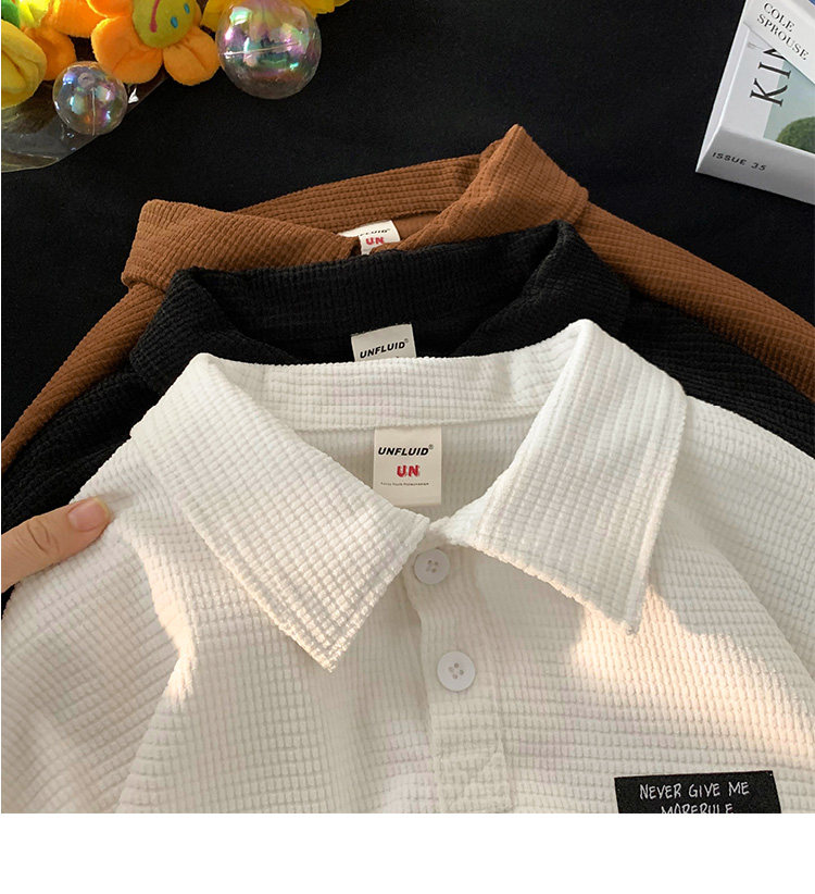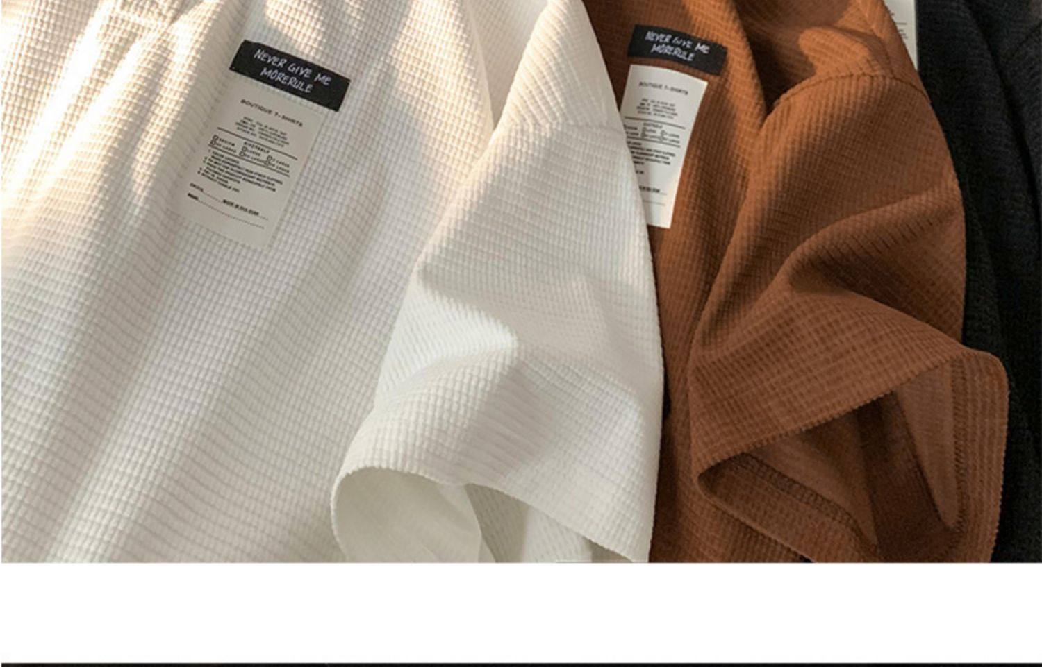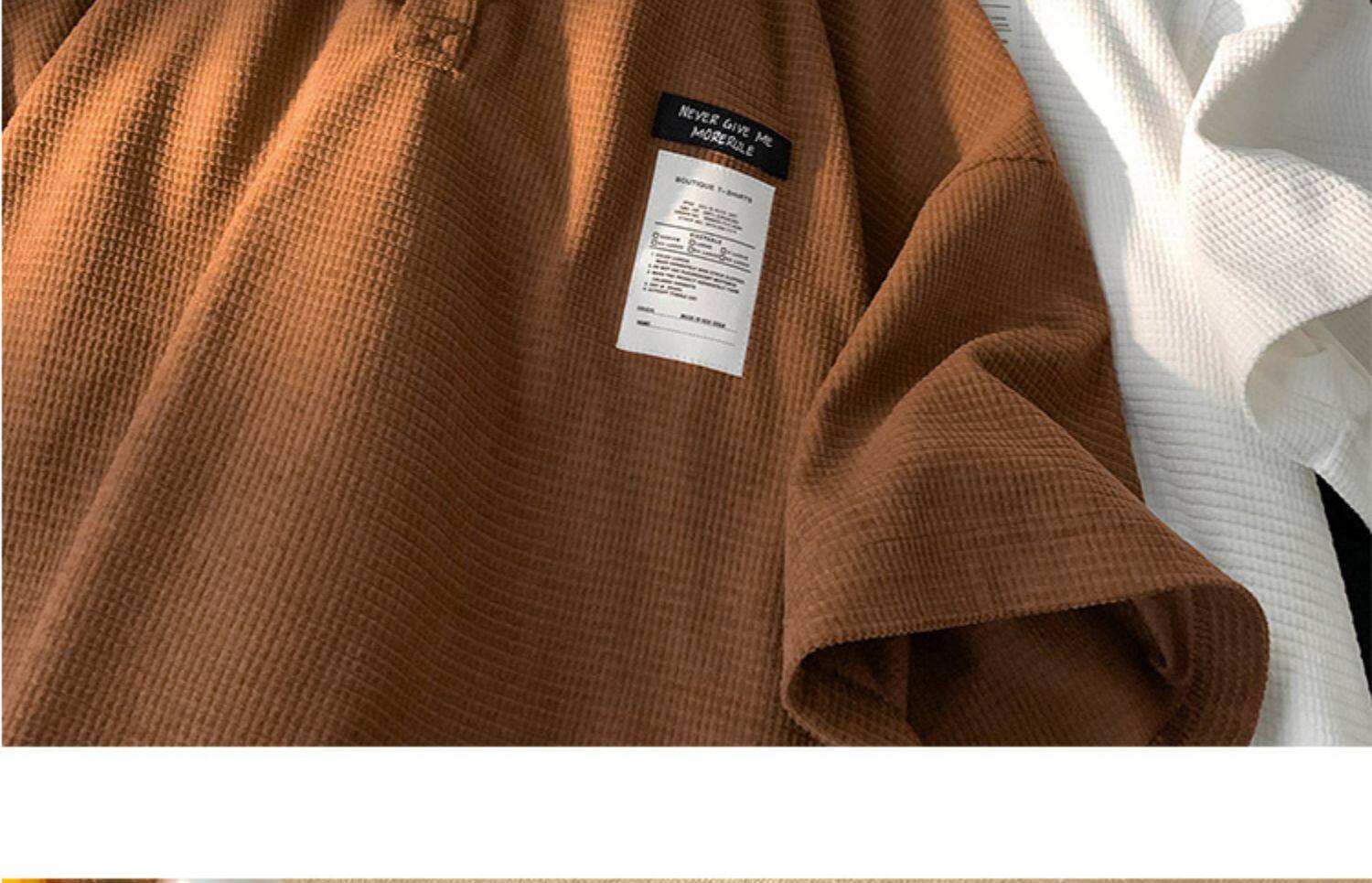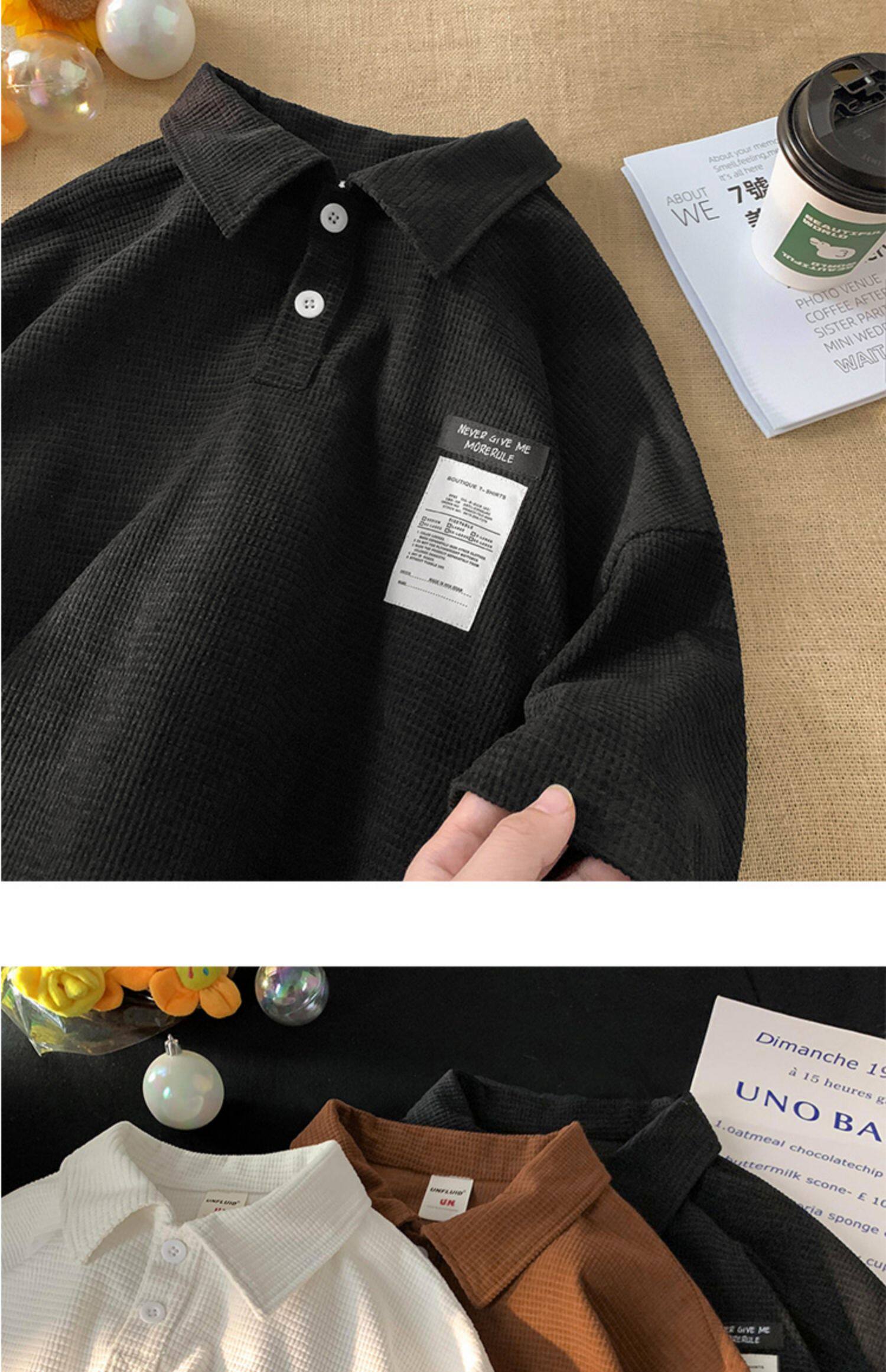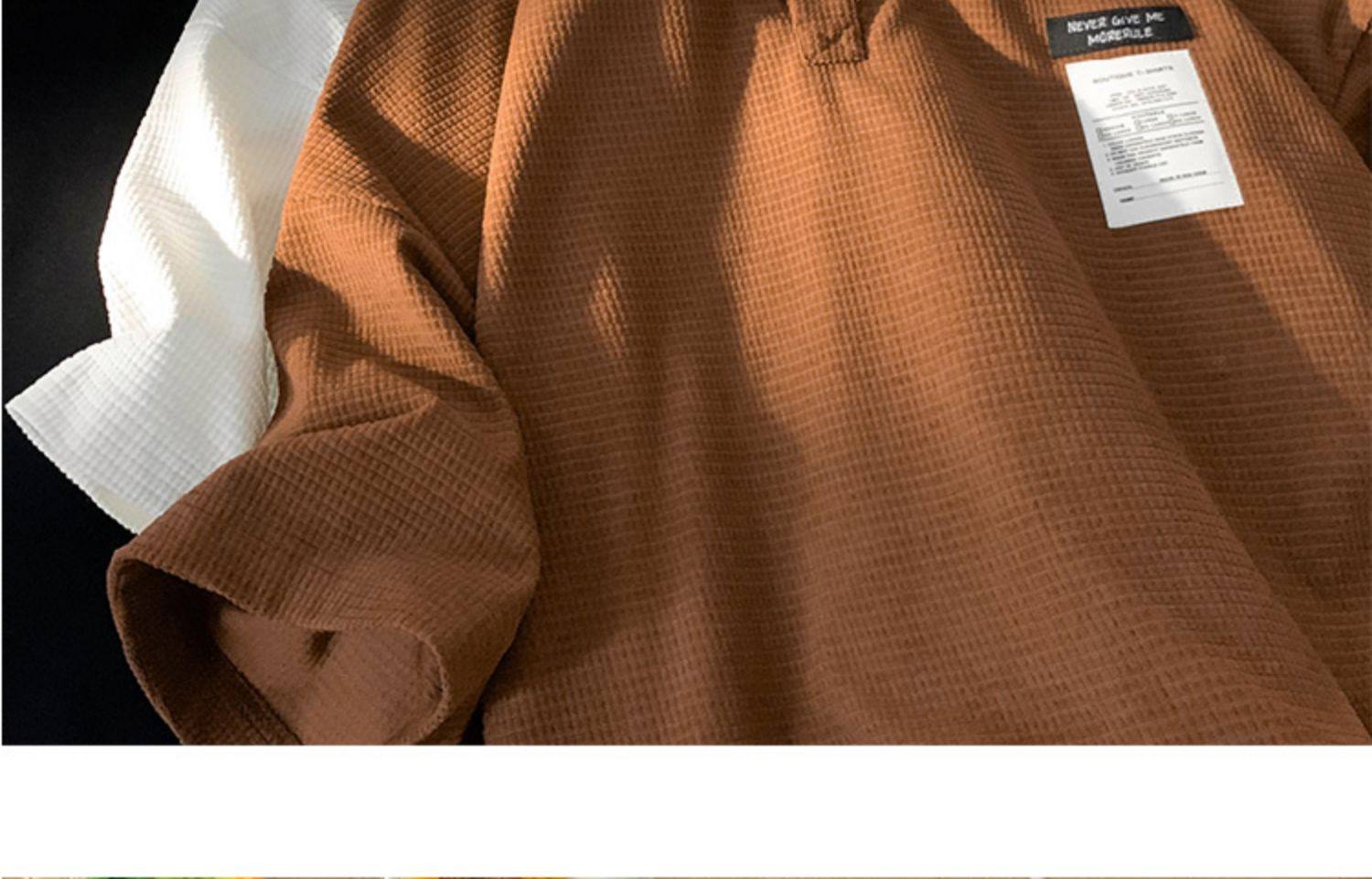 華夫格短袖polo衫男夏季潮牌vintage美式繙領t恤oversize半袖