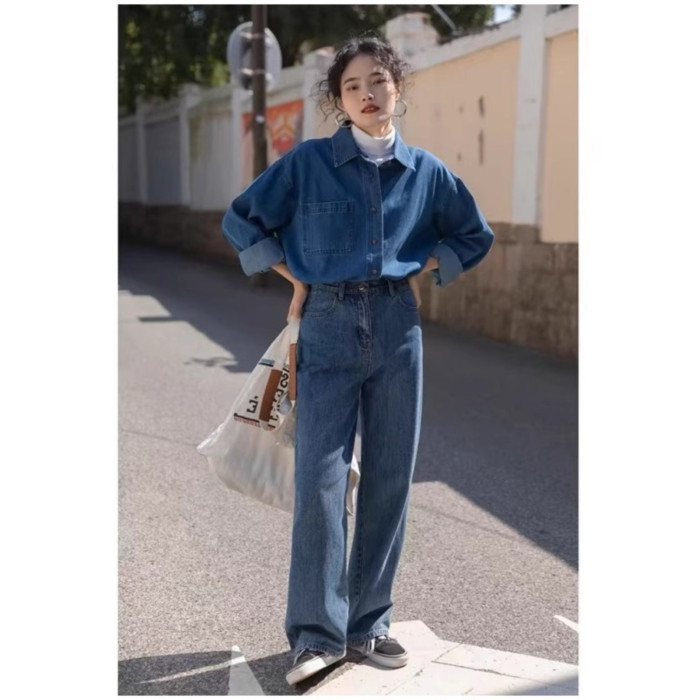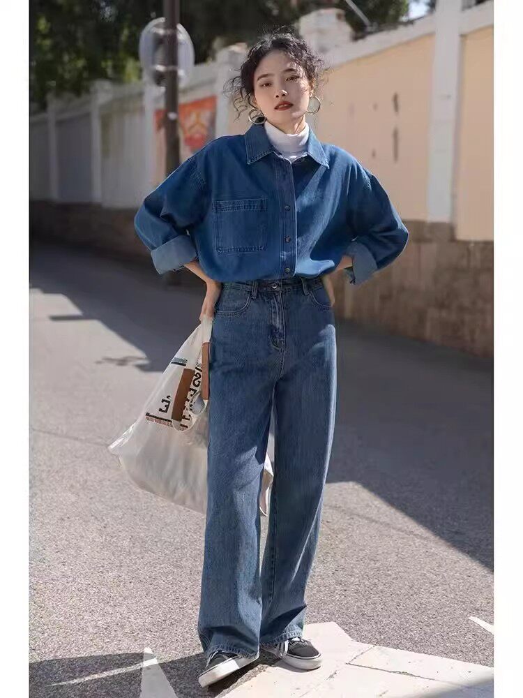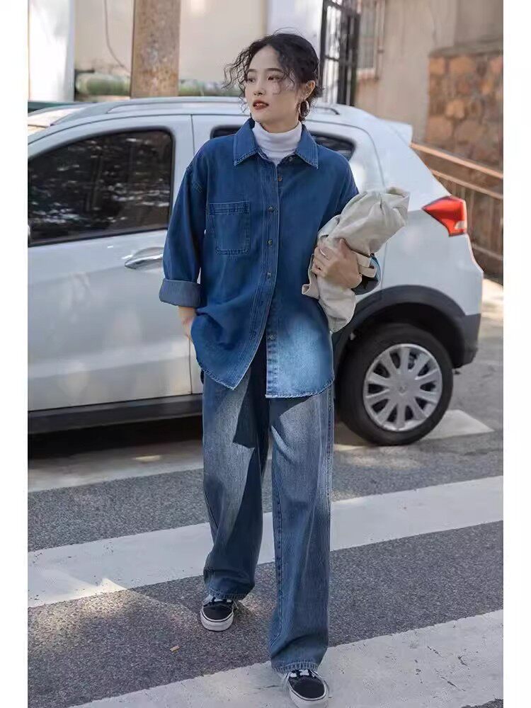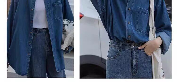 特大碼300斤牛仔襯衫男女裝秋冬設計感曡穿內搭寬鬆休閒外套上衣2