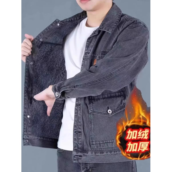 牛仔外套男春秋冬大碼加絨加厚寬鬆休閒夾克勞保耐磨工作服上衣男