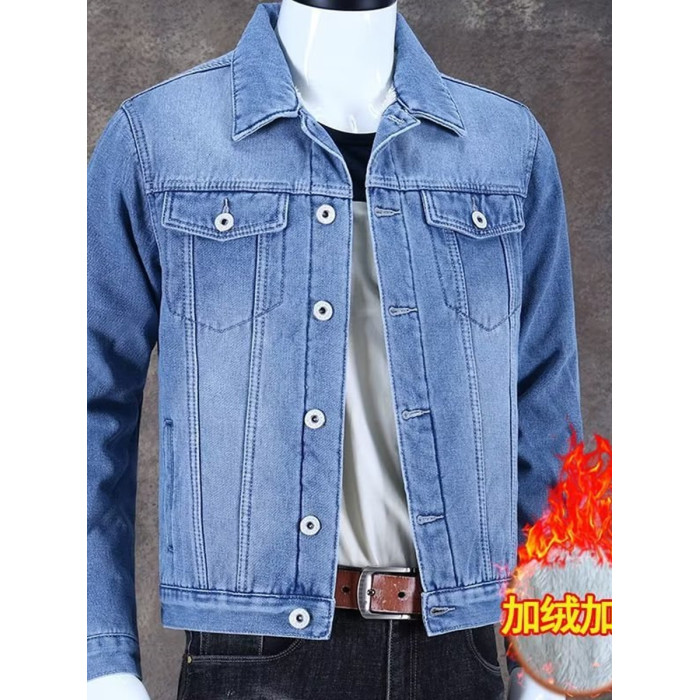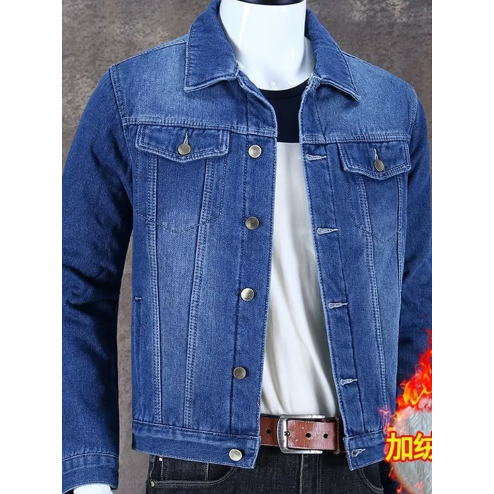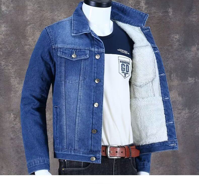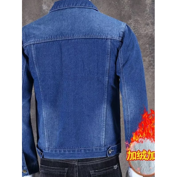 秋冬加絨牛仔外套男潮牌百搭休閒工裝夾克外穿耐磨加厚工作服上衣