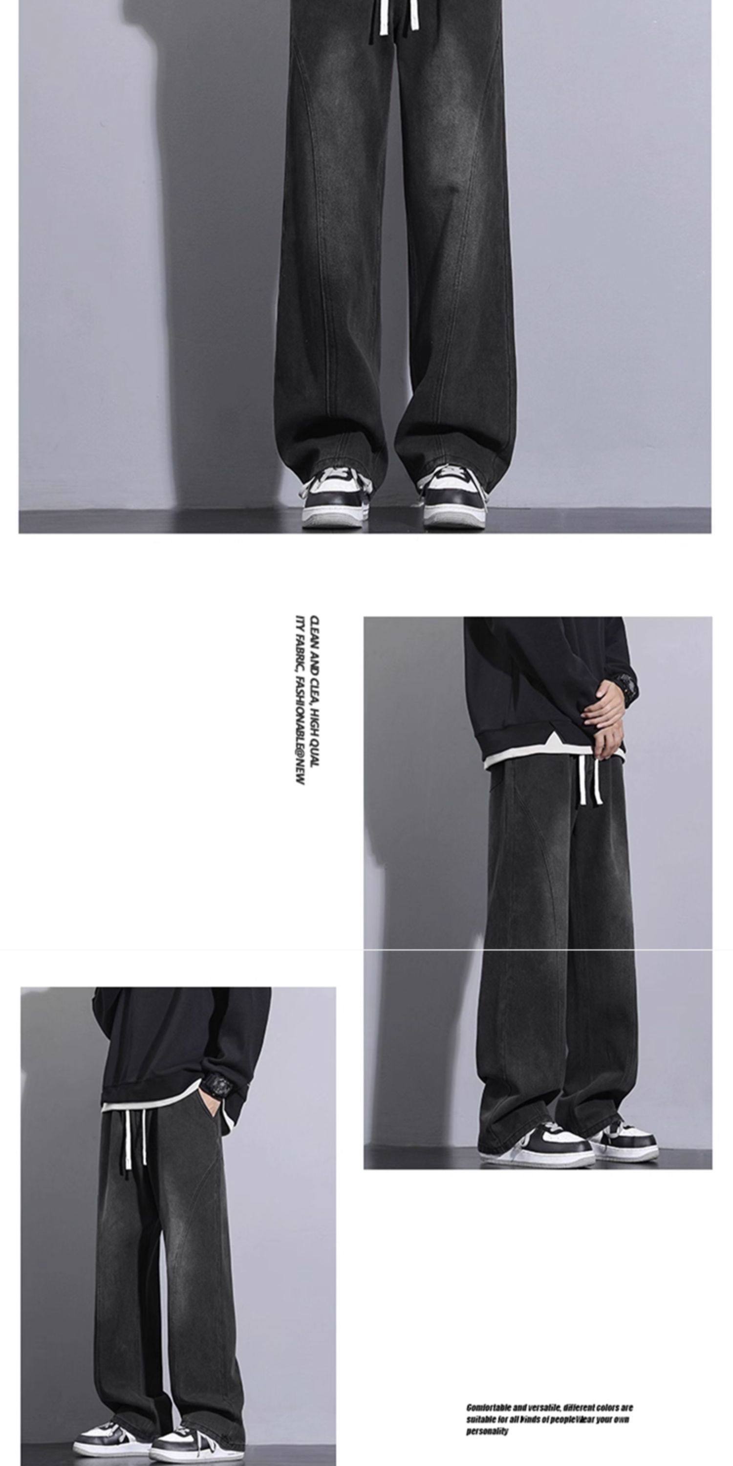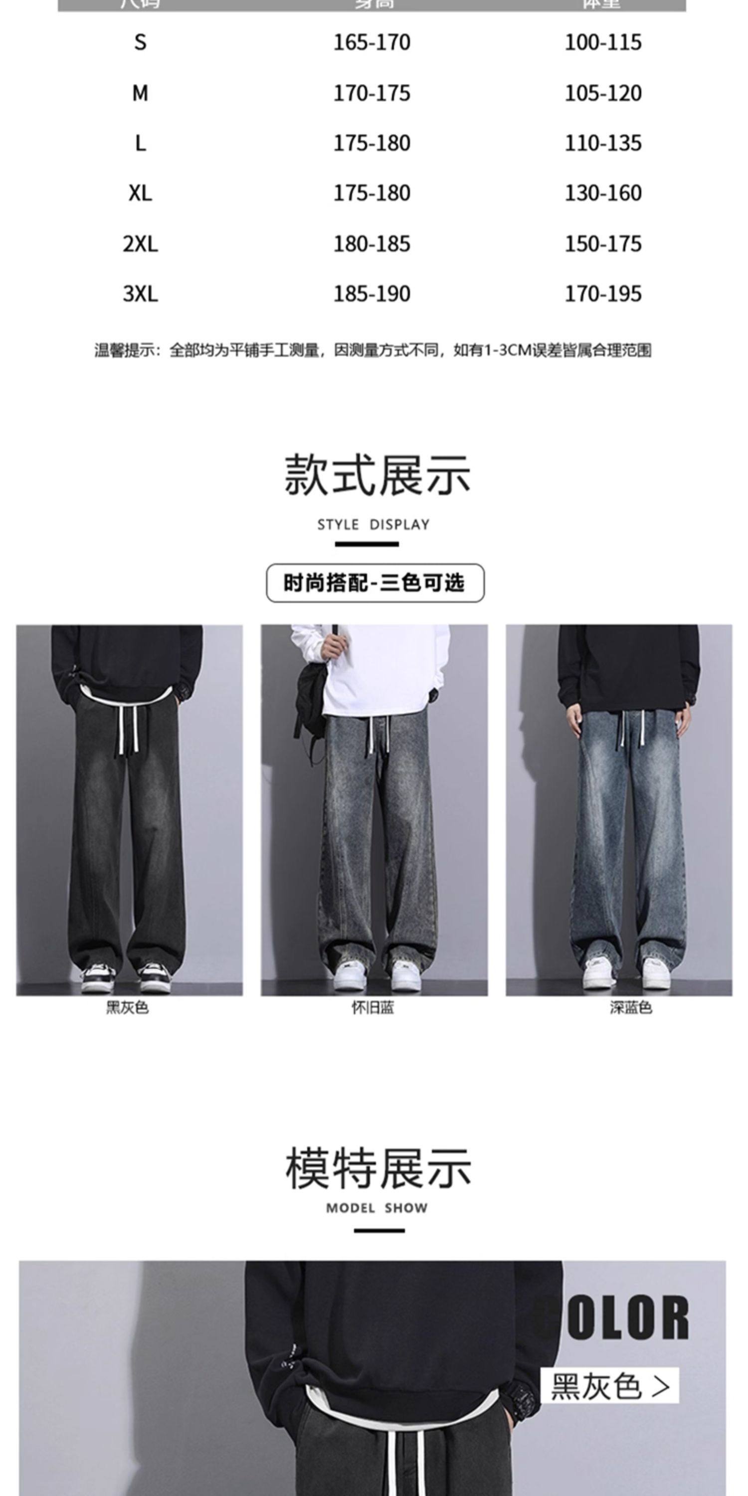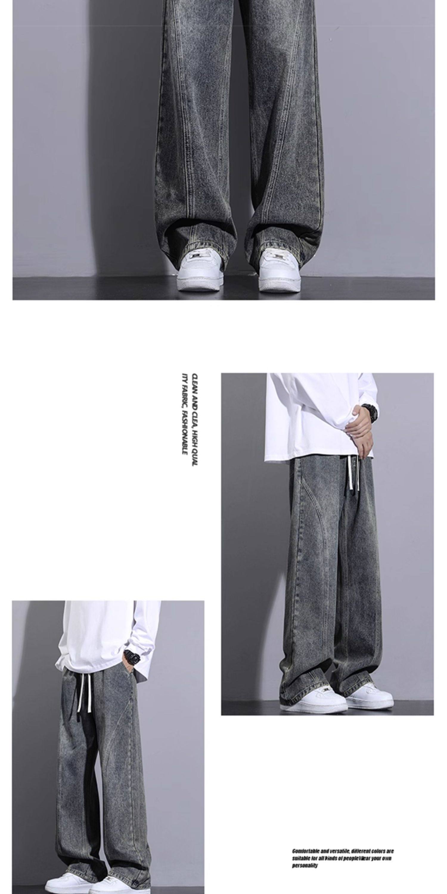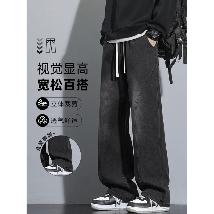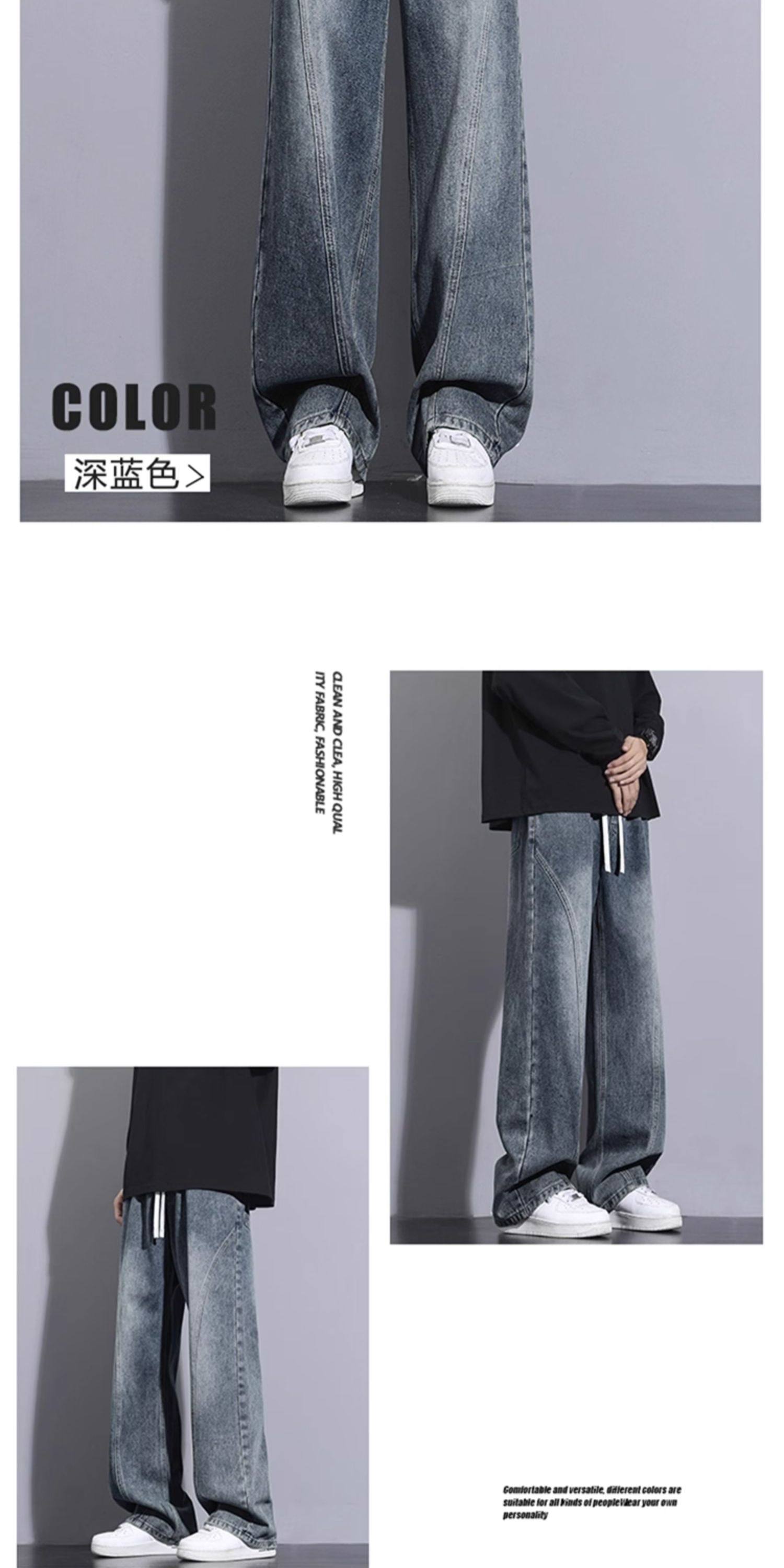 2025新款牛仔褲男秋冬季復古寬鬆直筒休閒褲美式潮牌高街彎刀褲子