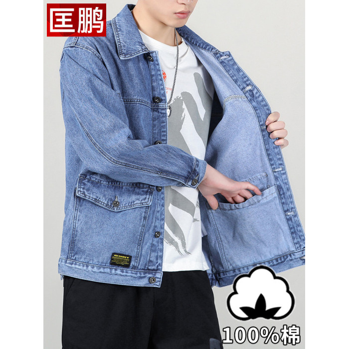 高級純棉牛仔夾克男美式工裝休閒襯衫上衣2025秋季新款夾克外套男