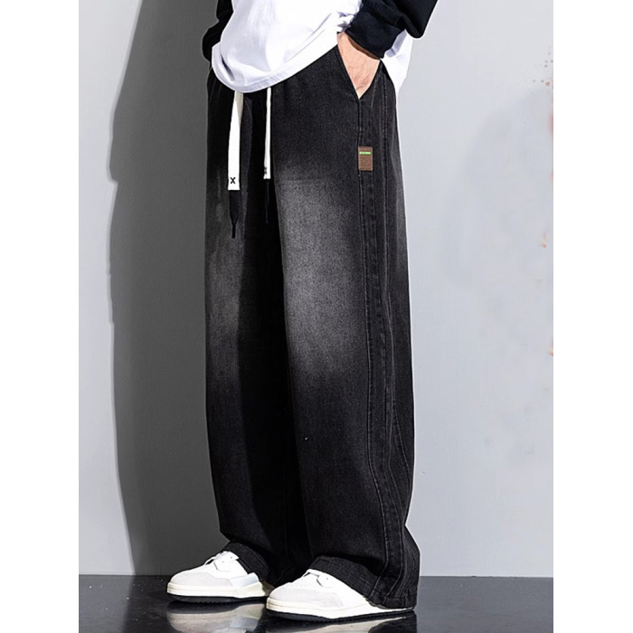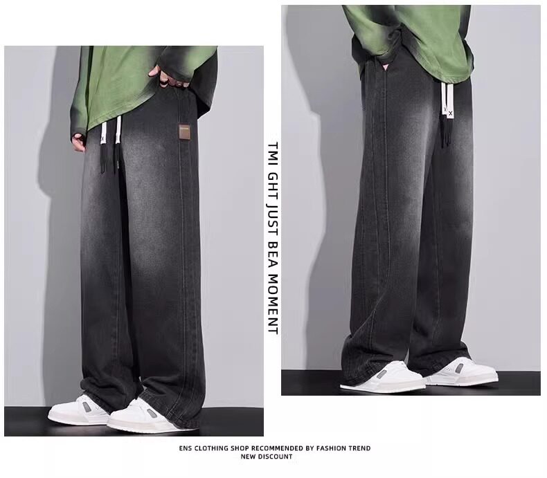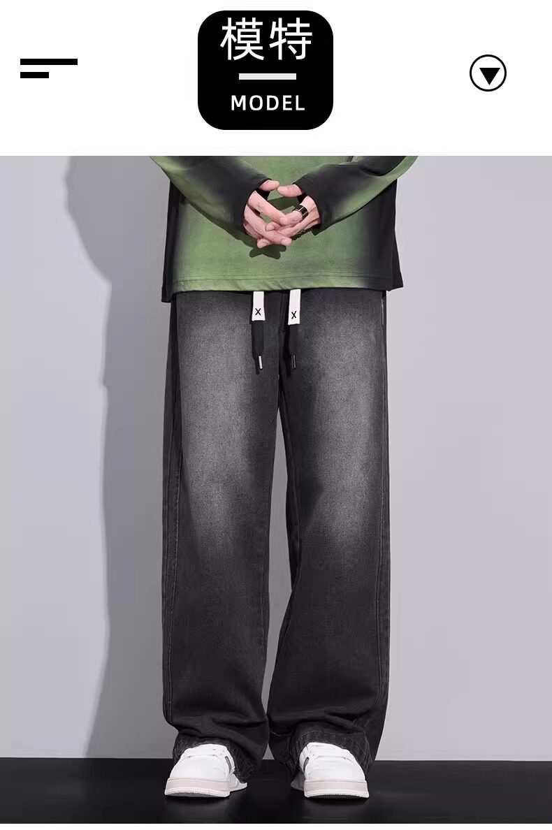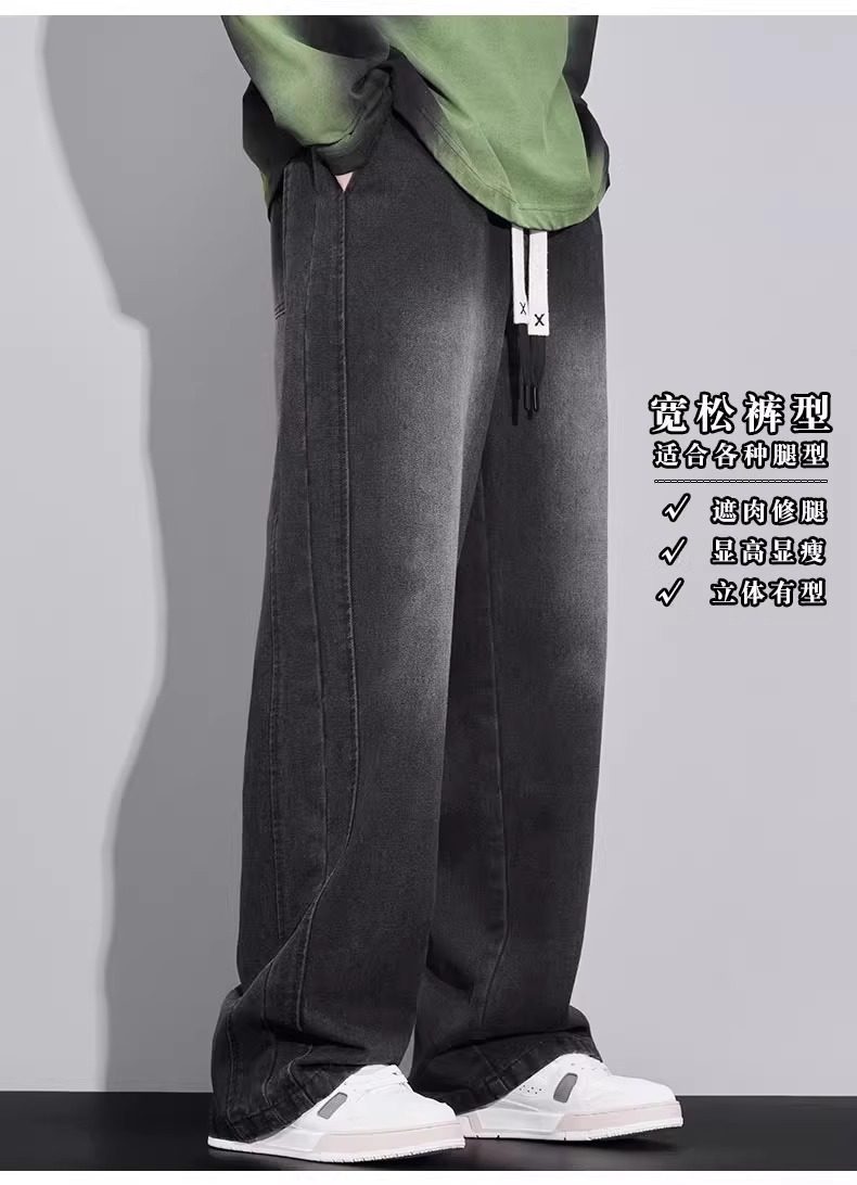 大碼牛仔褲男寬鬆美式顯瘦直筒褲加肥加大胖子濶腿休閒長褲春秋款